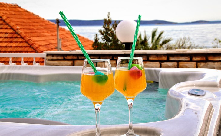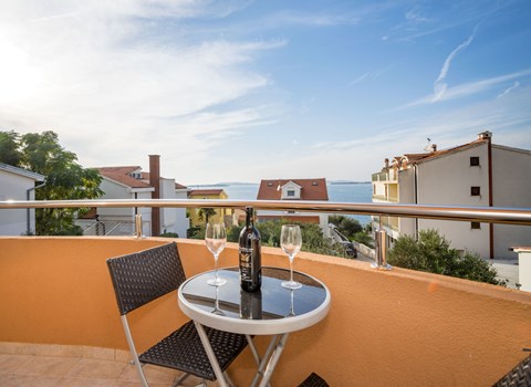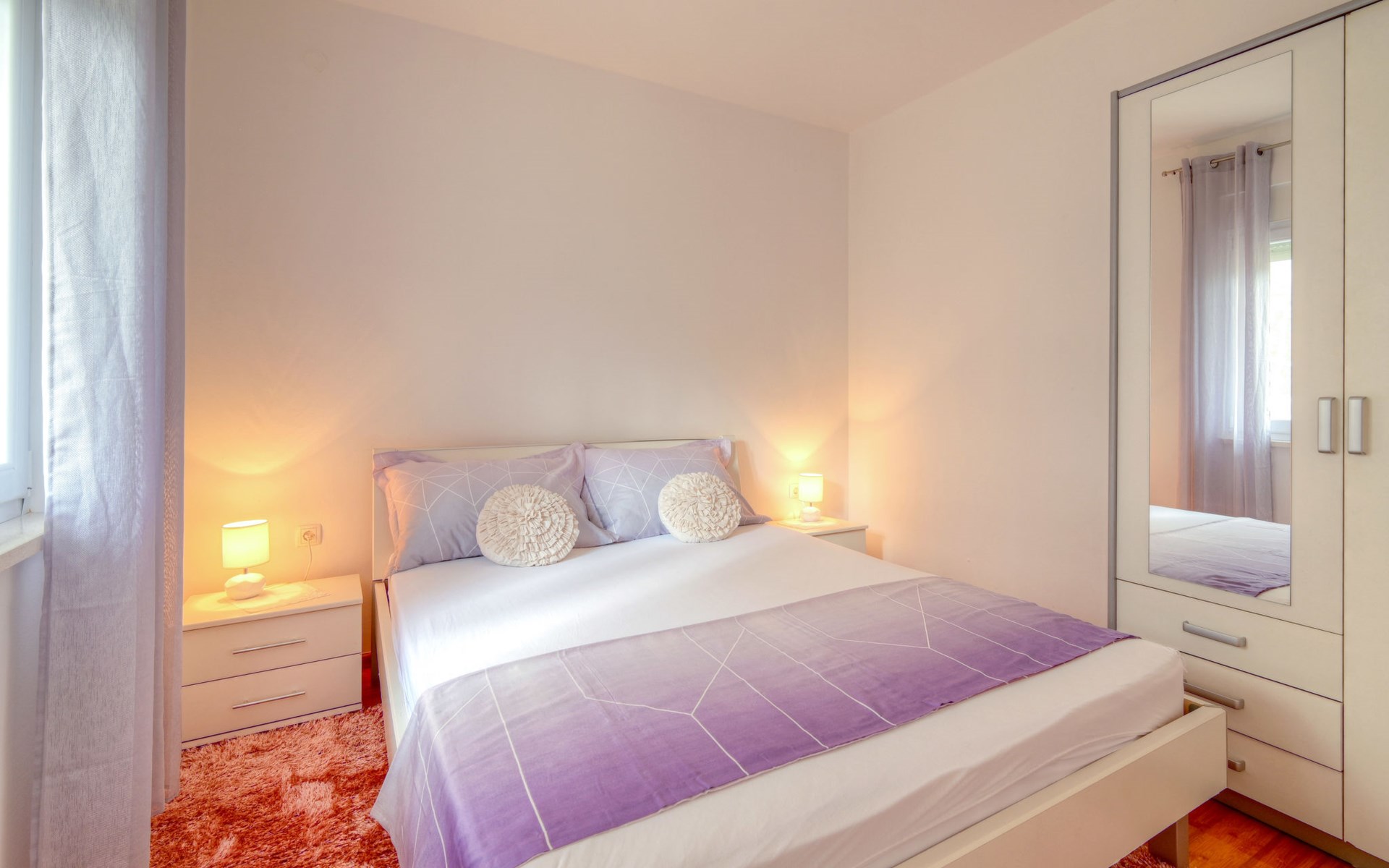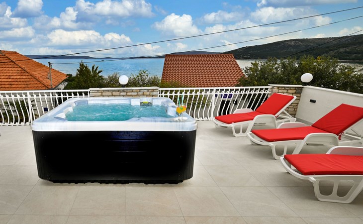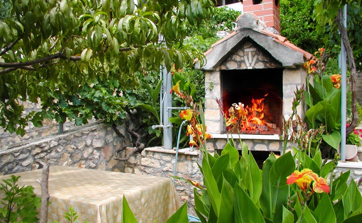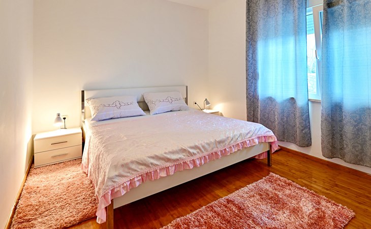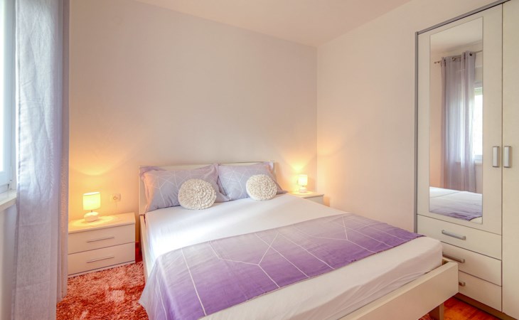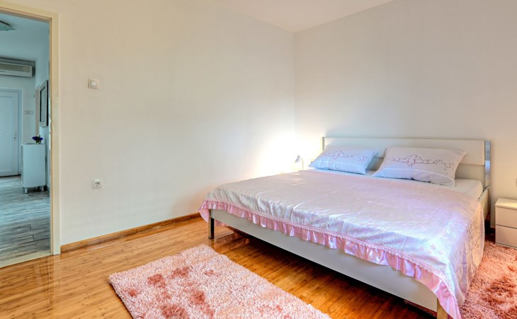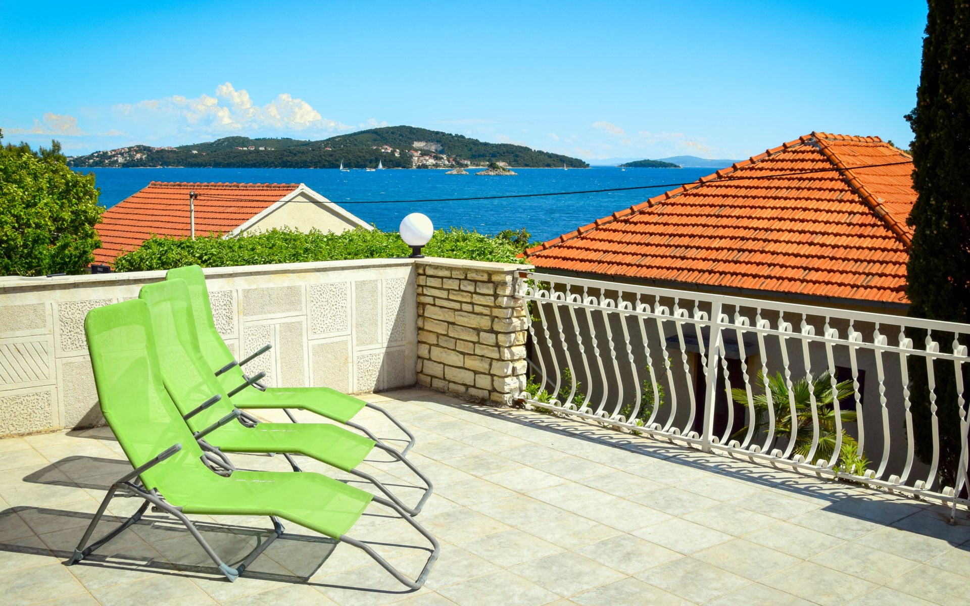 Seget Vranjica, 5 km von Trogir: Dreifamilienhaus "Tešija". Ruhige, sonnige Lage, 30 m vom Meer, 30 m vom Strand, in einer Sackgasse, Richtung Süden. Zur Alleinbenutzung: Aussendusche, Grill, Parkplatz beim Haus auf dem Grundstück, Einzelgarage. Einkaufsgeschäft, Restaurant 300 m, Bushaltestelle 1.5 km, Felsstrand, betonierter Strand 30 m. Bitte beachten: Flugplatz 12 km vom Haus.