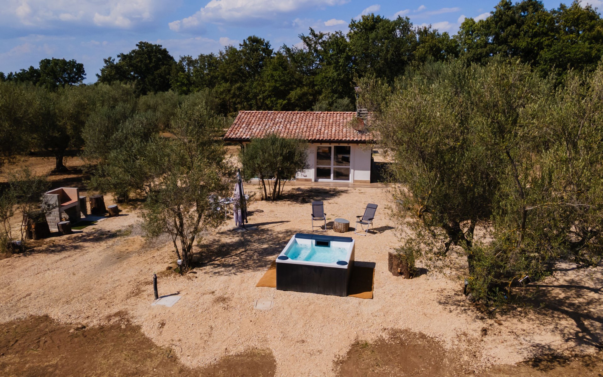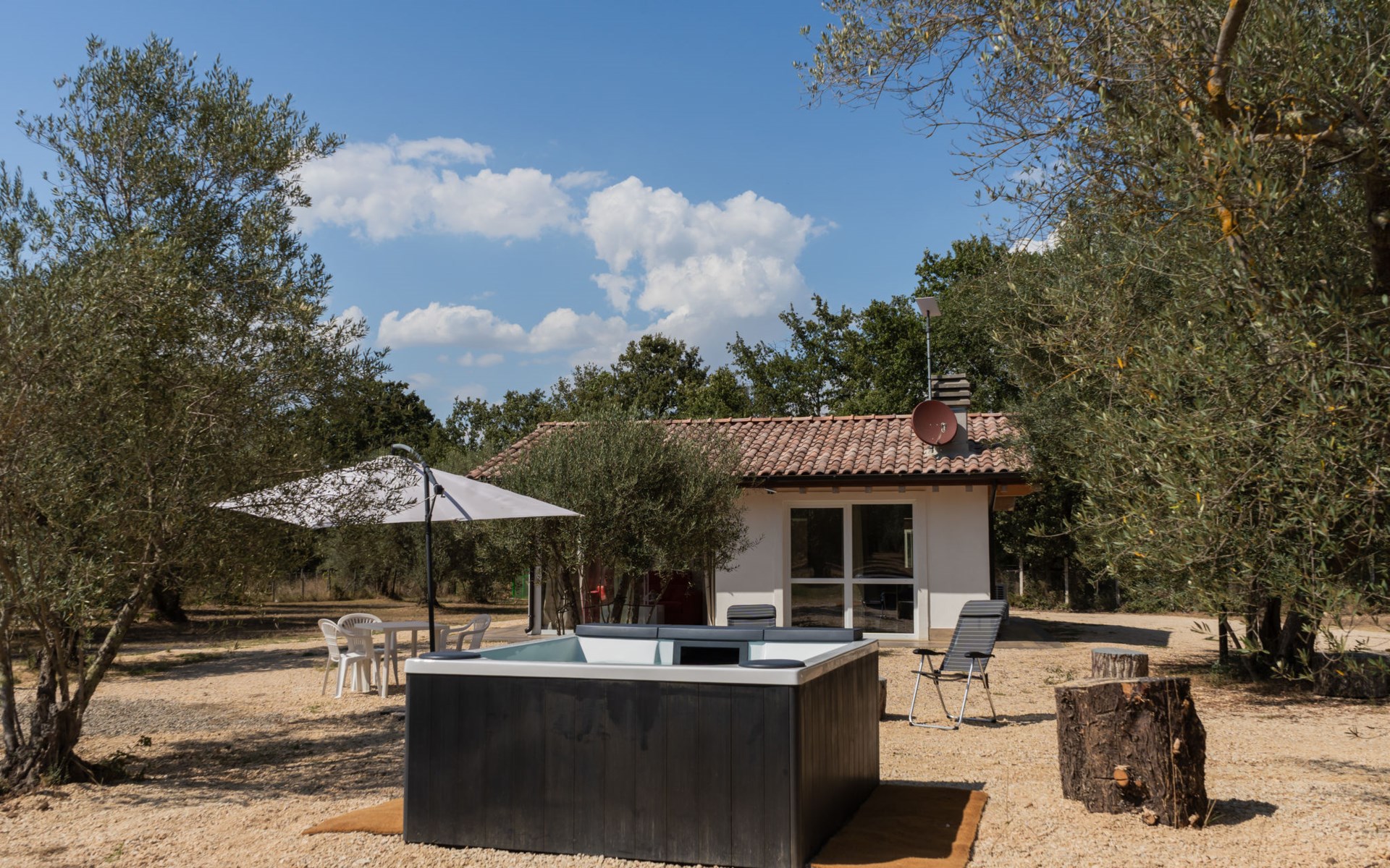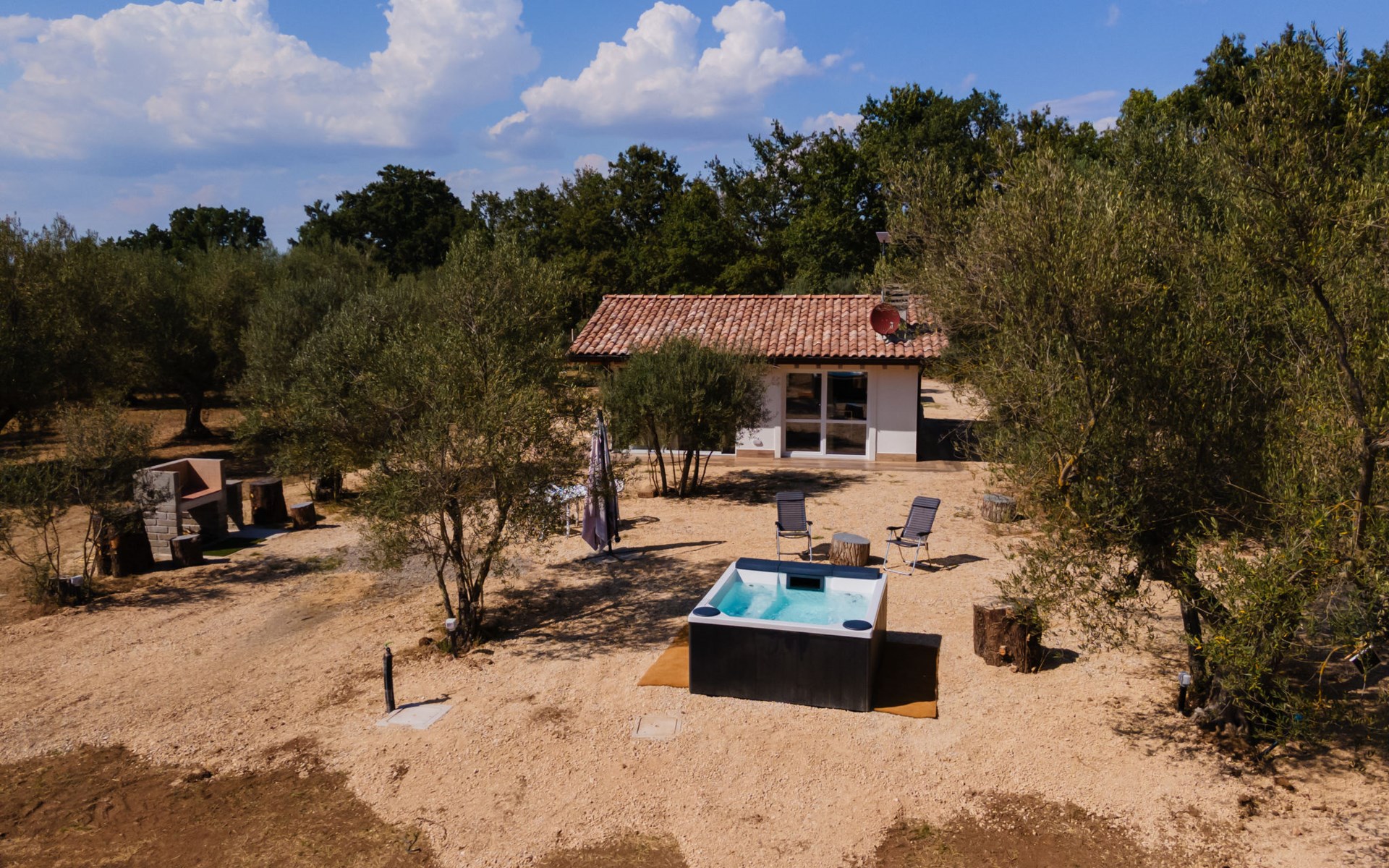 Schönes, freistehendes, komfortables Chalet "Grotta Porcina". Im Ortszentrum, 5 km vom Zentrum von Vetralla, 59 km vom Zentrum von Roma, 30 km vom Meer. Zur Mitbenutzung: Grundstück 4 ha, Park 600 m2 (eingezäunt), Aufstellpool beheizt (2 x 2 m, 84 cm tief, saisonale Verfügbarkeit: 01.Apr. - 30.Okt.). Aussendusche, Gartenmöbel, Grill. 50 m lange holprige Zufahrt. Parkplatz (überdacht) auf dem Grundstück. Lebensmittelgeschäft 3 km, Supermarkt 8 km, Restaurant 5 km, Bushaltestelle 4.3 km, Thermalbad "Tuscia Terme" 10 km, Badesee "Vico" 8 km. Nahe gelegene Sehenswürdigkeiten: Sutri 14 km, Viterbo 17 km, Tarquinia 29 km, Soriano Nel Cimino 33 km, Soriano Nel Cimino 33 km, Bomarzo 33 km. Bekannte Seen in der Umgebung sind gut erreichbar: Vico 19 km, Bracciano 37 km, Bolsena 36 km. Der Besitzer akzeptiert keine Jugendgruppen.