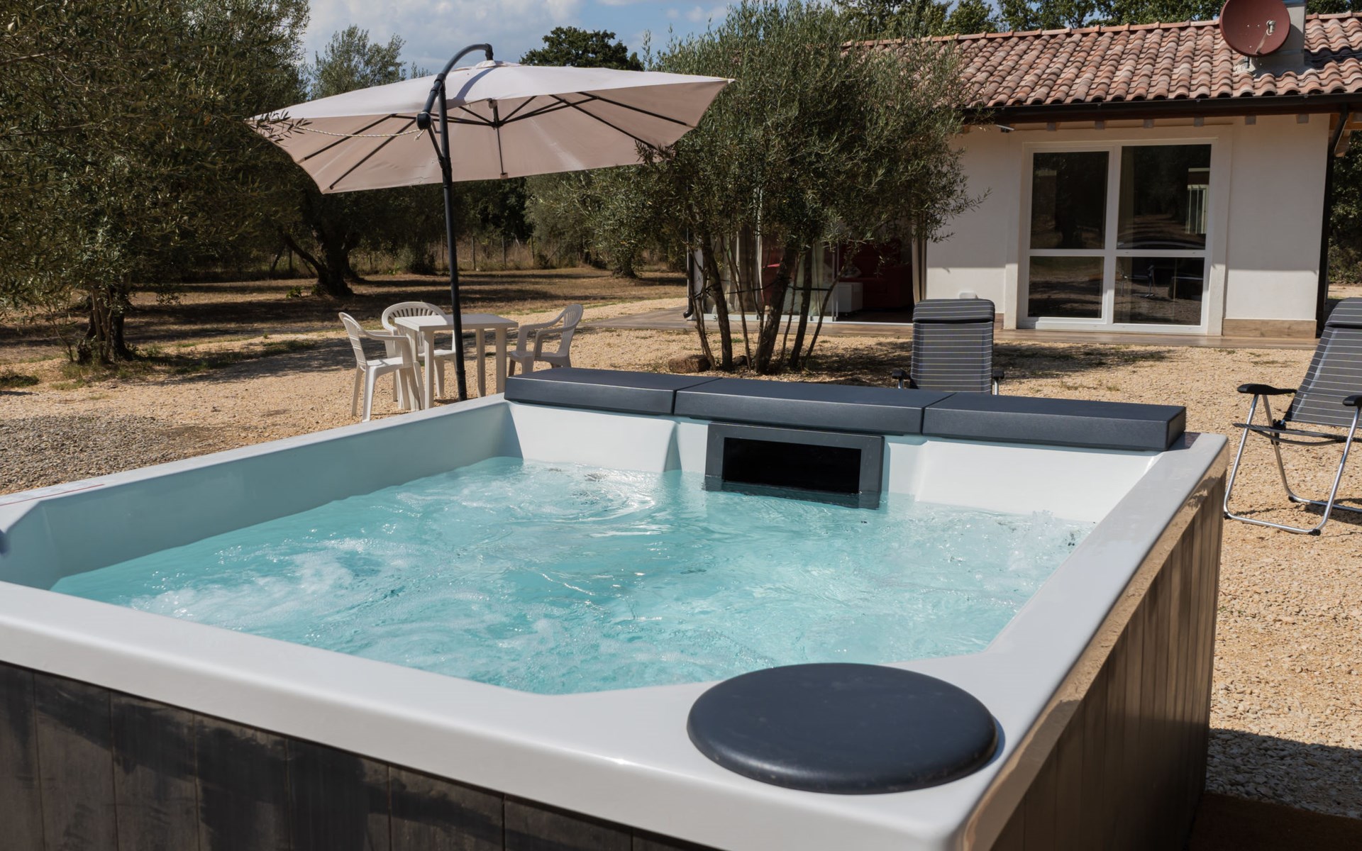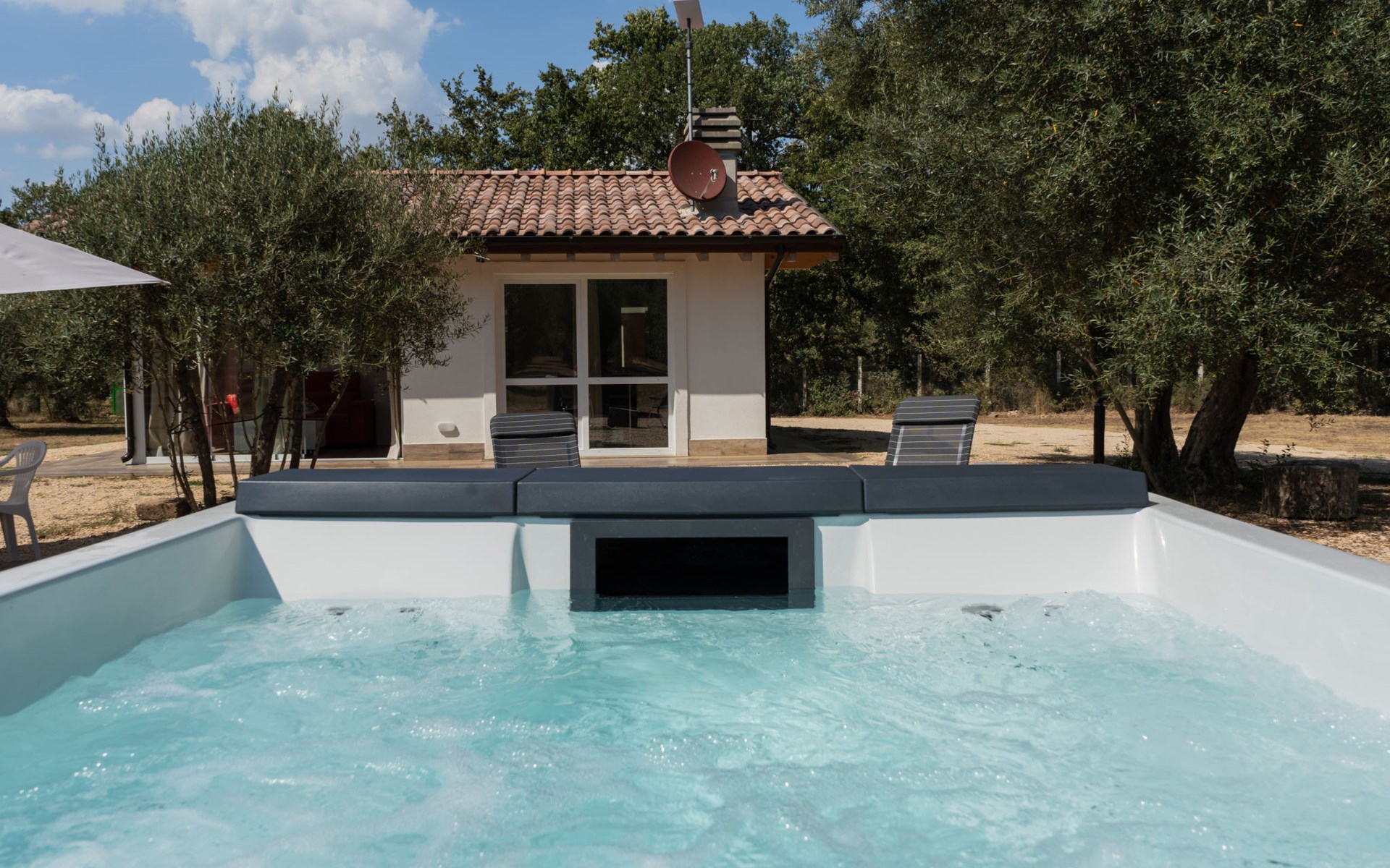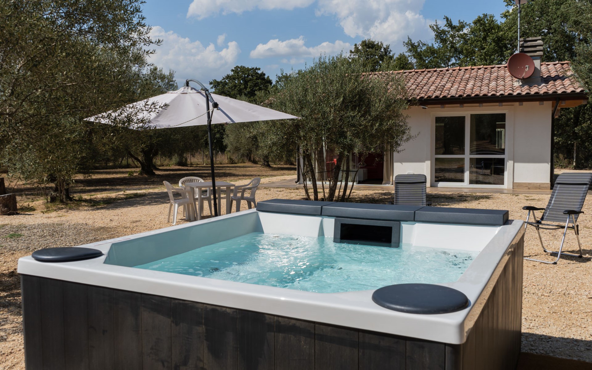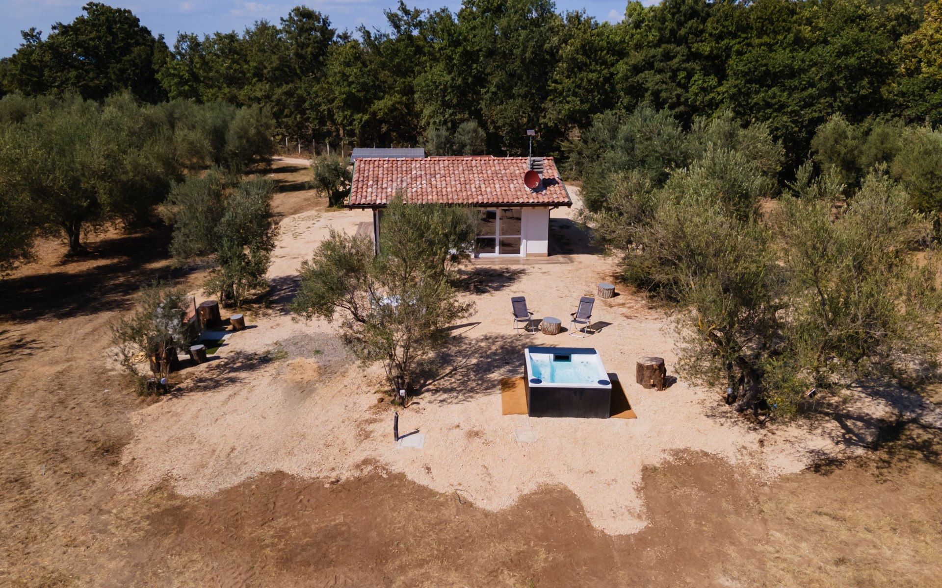 Schönes, freistehendes, komfortables Chalet "Grotta Porcina". Im Ortszentrum, 5 km vom Zentrum von Vetralla, 59 km vom Zentrum von Roma, 30 km vom Meer. Zur Mitbenutzung: Grundstück 4 ha, Park 600 m2 (eingezäunt), Aufstellpool beheizt (2 x 2 m, 84 cm tief, saisonale Verfügbarkeit: 01.Apr. - 30.Okt.). Aussendusche, Gartenmöbel, Grill. 50 m lange holprige Zufahrt. Parkplatz (überdacht) auf dem Grundstück. Lebensmittelgeschäft 3 km, Supermarkt 8 km, Restaurant 5 km, Bushaltestelle 4.3 km, Thermalbad "Tuscia Terme" 10 km, Badesee "Vico" 8 km. Nahe gelegene Sehenswürdigkeiten: Sutri 14 km, Viterbo 17 km, Tarquinia 29 km, Soriano Nel Cimino 33 km, Soriano Nel Cimino 33 km, Bomarzo 33 km. Bekannte Seen in der Umgebung sind gut erreichbar: Vico 19 km, Bracciano 37 km, Bolsena 36 km. Der Besitzer akzeptiert keine Jugendgruppen.