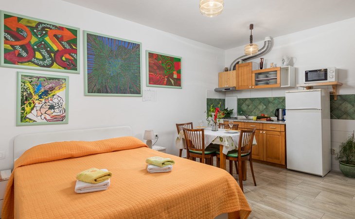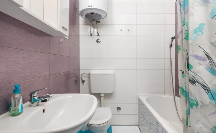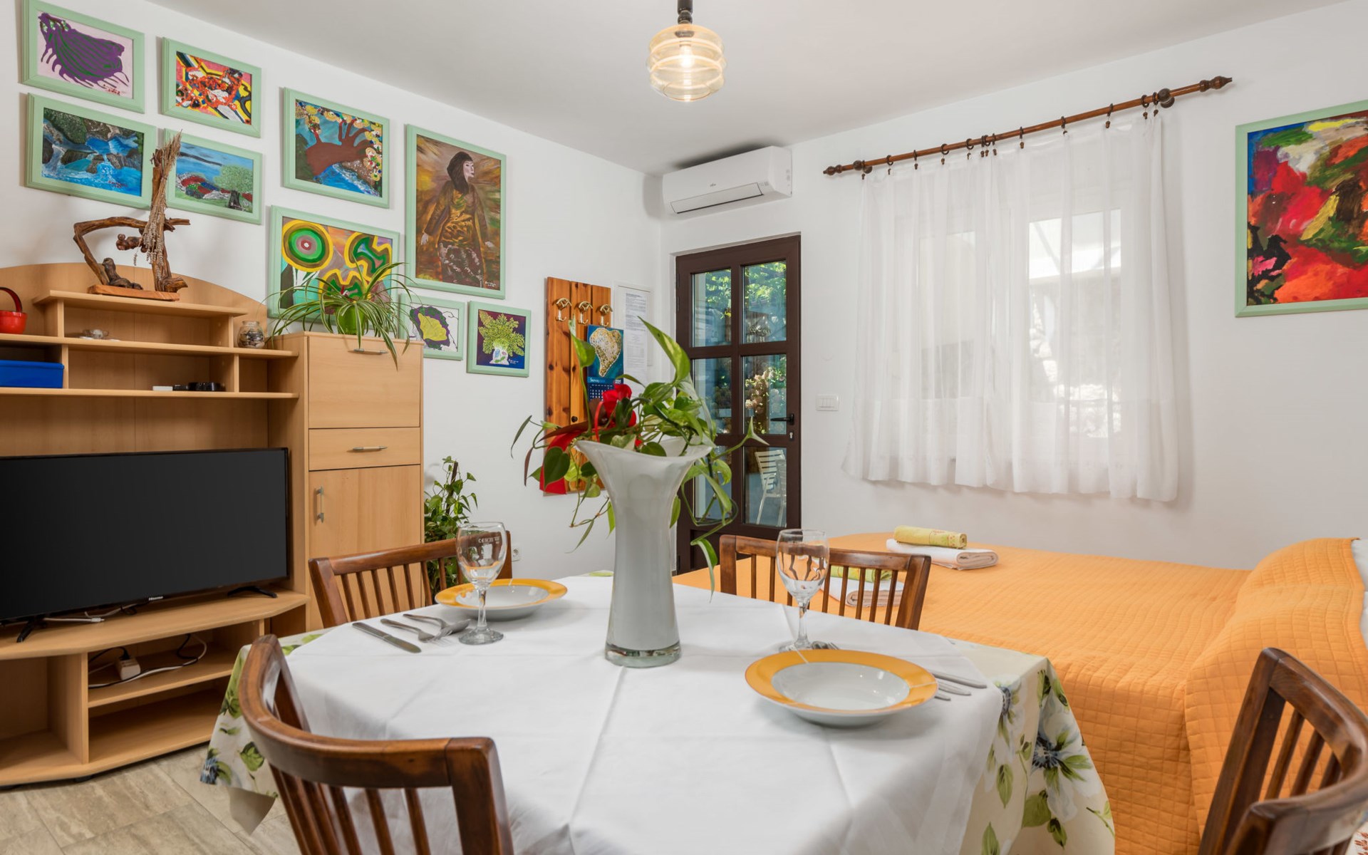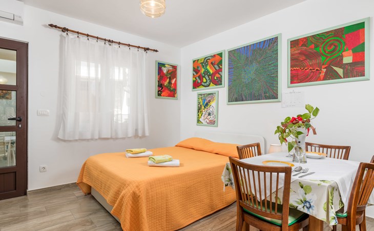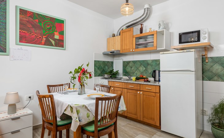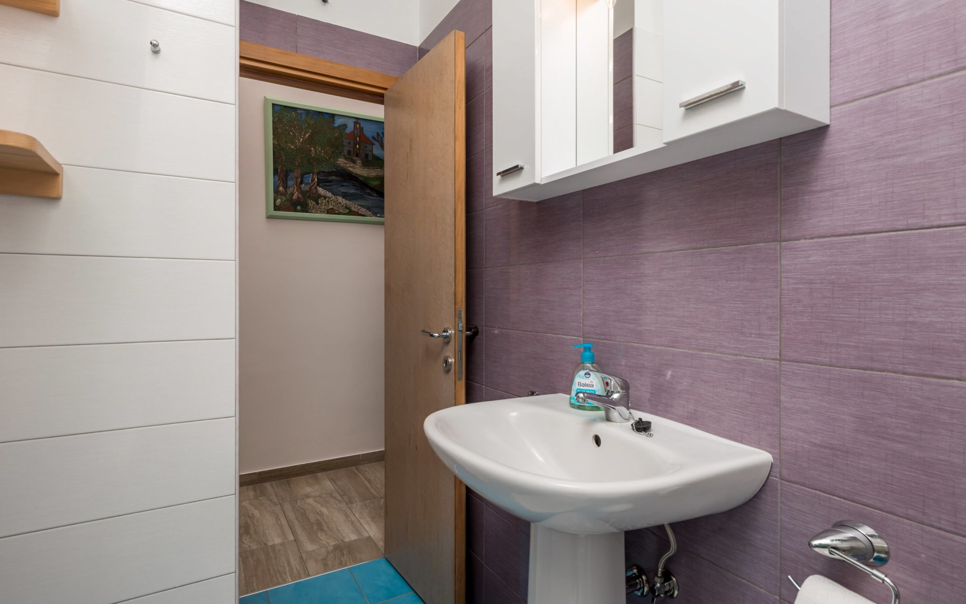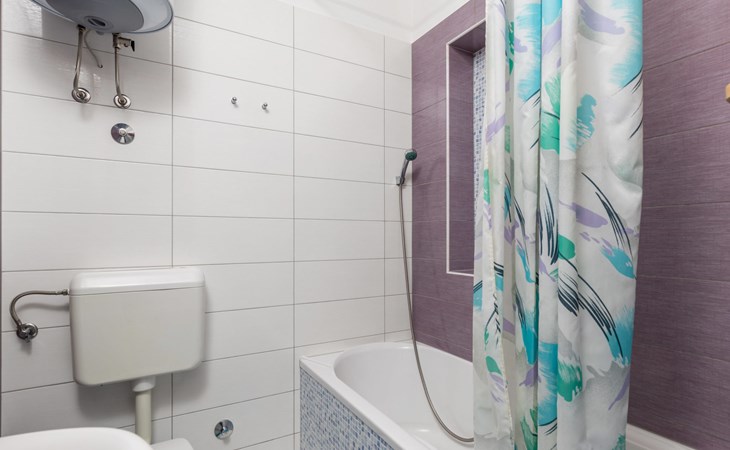 Mehrfamilienhaus "Sandalj". Im Weiler Kraj, 2.5 km vom Zentrum von Mošćenička Draga, 2.5 km vom Zentrum von Medveja, am Hang, 200 m vom Meer, 200 m vom Strand, Strasse zu überqueren. Zur Mitbenutzung: Grundstück mit Pflanzen und Bäumen. Terrasse, Gartenmöbel, Grill. Im Hause: Internetzugang. Parkplatz auf dem Grundstück. Einkaufsgeschäft 2.5 km, Bushaltestelle 30 m, Kieselstrand, Felsstrand 200 m. Bitte beachten: private Bootsanlegestelle (extra) auf Anfrage. Der Besitzer wohnt im selben Haus. Steiler Fussweg und Stufen zum Strand. Der Vermieter betreibt im Untergeschoss eine Autowerkstatt.