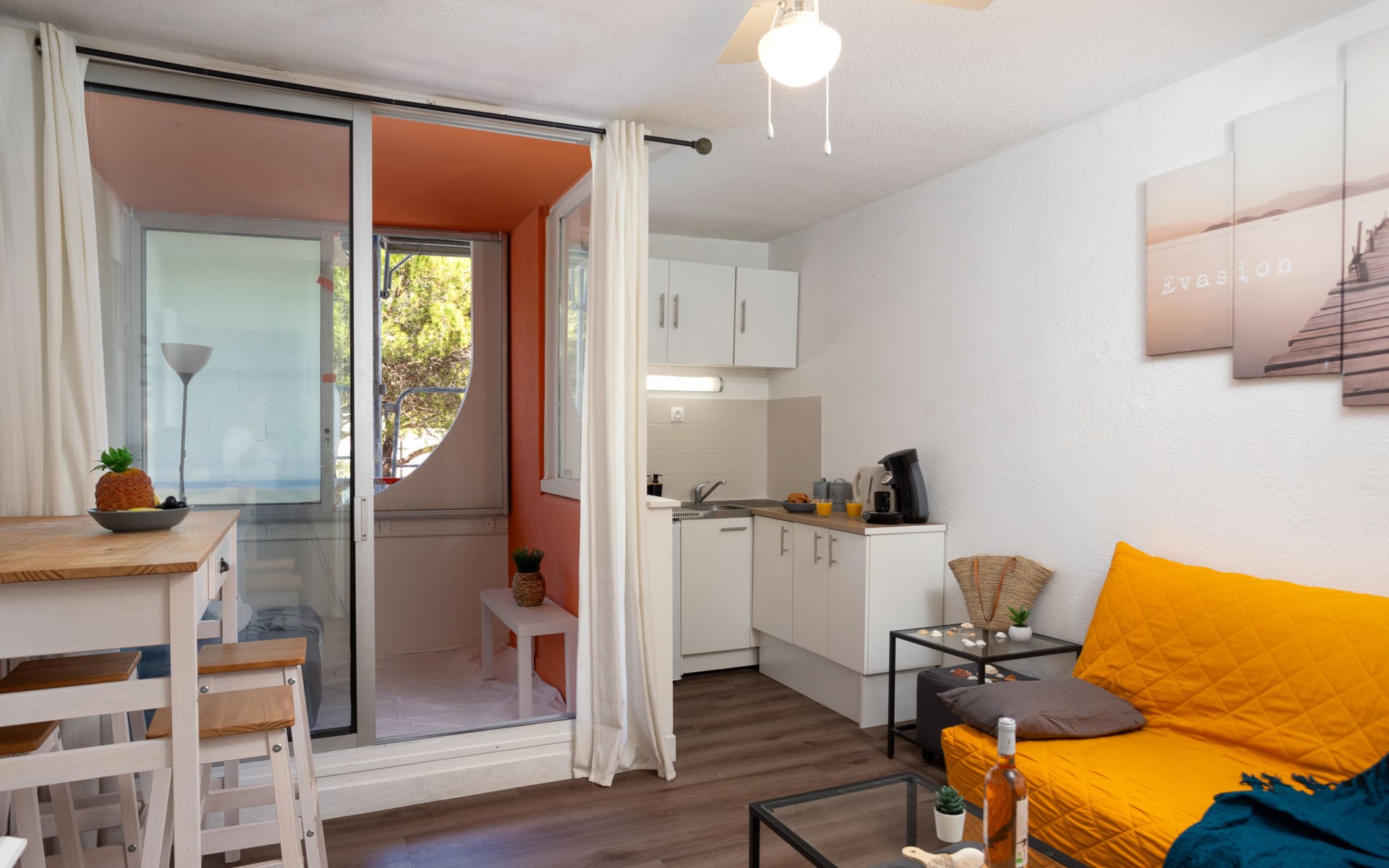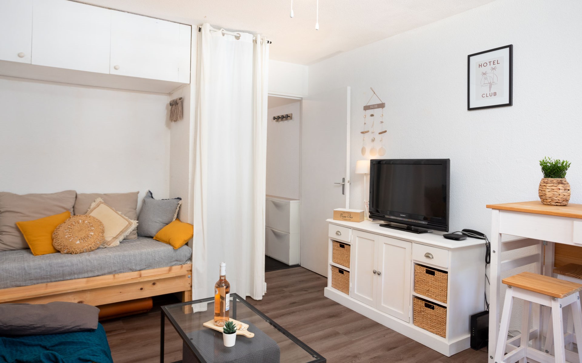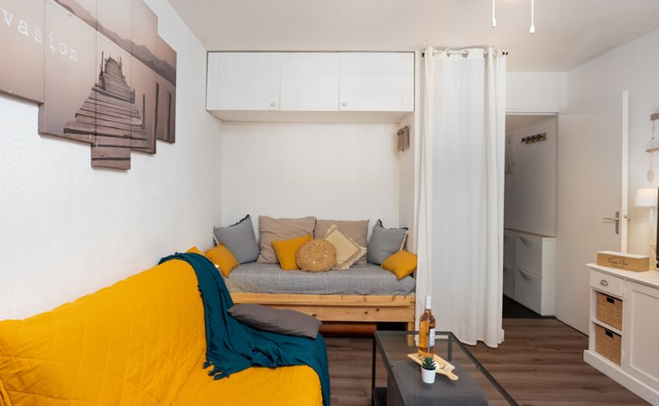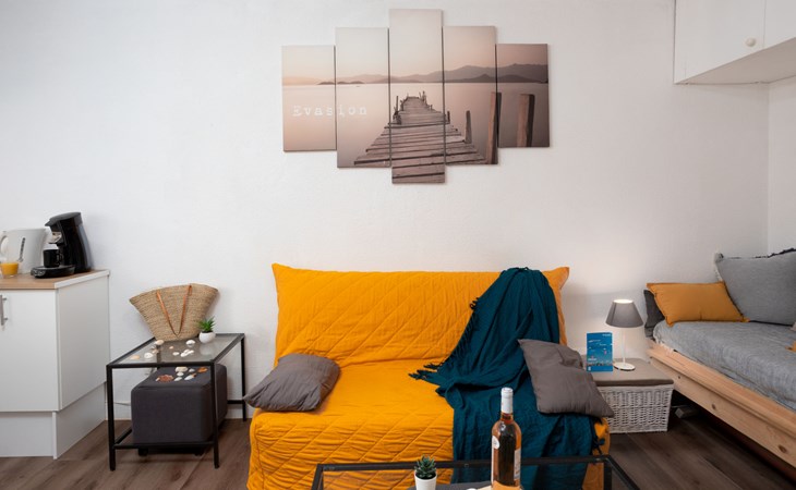 Residenz "Les Marquises", auf 7 Stockwerken. Im Ortsteil La Motte du Couchant, 350 m vom Meer. In der Anlage: Fahrstuhl. Öffentliche Parkplätze 10 m auf der Strasse. Bäckerei, Bushaltestelle 150 m, Bahnstation "Montpellier" 25 km, Sandstrand 300 m, Park "public" 20 m, Hallenbad 3.4 km, Thermalbad "Thalasso Spa" 3.7 km. Sporthafen 1.4 km, Golfplatz (18 Loch) 3.5 km, Segelschule 1.3 km, Tennis 3.4 km, Reitstall 1.6 km, Kinderspielplatz 20 m. Nahe gelegene Sehenswürdigkeiten: Le Seaquarium du Grau Du Roi 10 km, Les Remparts d'Aigues Mortes 12 km, Les Saintes Maries de la Mer 40 km. Die Schlüsselübergabe findet bei der Agentur Interhome in La Grande Motte statt.