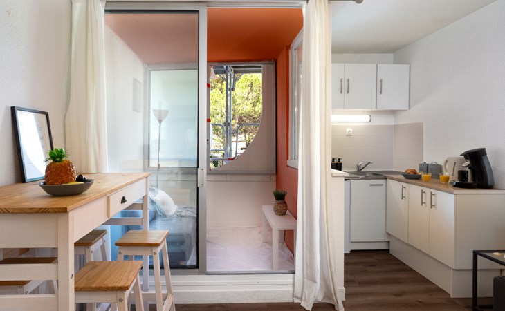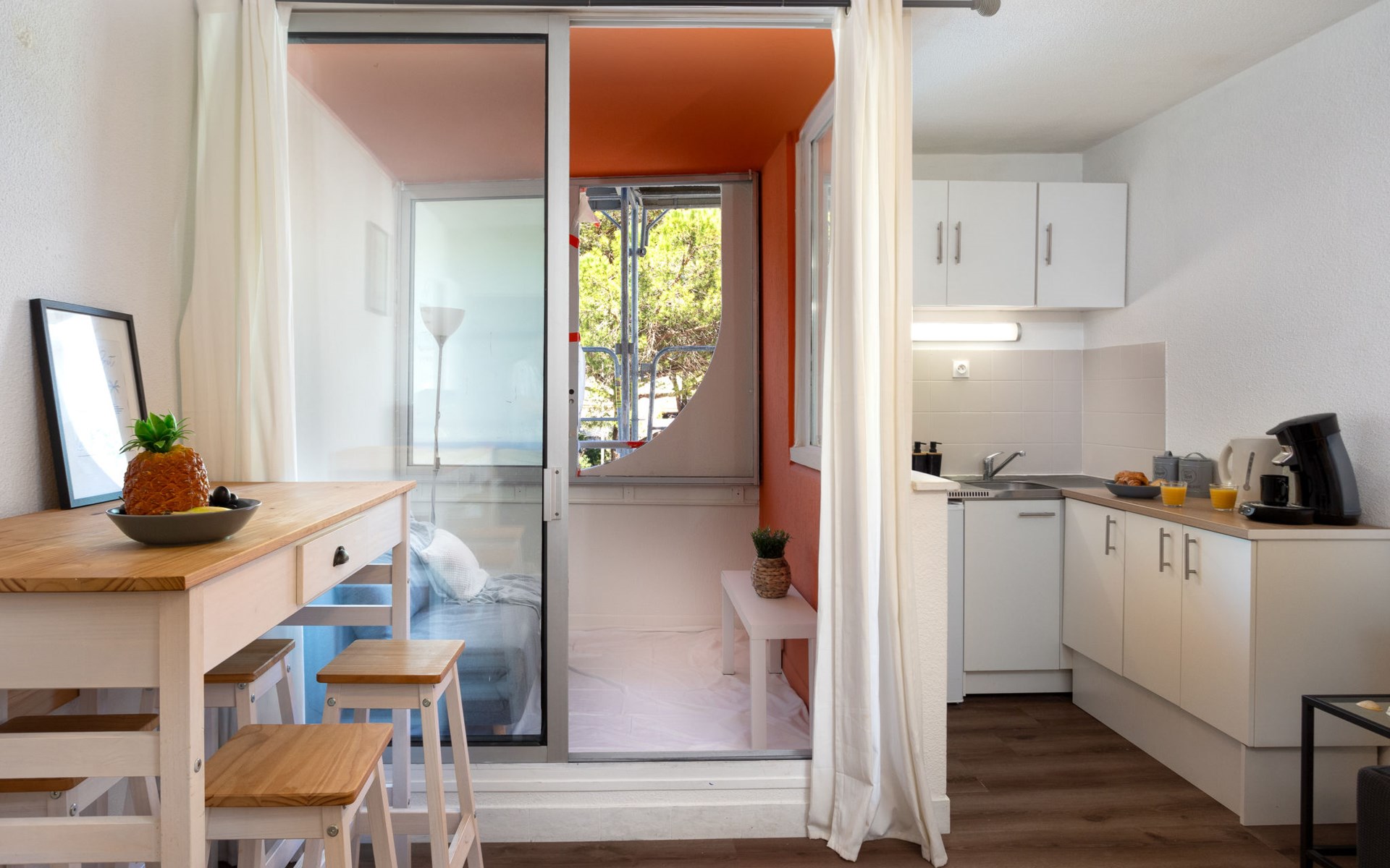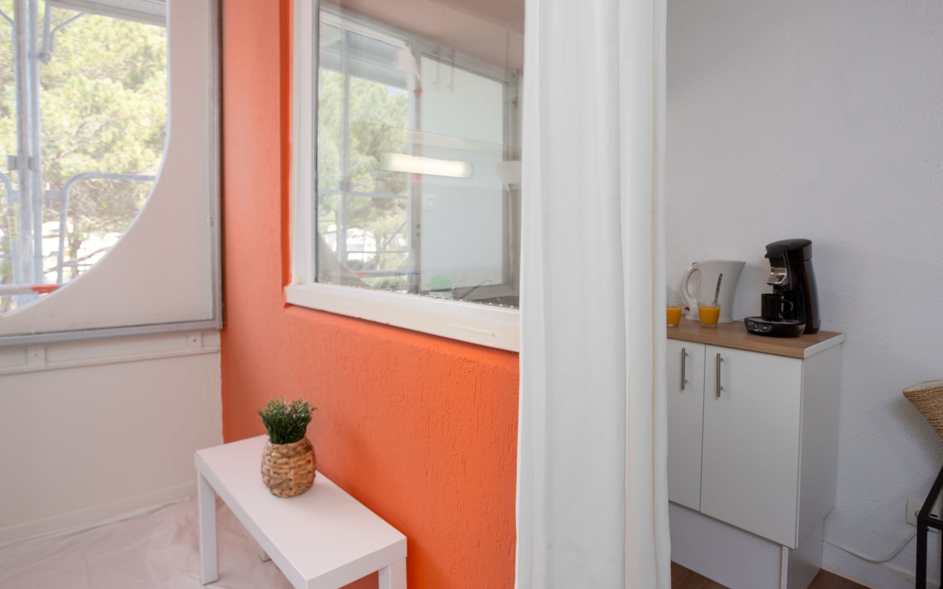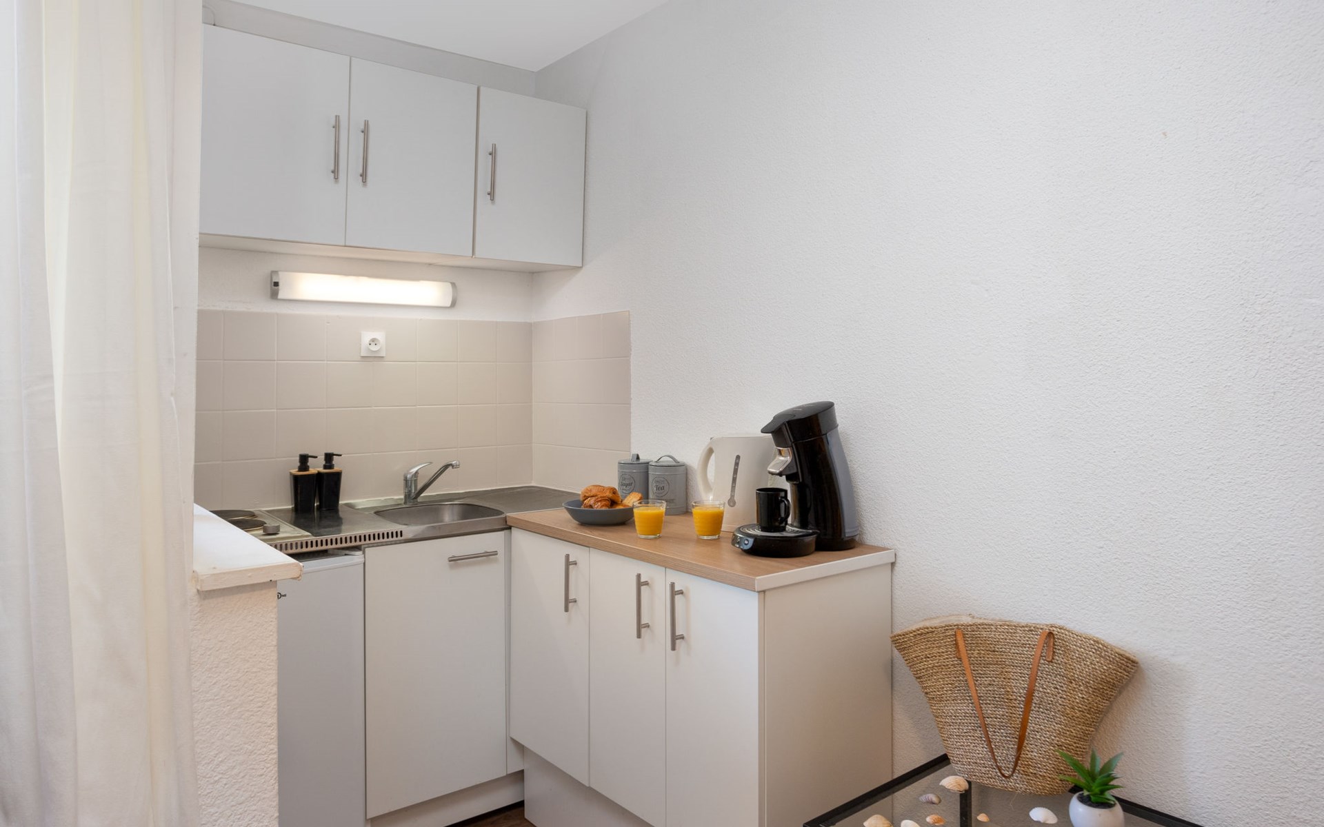 Residenz "Les Marquises", auf 7 Stockwerken. Im Ortsteil La Motte du Couchant, 350 m vom Meer. In der Anlage: Fahrstuhl. Öffentliche Parkplätze 10 m auf der Strasse. Bäckerei, Bushaltestelle 150 m, Bahnstation "Montpellier" 25 km, Sandstrand 300 m, Park "public" 20 m, Hallenbad 3.4 km, Thermalbad "Thalasso Spa" 3.7 km. Sporthafen 1.4 km, Golfplatz (18 Loch) 3.5 km, Segelschule 1.3 km, Tennis 3.4 km, Reitstall 1.6 km, Kinderspielplatz 20 m. Nahe gelegene Sehenswürdigkeiten: Le Seaquarium du Grau Du Roi 10 km, Les Remparts d'Aigues Mortes 12 km, Les Saintes Maries de la Mer 40 km. Die Schlüsselübergabe findet bei der Agentur Interhome in La Grande Motte statt.