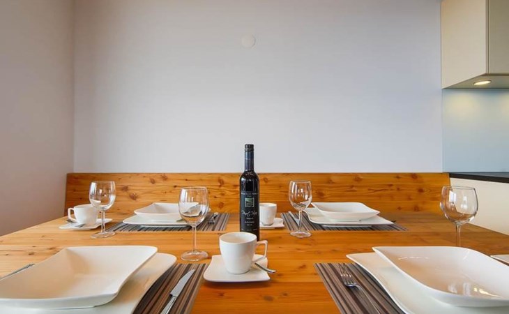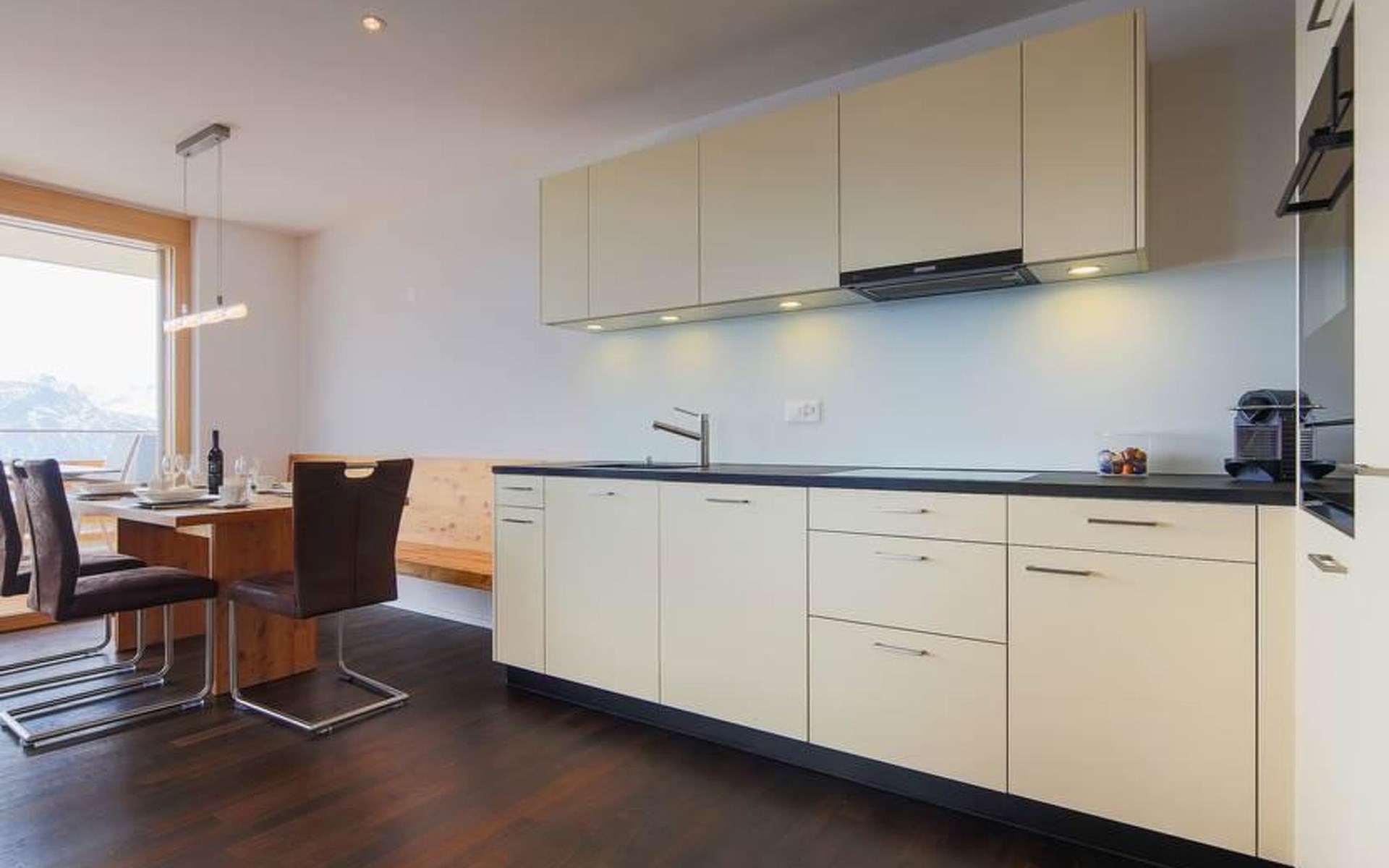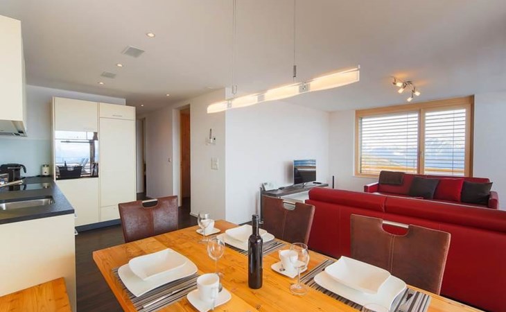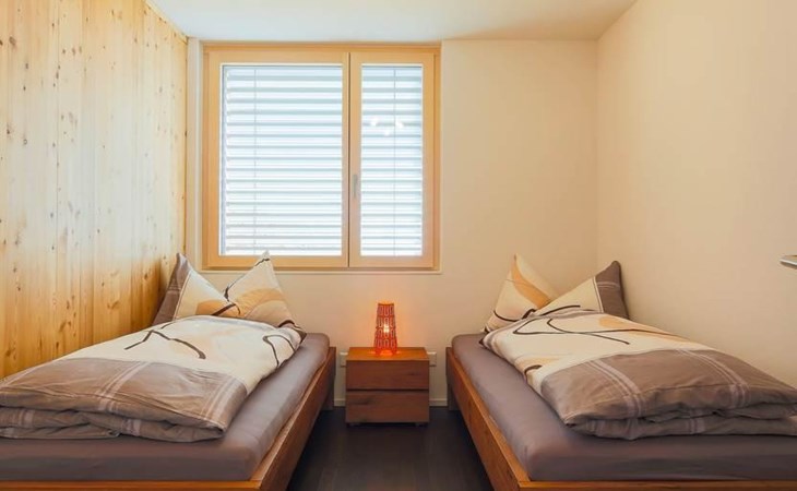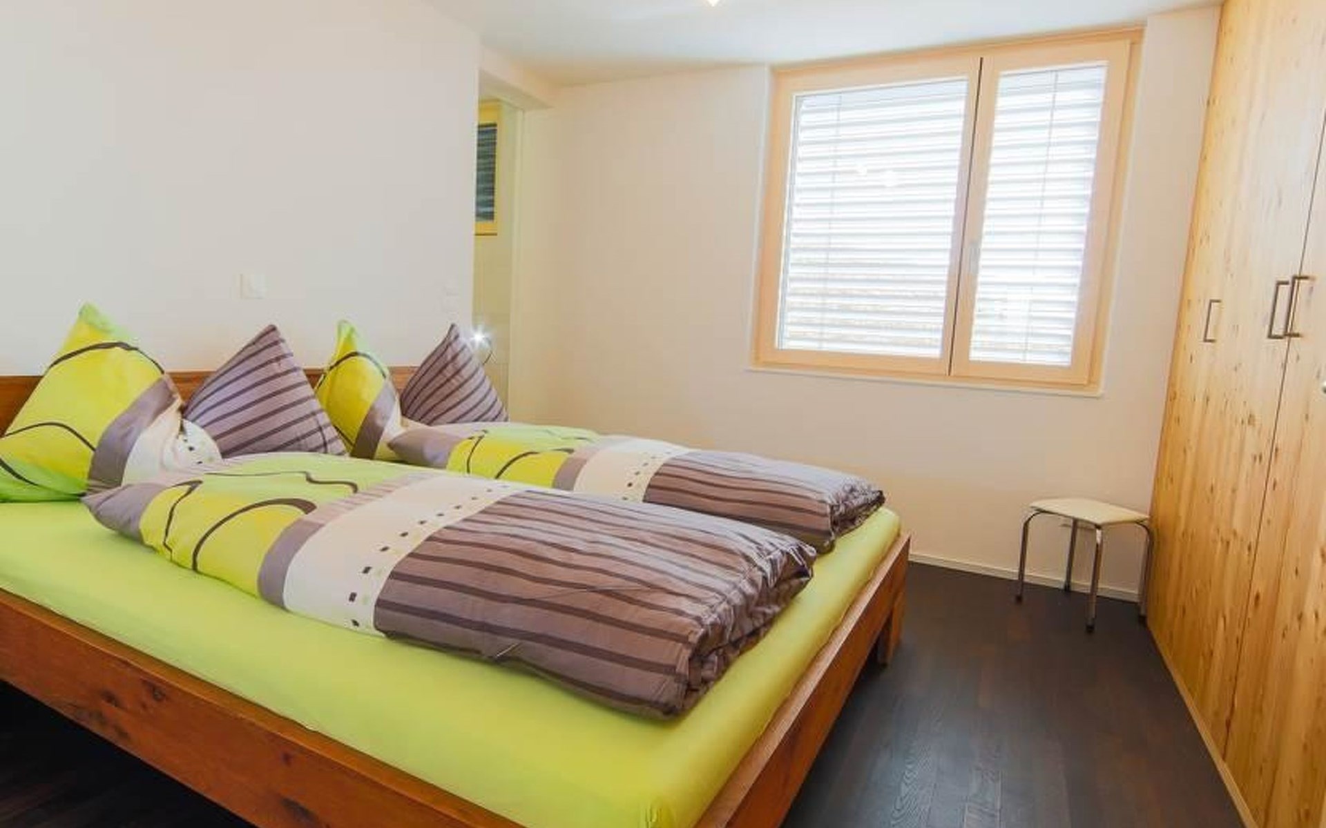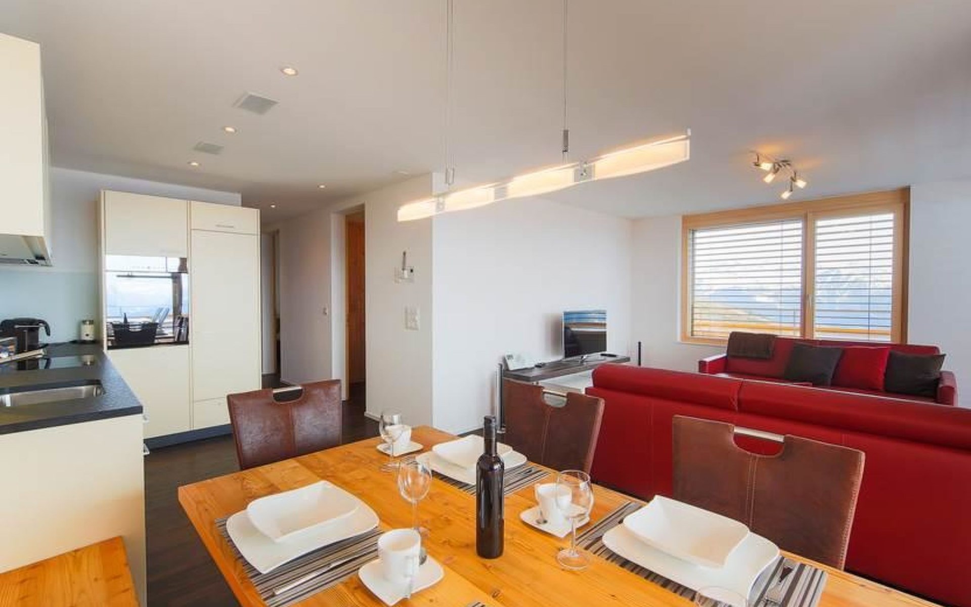Die Wohnung "Nico" ist folgendermassen ausgestattet. 2 Zimmer, 2 Nasszellen eine offene Küche mit Wohnbereich. Im ersten Zimmer befindet sich ein Doppelbett mit separatem Zugang zum Bad (Badewanne mit Trennwand, Waschtisch mit Möbel und Spiegelschrank und WC-Anlage). im zweiten Zimmer befinden sich zwei einzelne Betten und einem eigenem Fernseher mit Satelittenanschluss. Ebenfalls gibt es eine zweite Nasszelle mit Bodenbündiger Dusche mit Regenwasserbrause, Waschtisch mit Möbel und Spiegelschrank und WC-Anlage. Es befindet sich in der Wohnung eine komplett ausgestattete Küche mit Kühlschrank, Backofen, Steamer, Kochfeld, Dunstabzugshaube, Geschirrwaschmaschine und Kaffeemaschine. Direkt neben der Küche befindet sich der Wohnbereich mit Sofa (ausziehbar zum Bett) und Fernseher mit Satellitenanschluss. Der Balkon (Tiefe 2.0 m) mit Tisch und Stühlen liegt auf der Südseite mit einem wunderschönem Ausblick auf die Walliser Bergwelt. Im Haus befindet sich ein Ski- und Veloraum der benützt werden kann.