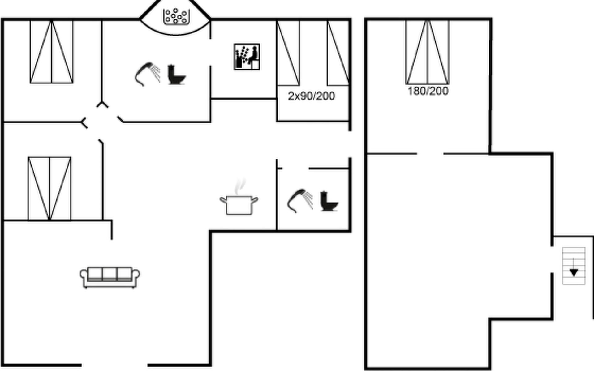 Einfamilienhaus, Baujahr 1995. 3 km vom Meer. Zur Alleinbenutzung: Grundstück 1'517 m2, gepflegter Garten. Terrasse (78 m2), Kinderspielplatz (Schaukel). Im Hause: Sauna, Waschmaschine. Parkplatz beim Haus. Lebensmittelgeschäft 2.5 km. Der Besitzer akzeptiert keine Jugendgruppen.