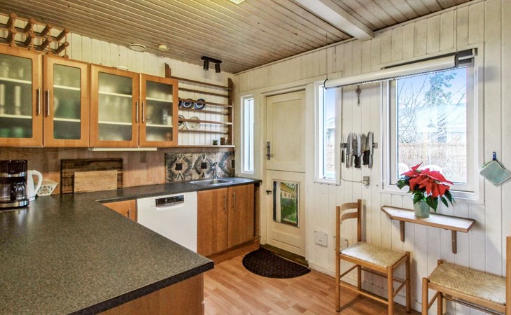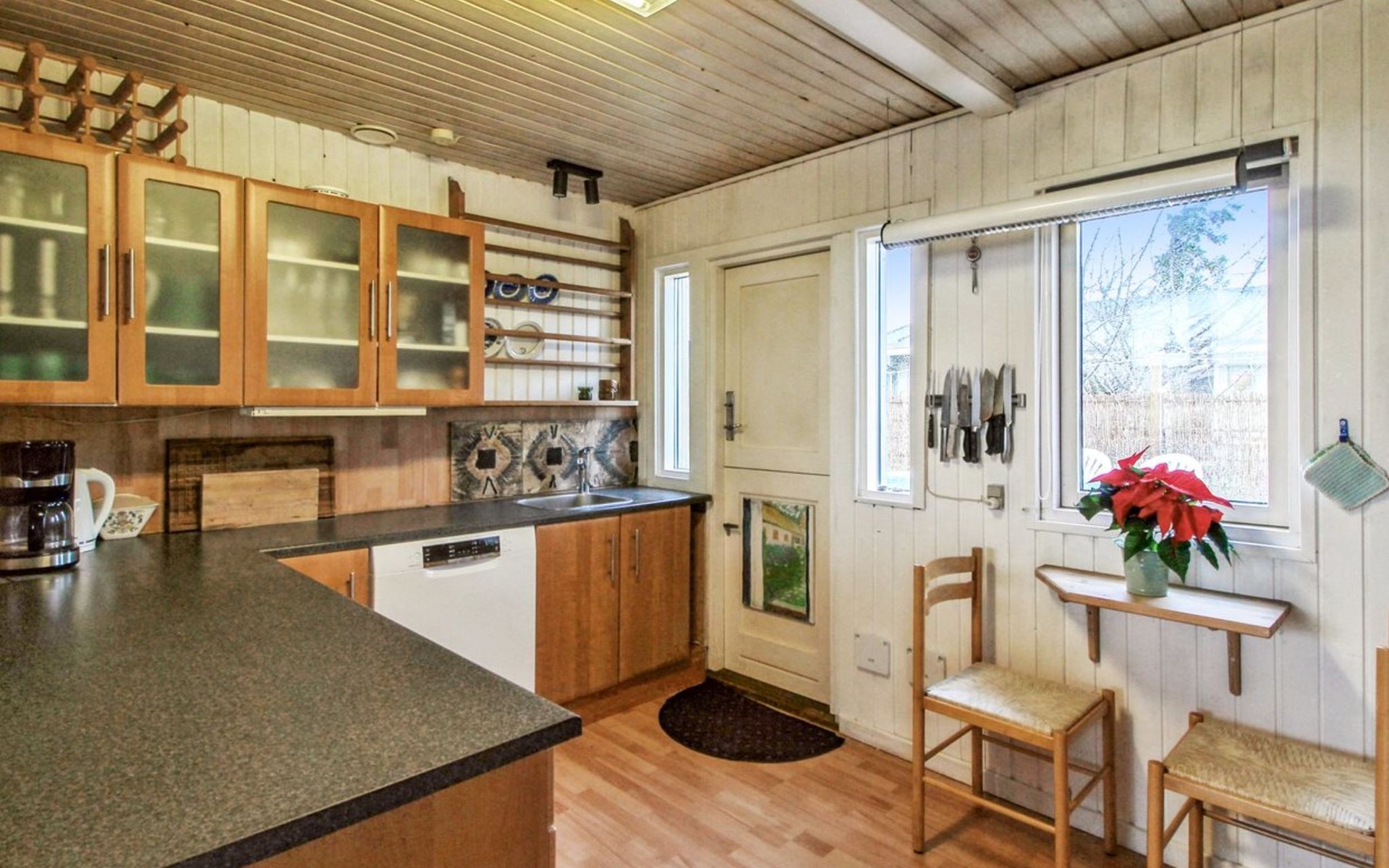 Einfamilienhaus, Baujahr 1980. 50 m vom Meer. Zur Alleinbenutzung: naturbelassenes Grundstück 400 m2. Im Hause: Waschmaschine, Wäschetrockner. Parkplatz beim Haus. Lebensmittelgeschäft 2 km. Der Besitzer akzeptiert keine Jugendgruppen.