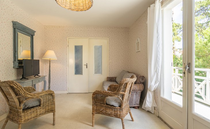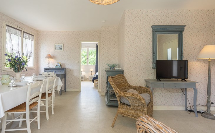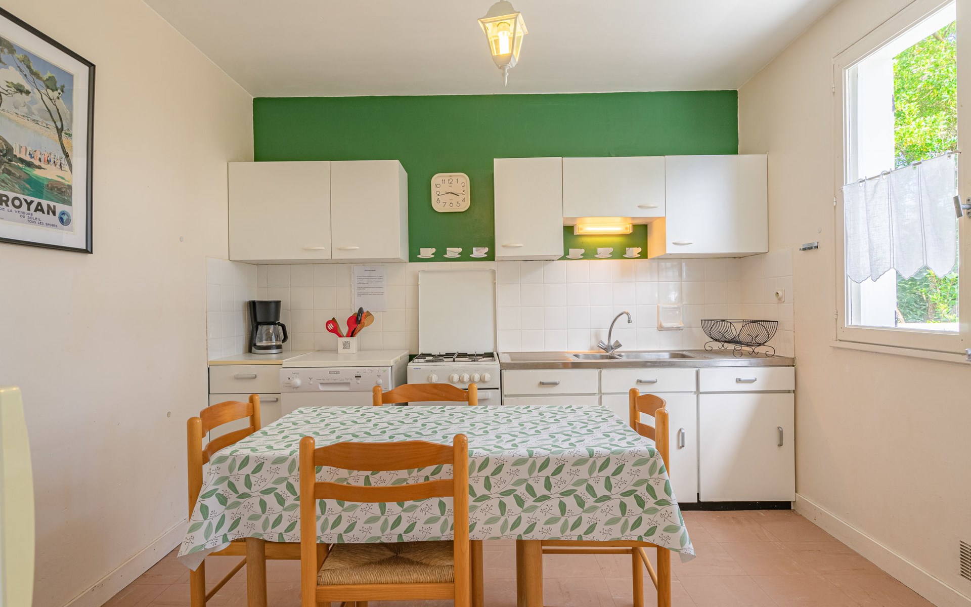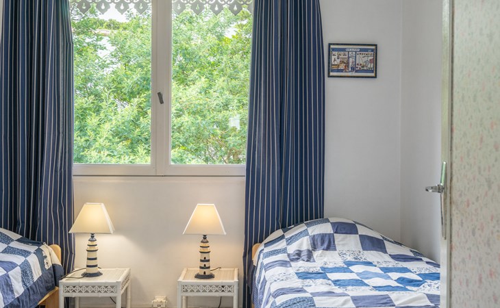 Zweifamilienhaus "Domaine des Fées". 2 Wohnungen im Ferienhaus. Im Ort, 1.4 km vom Zentrum von Vaux sur Mer, ruhige Lage in einem Wohnquartier, 200 m vom Meer, 200 m vom Strand. Zur Alleinbenutzung: naturbelassenes Grundstück 800 m2 (eingezäunt) mit Bäumen, Parkplatz (für 2 Autos) auf dem Grundstück. Supermarkt 1 km, Restaurant 350 m, Bäckerei 1.4 km, Bushaltestelle "Fées" 250 m, Bahnstation "Royan" 5.5 km, Sandstrand "Plage du Conseil" 200 m (klein), Park "Luna Park (Juillet - Août)", Hallenbad 5 km, Thermalbad "Thalassothérapie Thalazur Royan" 3.5 km. Sporthafen 4 km, Golfplatz (18 Loch) 5 km, Surfschule 2 km, Segelschule 950 m, Minigolf 2.3 km, Reitstall 6 km. Nahe gelegene Sehenswürdigkeiten: Zoo de La Palmyre 11 km, Hippodrome La Palmyre 13 km, Centre aquatique Iléo - Ile d'Oléron 46 km, Fort Boyard - Fouras 58 km, Aéroport La Rochelle - Ile de Ré 80 km, Aéroport Bordeaux - Mérignac 133 km. Die Schlüsselübergabe findet bei der Agentur Interhome in Vaux sur Mer statt, 2 km. Die Wohnung im Erdgeschoss ist nicht belegt. Lärmempfindliches Wohngebiet.