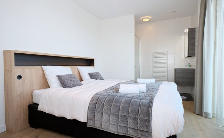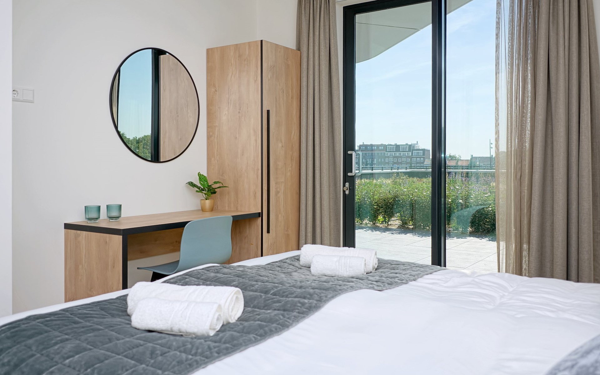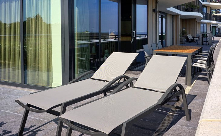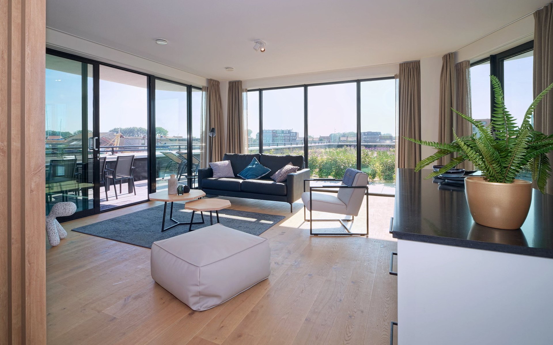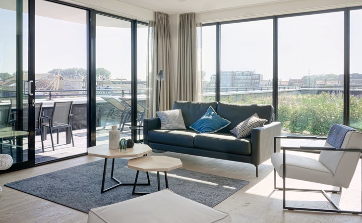 Wohnen Sie in dieser komfortablen 3-Zimmer-Ferienwohnung für bis zu 4 Personen mit 2 Schlafzimmern und 2 Badezimmern. Die Ferienwohnung Starfish Terrace in Dormio Breskens Apartments & Penthouses hat eine Ecklage. Die Ferienwohnung hat eine Nutzfläche von ca. 102 m2 und ist über eine Treppe oder einen Aufzug erreichbar.