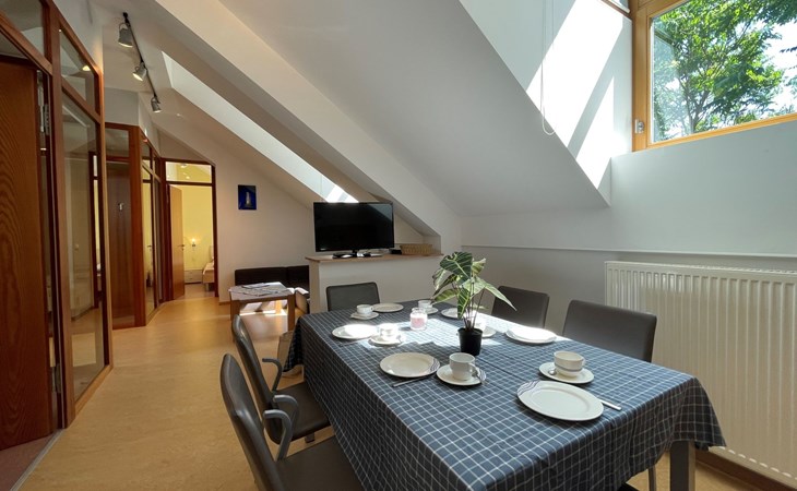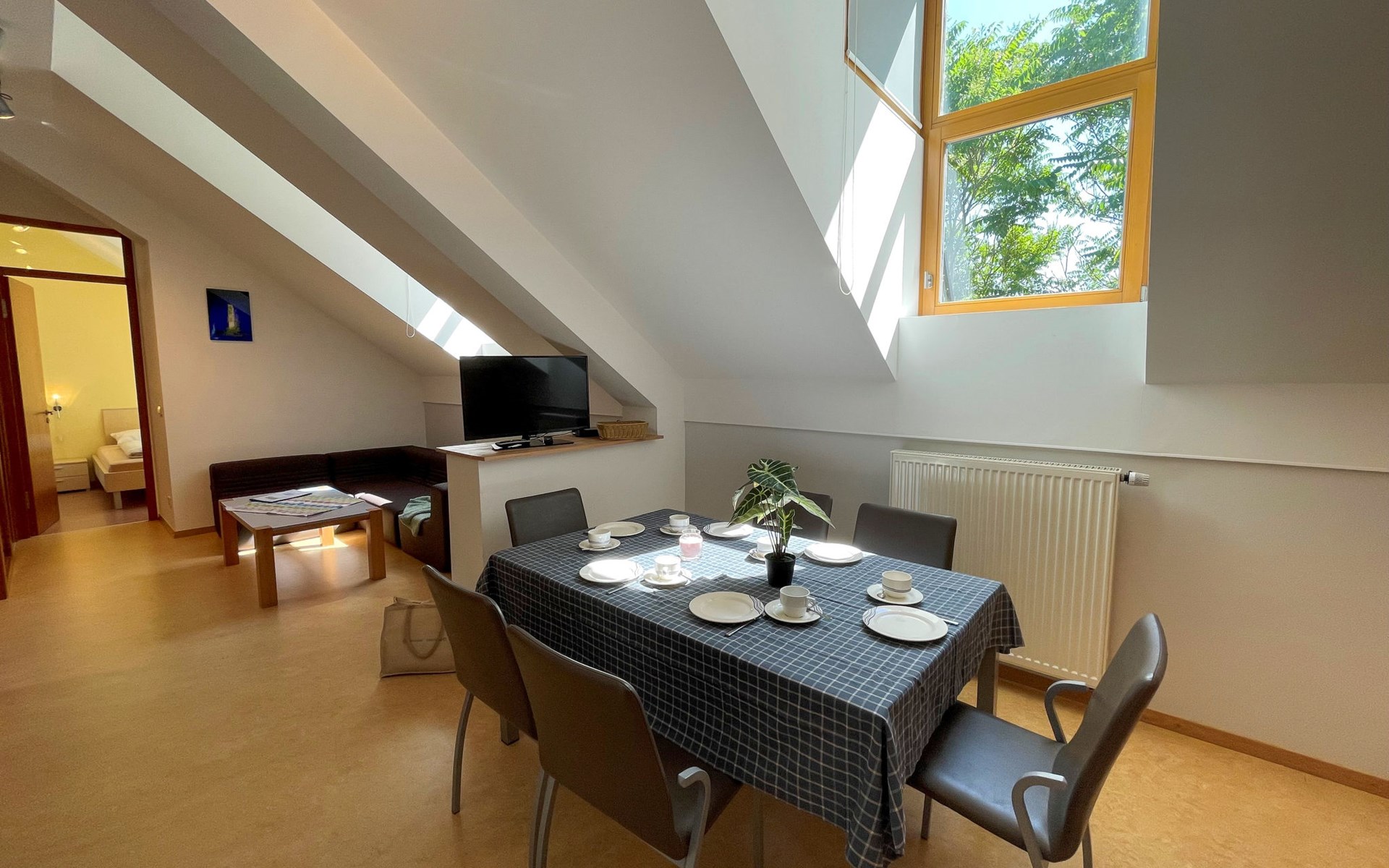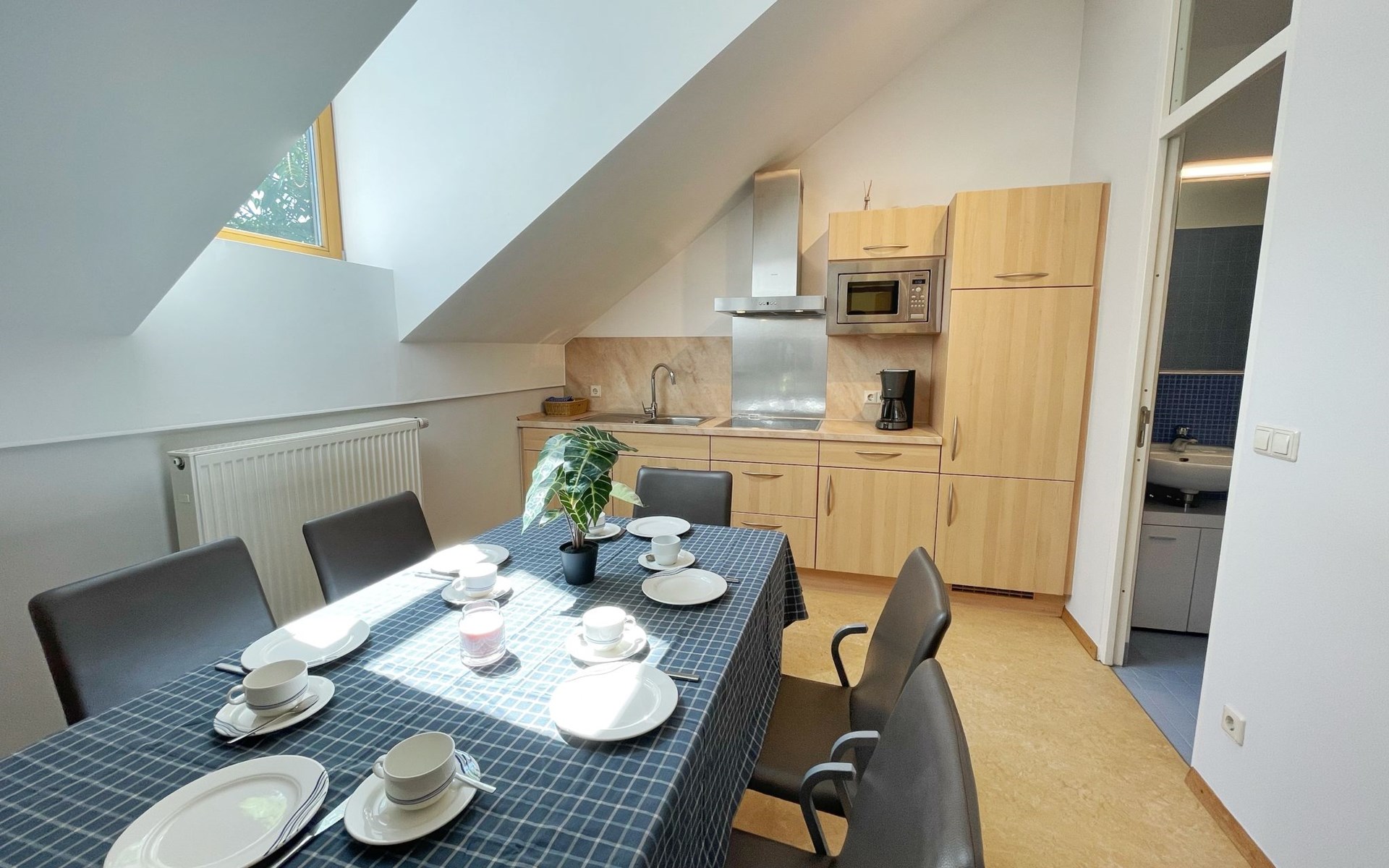 Appartementhaus auf 2 Stockwerken. 4 Wohnungen in der Residenz. Am Ortsrand, 50 m vom Fluss. Zur Mitbenutzung: Schwimmbad (8 x 50 m, saisonale Verfügbarkeit: 15.Mai. - 15.Sep., extra € 7 pro Tag). WC im Poolbereich, Kinderbecken, Rutschbahn. In der Anlage: Restaurant, Zentralheizung, Waschmaschine, Wäschetrockner. Öffentliche Parkplätze 20 m extra. Einkaufsgeschäft 50 m, Fahrradverleih 500 m, Bushaltestelle "Grevenmacher, Gare routière" 350 m, Freibad 20 m. Kinderspielplatz 50 m. Nahe gelegene Sehenswürdigkeiten: Kundel 500 m, Schmetterlingsgarten 450 m, Weinkellerei 800 m, Trier 20 km, Mosel Beach Bar 100 m. Wandergebiete: Jakobsweg 400 m, Mosel Wanderweg 50 m. Bei einem Aufenthalt von mindestens 7 Nächten erhalten Gäste pro Person 1 Tageseintritt in das Freibad gratis.