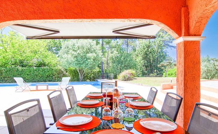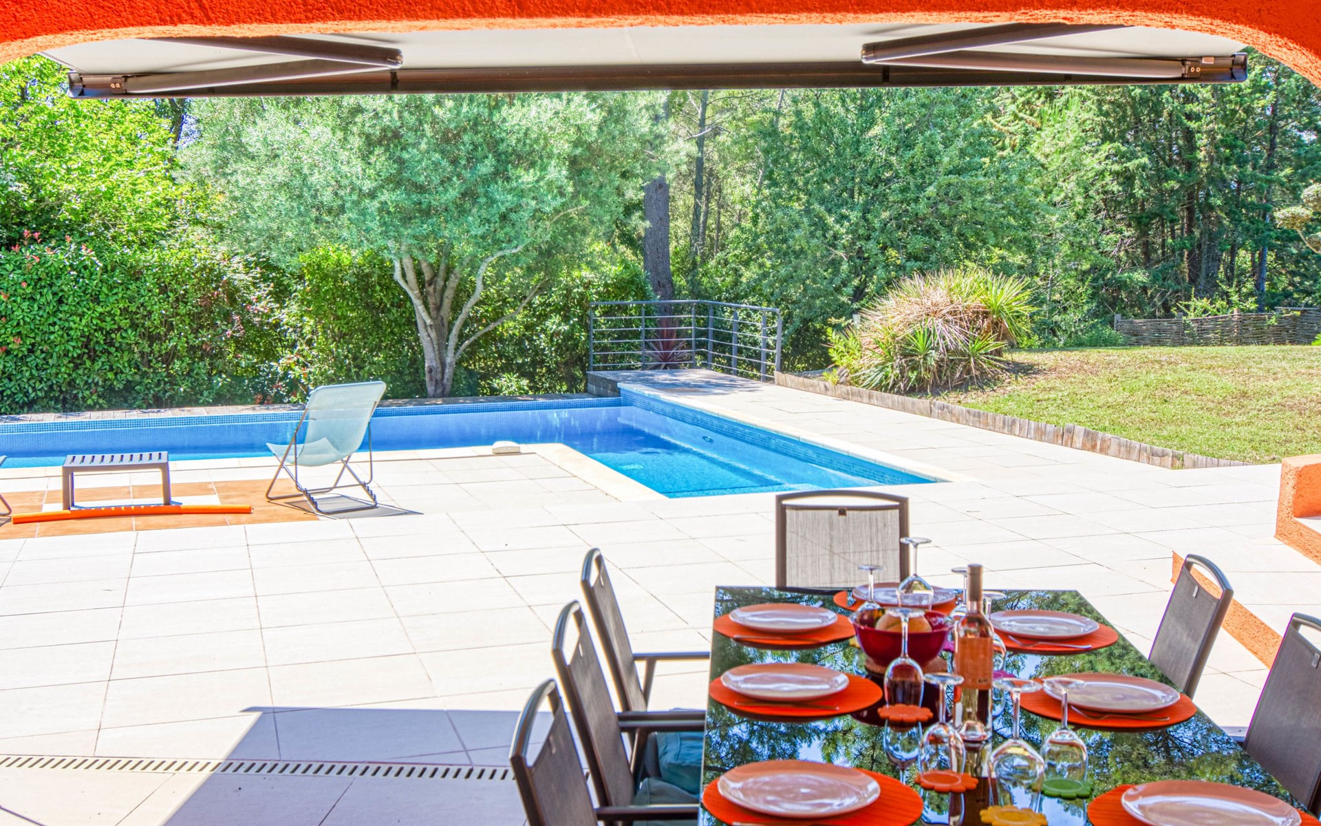 Schönes Haus "Micocoulier". 2.5 km vom Zentrum von Bagnols-en-Forêt, 12 km vom Zentrum von Fayence, 23 km vom Zentrum von Saint Raphaël, im Villenviertel, 20 km vom Meer, 12.5 km vom See, im Grünen. Zur Alleinbenutzung: gepflegter Garten 2'100 m2 mit Rasen und Bäumen, Schwimmbad (12 x 5 m, 20 - 220 cm tief, saisonale Verfügbarkeit: 01.Jan. - 31.Dez.) mit Alarmanlage. Boccia, Terrasse. Im Hause: Billard. Holprige Zufahrt (150 m Naturweg). Parkplatz (für 4 Autos) auf dem Grundstück. Supermarkt 1 km, Bushaltestelle 250 m, Bahnstation "Saint Raphael Valescure" 23 km, Sandstrand "Fréjus" 20 km, See Saint Cassien 13 km. Golfplatz (18 Loch) 7.5 km. Nahe gelegene Sehenswürdigkeiten: Gorges du Verdon, Golf Les Terres Blanches. Bekannte Seen in der Umgebung sind gut erreichbar: Lac de Saint Cassien, Lac de Sainte Croix. Wandergebiete: Les Adrets de l'Esterel, Gorges du Blavet, Gorges du Verdon. Der Besitzer akzeptiert keine Jugendgruppen. Die Nachbarschaft ist sehr lärmempfindlich. Ruhe und gutes Benehmen wird erwartet.