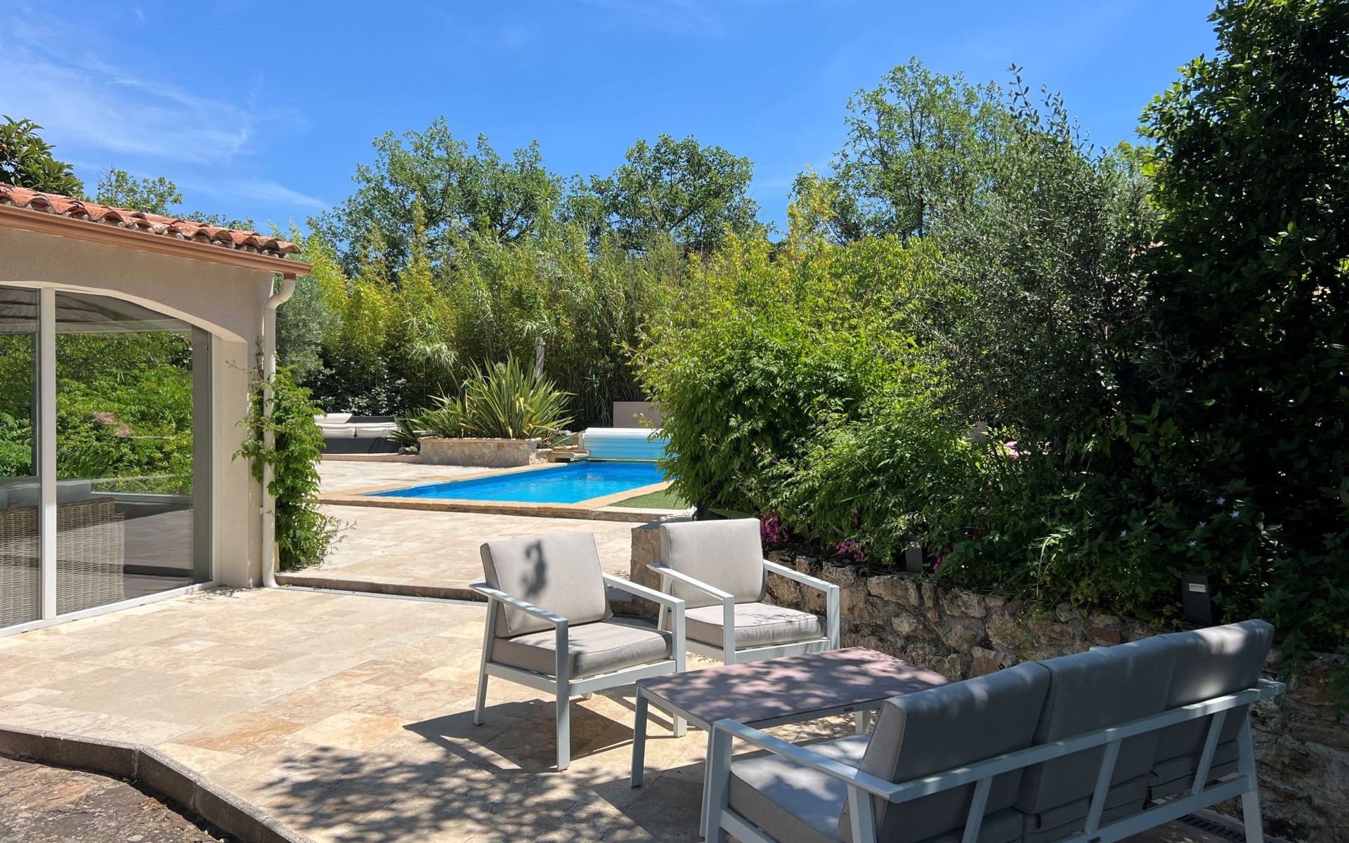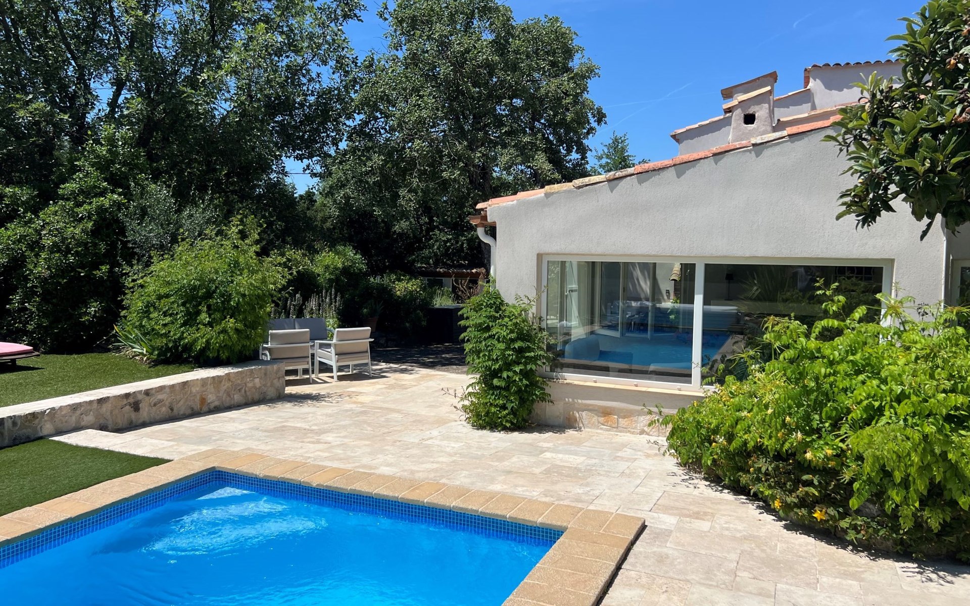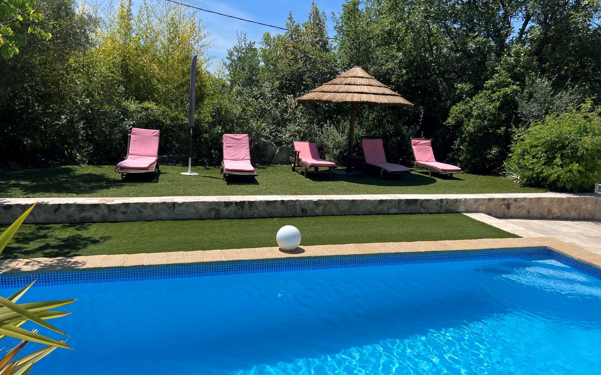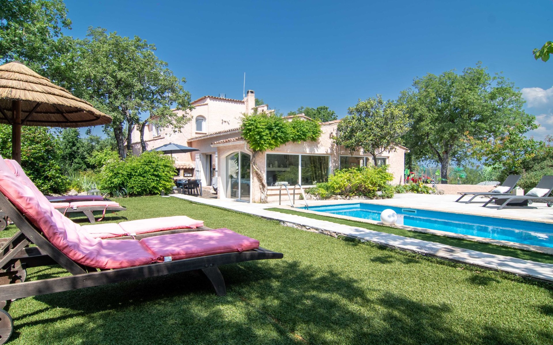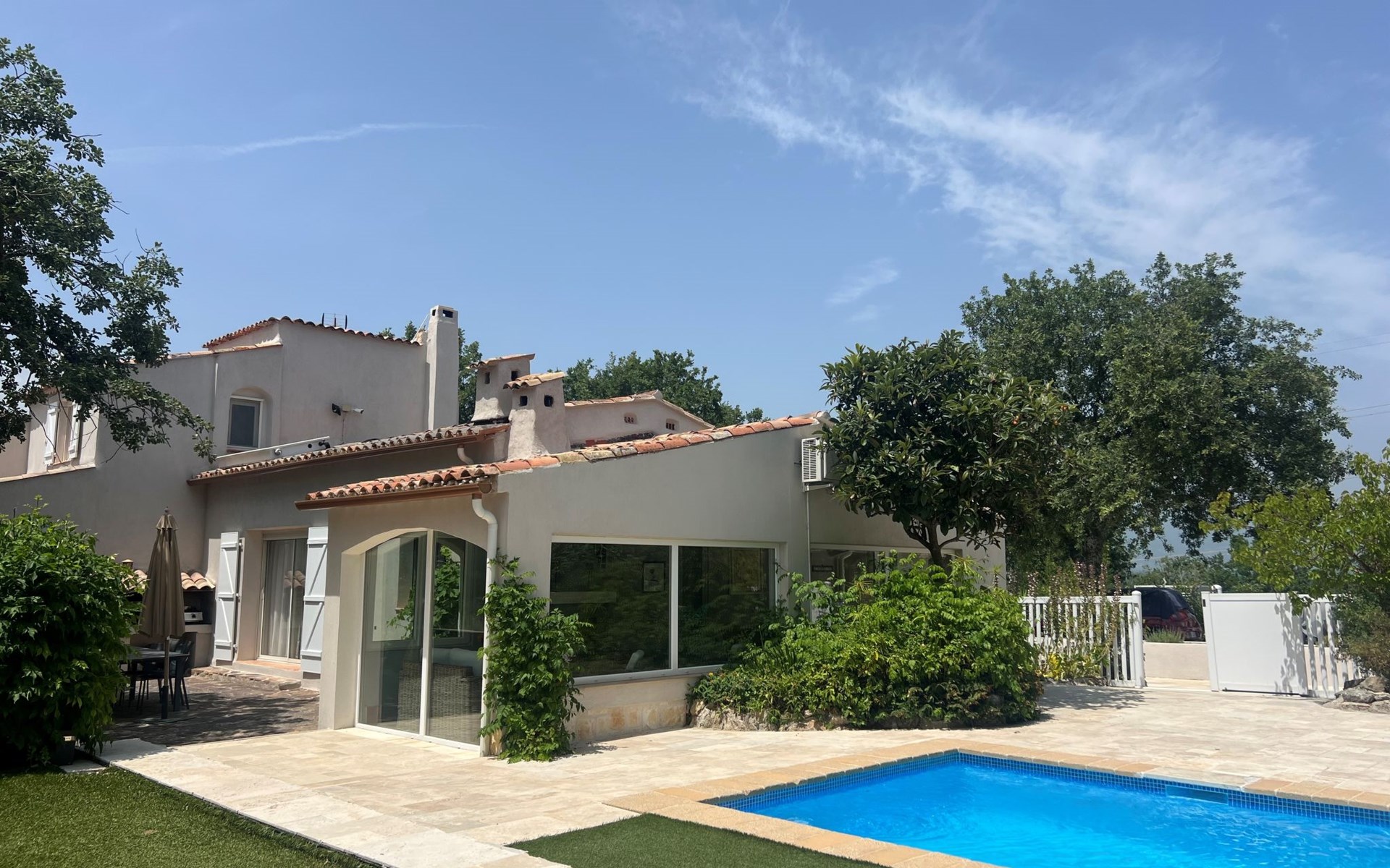 Schönes Einfamilienhaus. 5.3 km vom Zentrum von Bagnols en foret, 12.8 km vom Zentrum von Fayence, 25 km vom Zentrum von Saint Raphael, 24 km vom Meer, 25 km vom See. Zur Alleinbenutzung: Grundstück 1'745 m2, Schwimmbad eckig (7 x 3 m, 145 - 200 cm tief, saisonale Verfügbarkeit: 01.Jan. - 31.Dez.) mit Rollladenabdeckung. Parkplatz (beschränkte Anzahl) auf dem Grundstück. Lebensmittelgeschäft 4.2 km, Restaurant 5.3 km, Café 5.3 km, Bushaltestelle 3 km, Bahnstation "Saint Raphael Valescure" 26 km, Sandstrand "Fréjus" 24 km. Golfplatz (18 Loch) 8 km. Nahe gelegene Sehenswürdigkeiten: Gorges du Blavet. Bekannte Seen in der Umgebung sind gut erreichbar: Lac Saint Cassien 25 km, Lac de Sainte Croix 74 m. Wandergebiete: Gorges du Verdon, Les Adrets de l'Esterel. Der Besitzer akzeptiert keine Jugendgruppen. Bitte beachten: Der Besitzer wohnt auf dem gleichen Grundstück. Tiere in der Umgebung. Die Nachbarschaft ist sehr lärmempfindlich. Ruhe und gutes Benehmen wird erwartet.