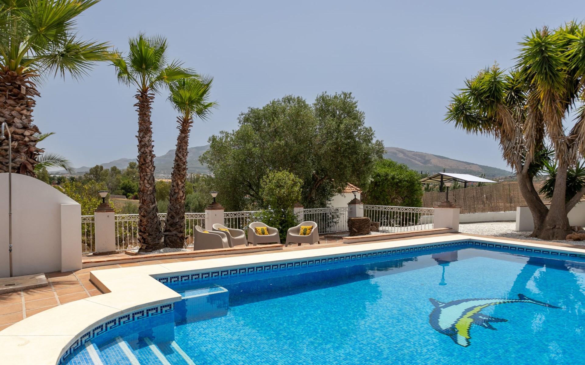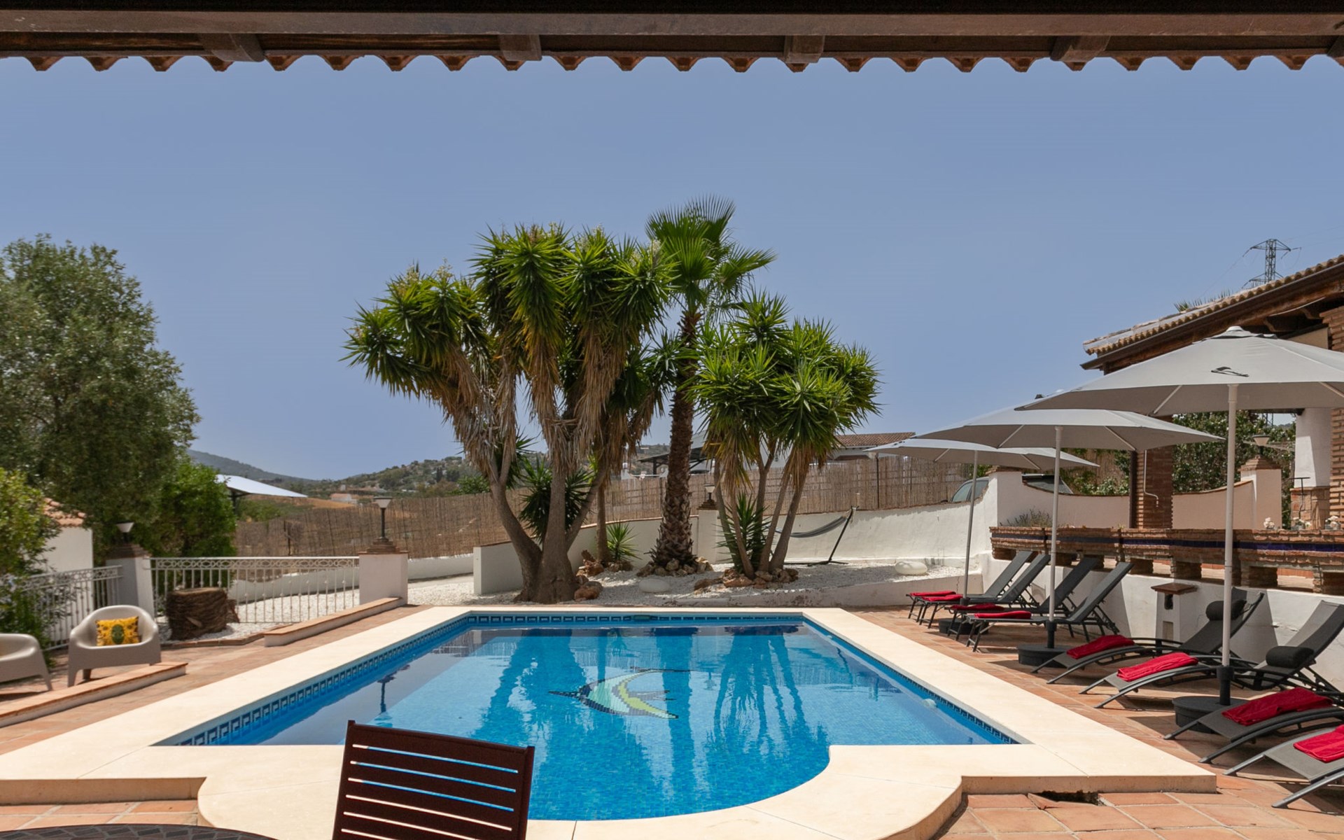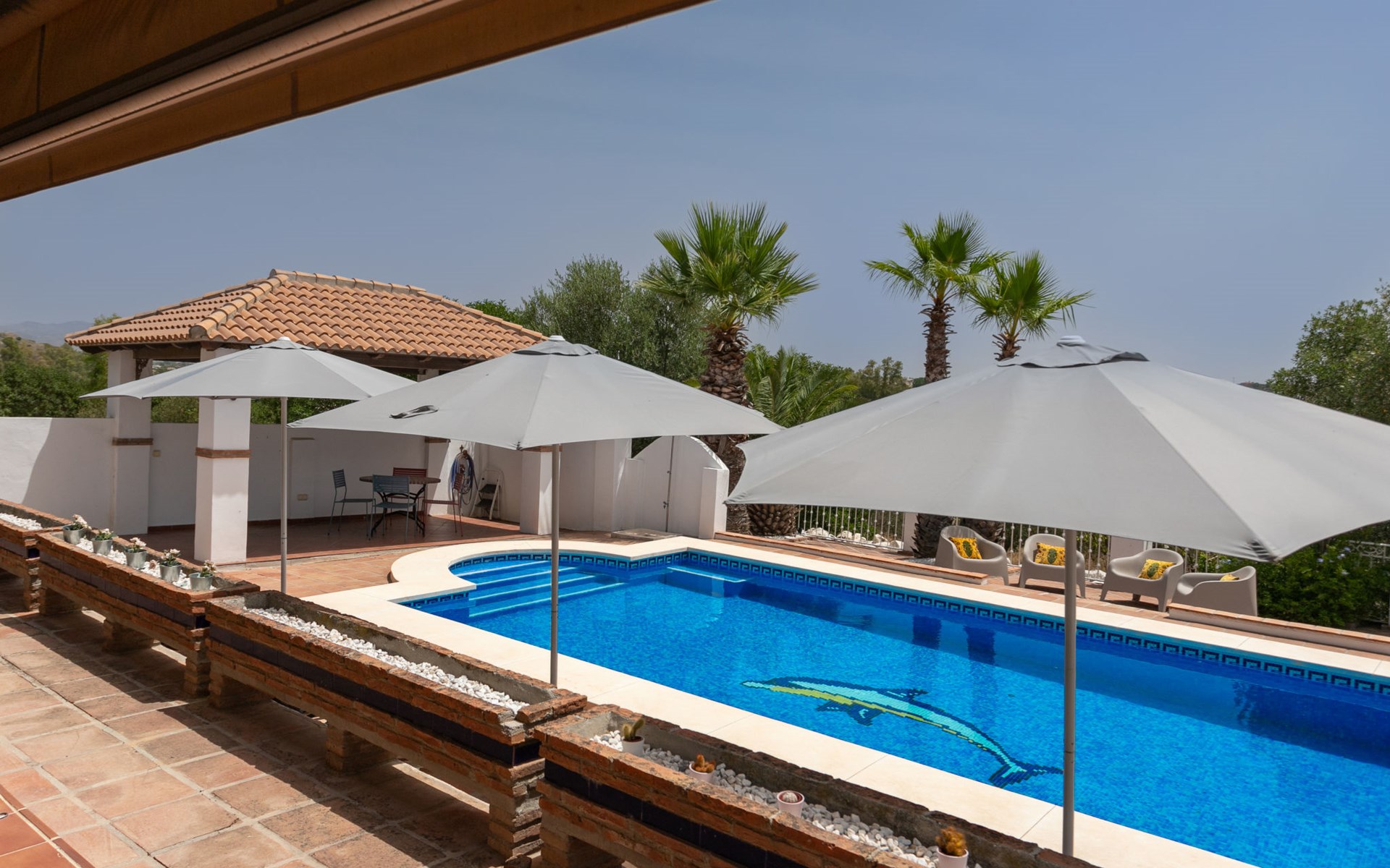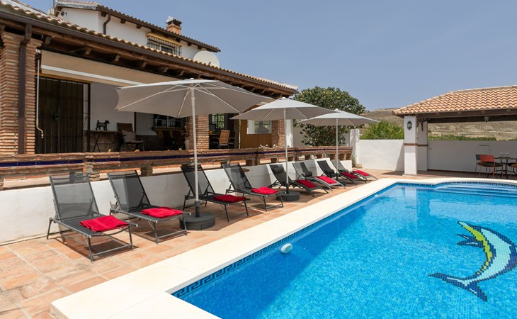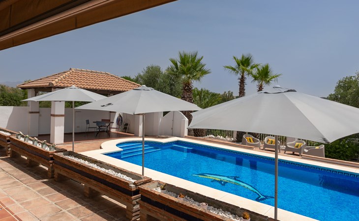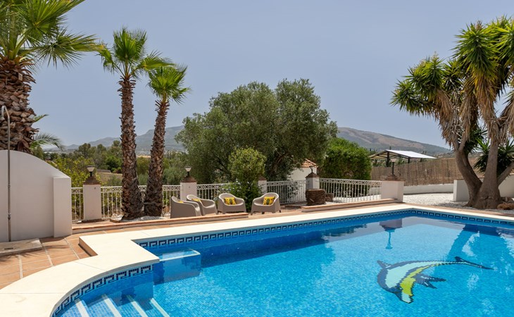 La Campinuela: Schönes, rustikales Bauernhaus "Sacre", auf 2 Stockwerken, Baujahr 2012, umgeben von Feldern. 6 km vom Zentrum von Coin, 20 km vom Zentrum von Fuengirola, ausserhalb des Ortes, 4.7 km vom Zentrum von Alhaurin el Grande, alleinstehende, sonnige Lage, 22 km vom Meer, 22 km vom Strand, im Grünen. Zur Alleinbenutzung: Grundstück (eingezäunt), Schwimmbad eckig (9 x 4 m, 180 - 180 cm tief, saisonale Verfügbarkeit: 01.Jan. - 31.Dez.) mit Innentreppe. Aussendusche, Laube, Grill, Grillhaus, Parkplatz beim Haus. Supermarkt 6 km, Einkaufszentrum 6.5 km, Restaurant 2 km, Bar 6 km, Café 6 km, Bushaltestelle "Campinuela V" 1.2 km, Sandstrand "Playa de los Boliches" 22 km. Golfplatz (18 Loch) 8 km. Wandergebiete: Barranco Blanco 11 km.