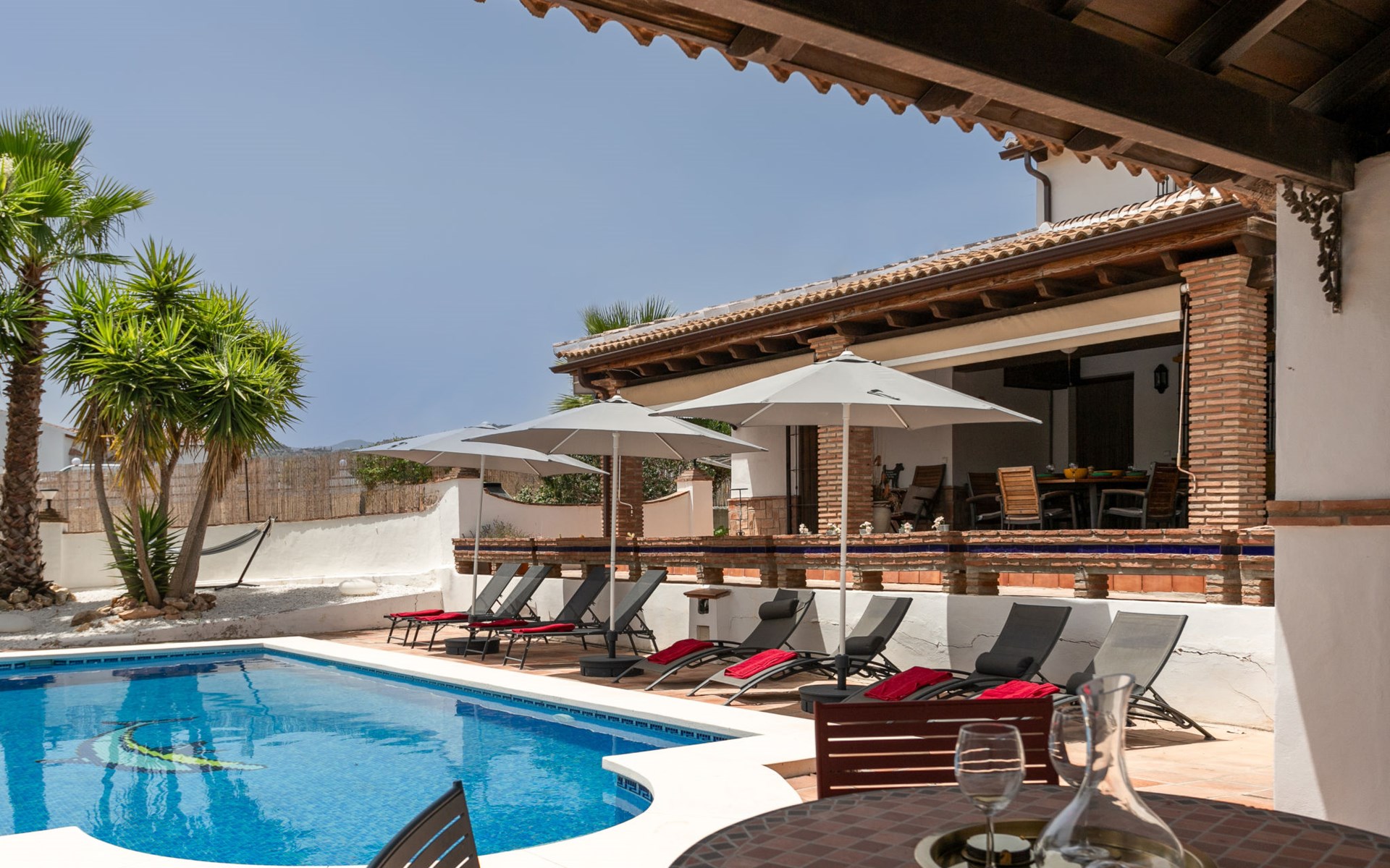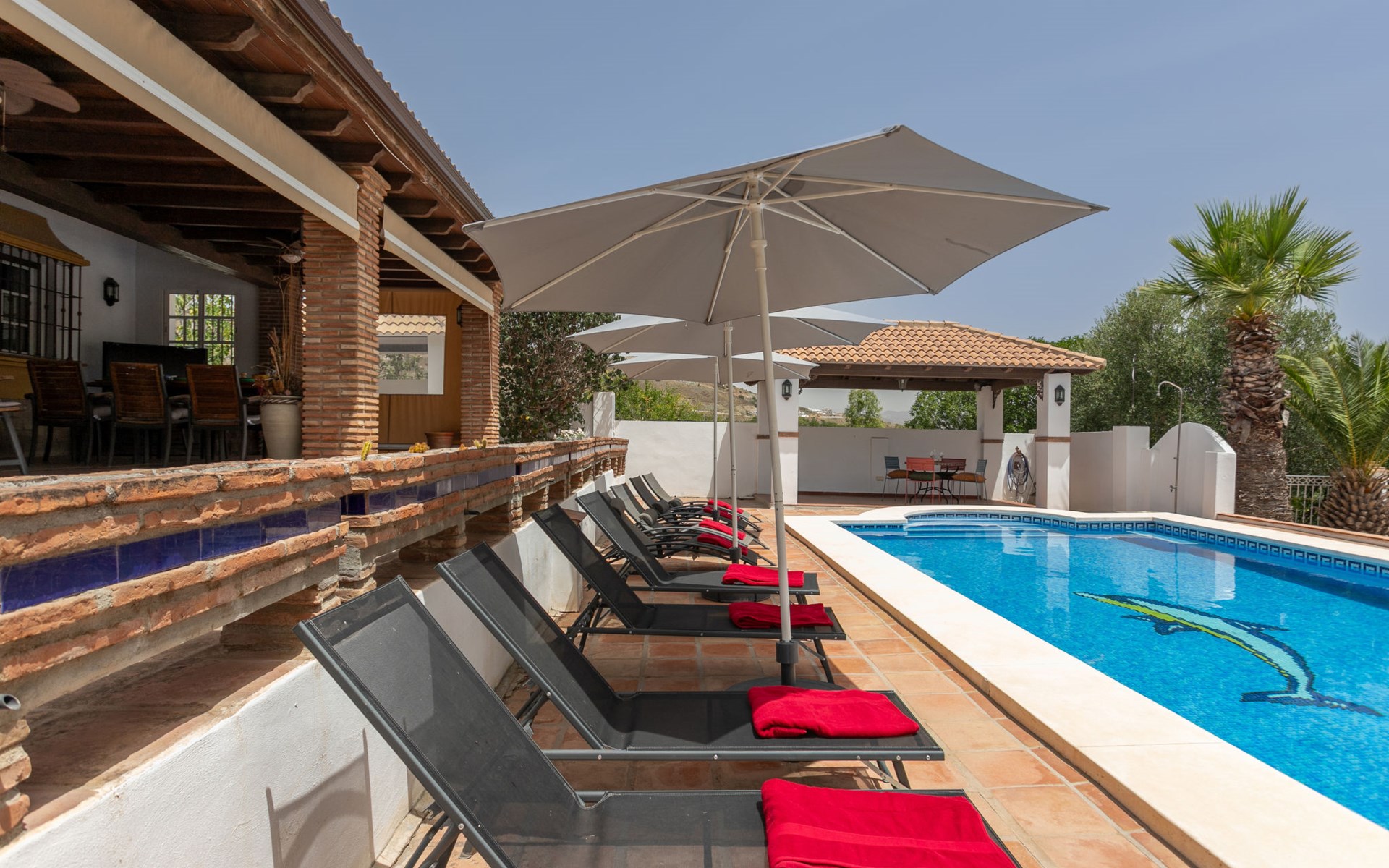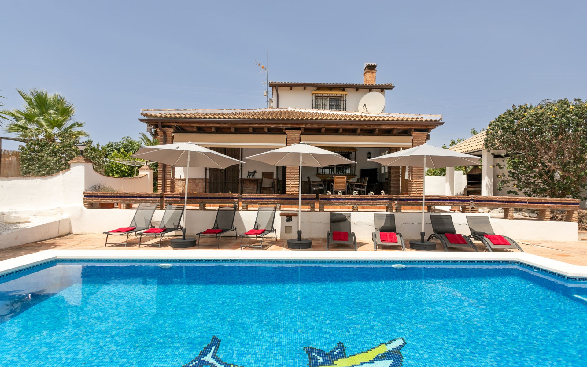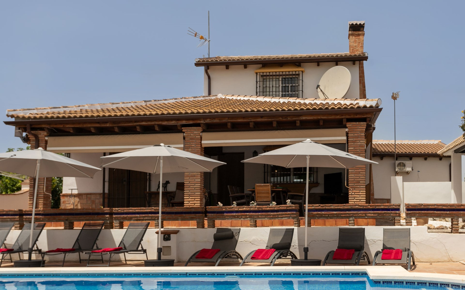 La Campinuela: Schönes, rustikales Bauernhaus "Sacre", auf 2 Stockwerken, Baujahr 2012, umgeben von Feldern. 6 km vom Zentrum von Coin, 20 km vom Zentrum von Fuengirola, ausserhalb des Ortes, 4.7 km vom Zentrum von Alhaurin el Grande, alleinstehende, sonnige Lage, 22 km vom Meer, 22 km vom Strand, im Grünen. Zur Alleinbenutzung: Grundstück (eingezäunt), Schwimmbad eckig (9 x 4 m, 180 - 180 cm tief, saisonale Verfügbarkeit: 01.Jan. - 31.Dez.) mit Innentreppe. Aussendusche, Laube, Grill, Grillhaus, Parkplatz beim Haus. Supermarkt 6 km, Einkaufszentrum 6.5 km, Restaurant 2 km, Bar 6 km, Café 6 km, Bushaltestelle "Campinuela V" 1.2 km, Sandstrand "Playa de los Boliches" 22 km. Golfplatz (18 Loch) 8 km. Wandergebiete: Barranco Blanco 11 km.
