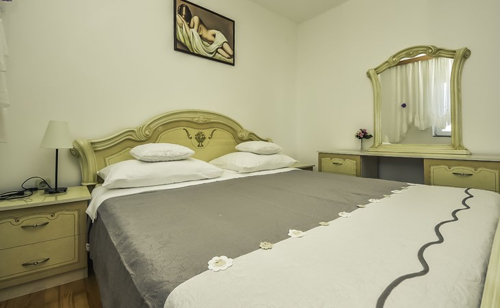 Haus an der Südküste der Insel Pasman, in der schönen Bucht Soline, in der Nähe des Kornati-Archipels (Nationalpark). Zweifamilienhaus "Franka", auf 2 Stockwerken. Alleinstehende Lage, 20 m vom Meer, 20 m vom Strand. Zur Alleinbenutzung: Grundstück 2'400 m2, Garten mit Rasen und Bäumen. Grill, Kinderspielplatz. Zur Verfügung: Boot (extra). Zufahrt bis zum Haus (Naturweg). Parkplatz beim Haus auf dem Grundstück. Bushaltestelle 11.1 km, Kieselstrand, Felsstrand 20 m. Bitte beachten: private Bootsanlegestelle. Das Haus ist nur mit dem Boot oder mit einem Geländewagen, über eine unbefestigte Strasse, erreichbar. Die Transfers am Anreise- und Abreisetag werden vom Eigentümer organisiert (im Mietpreis inbegriffen). Das 3 m lange Motorboot des Eigentümers kann gemietet werden (extra).