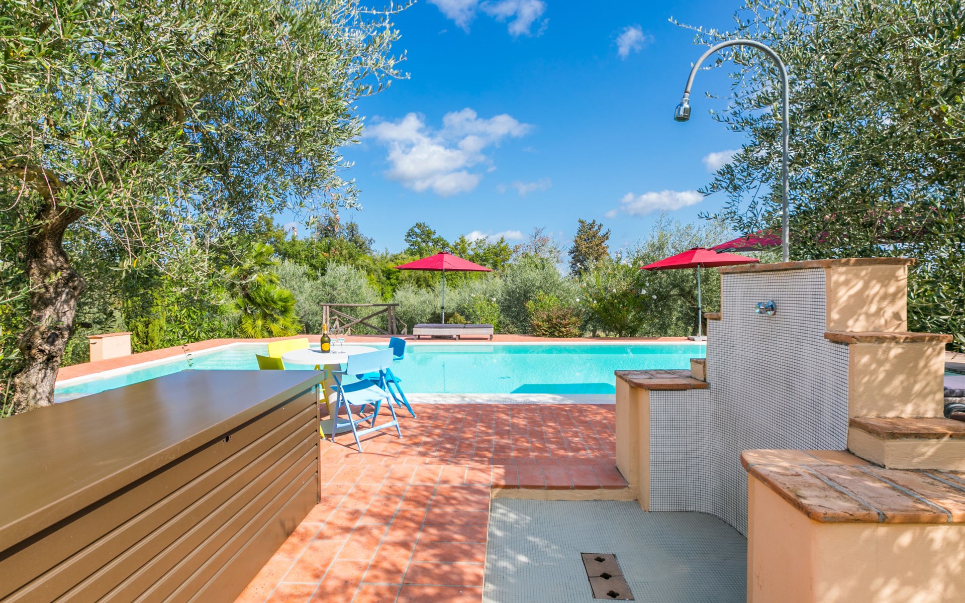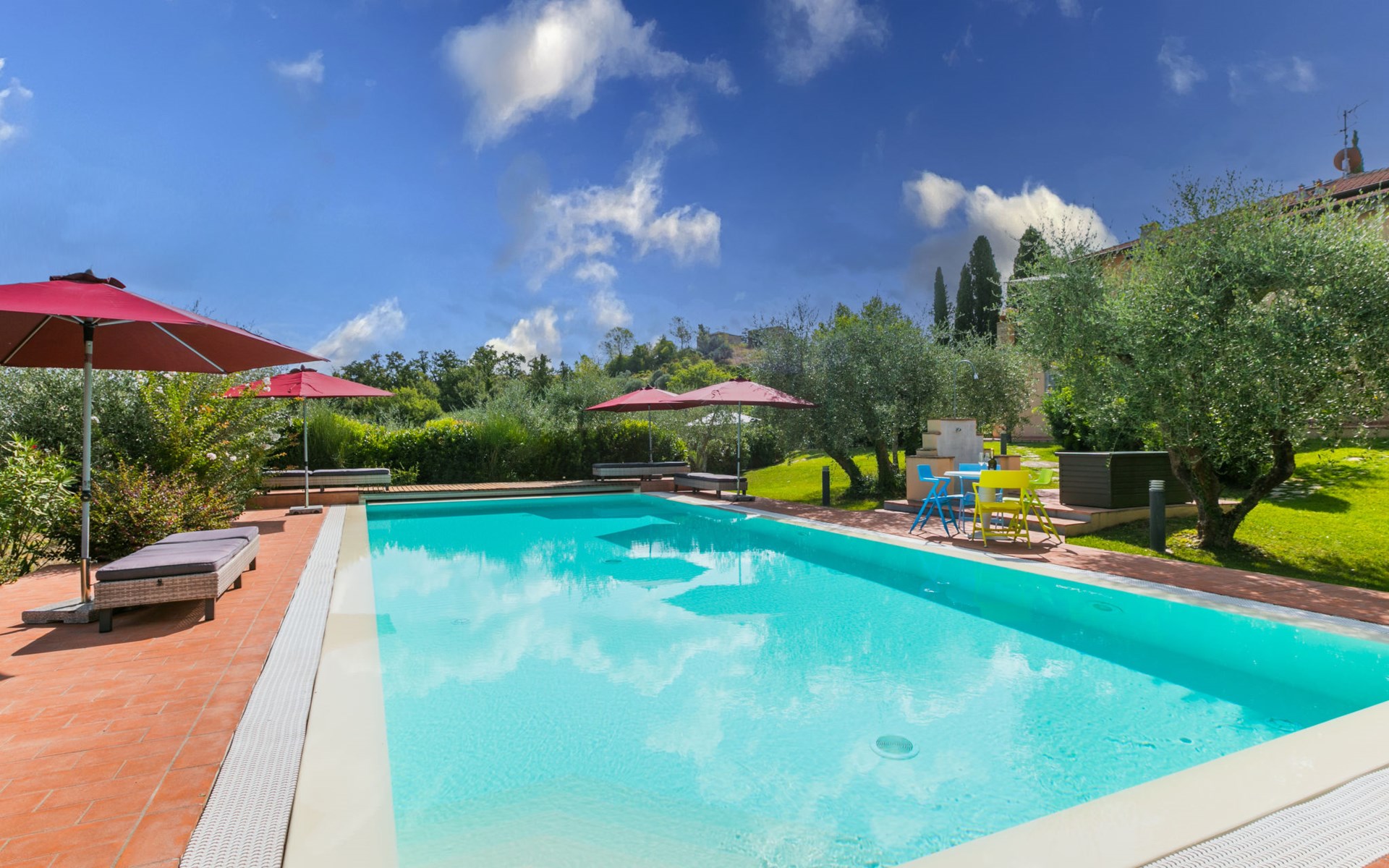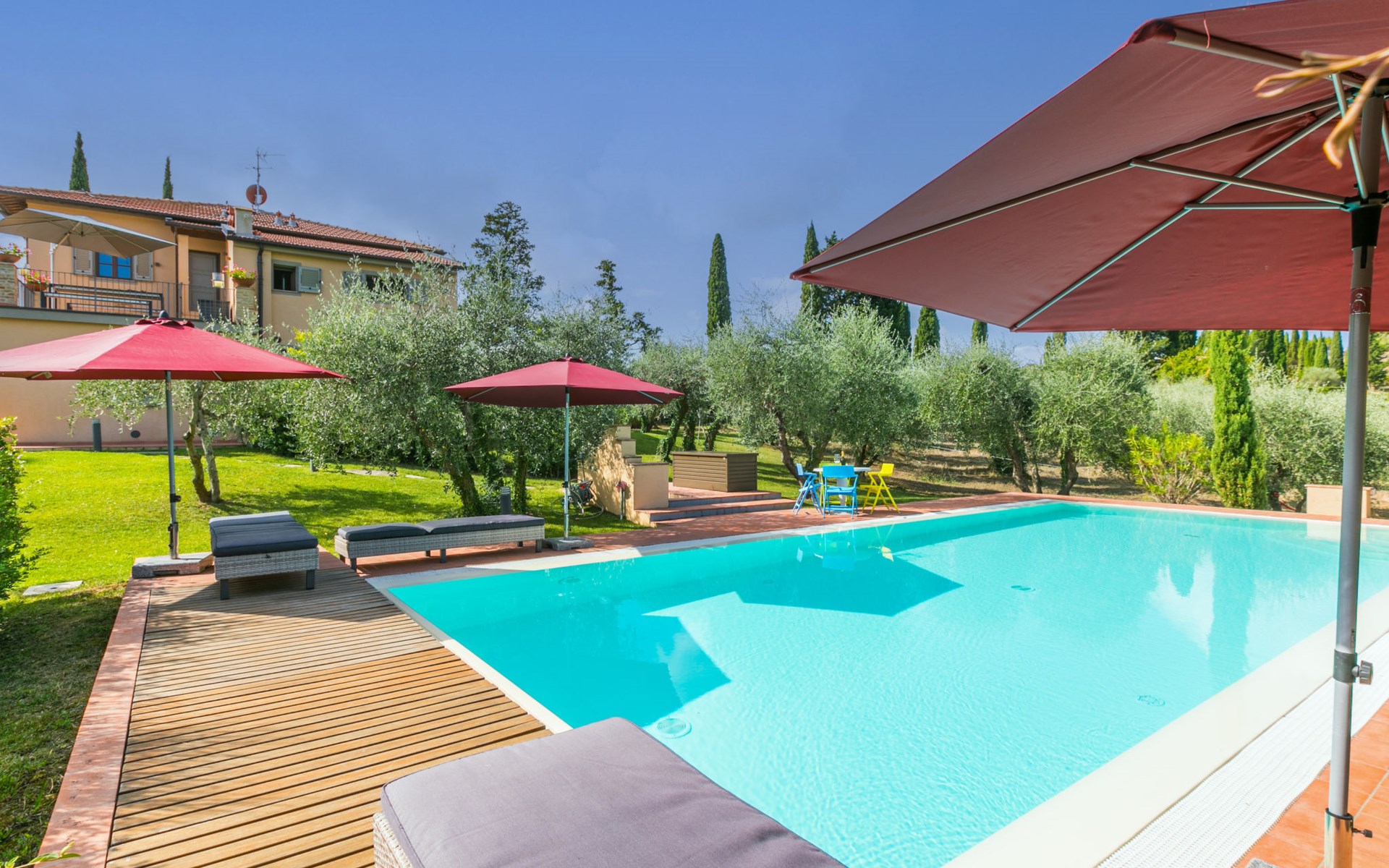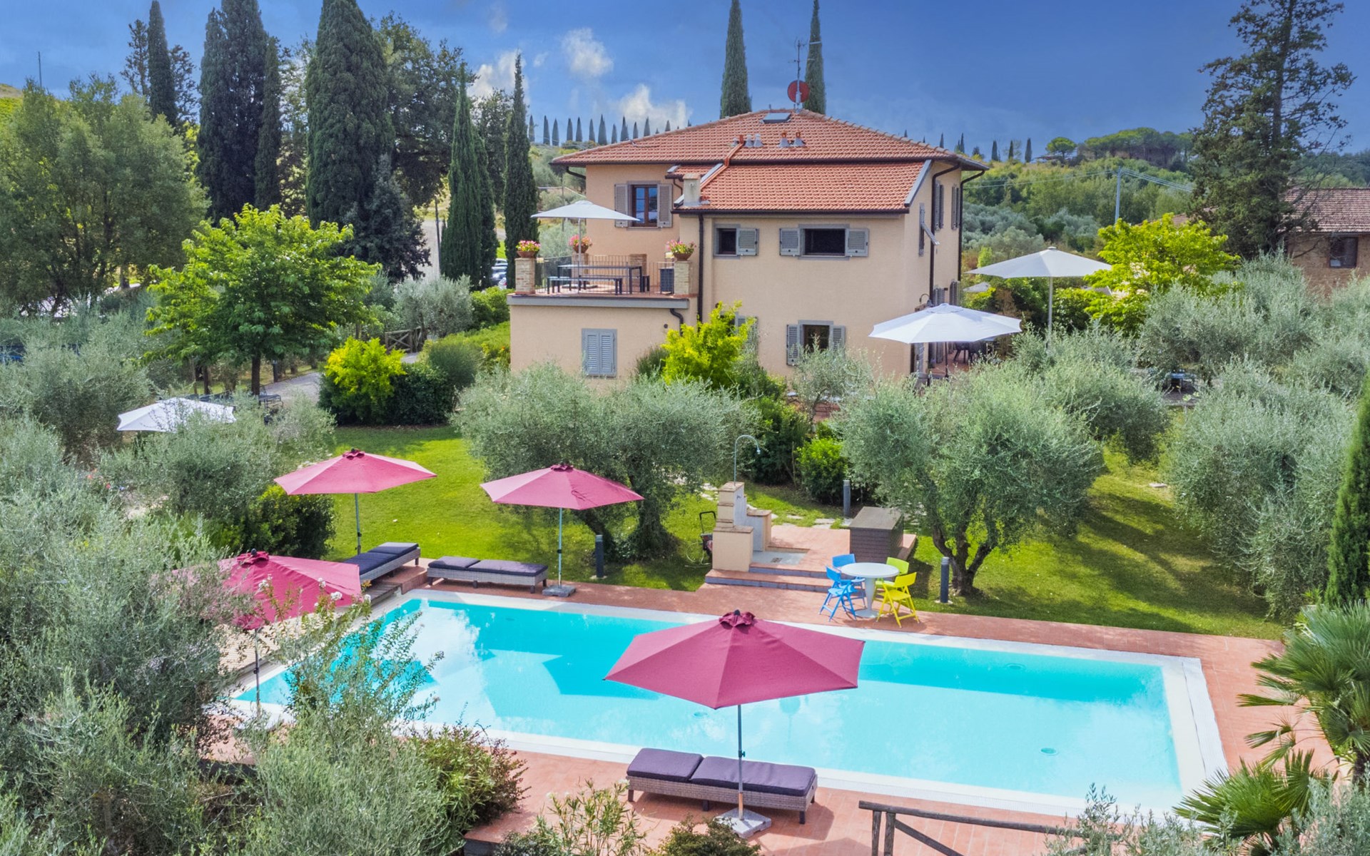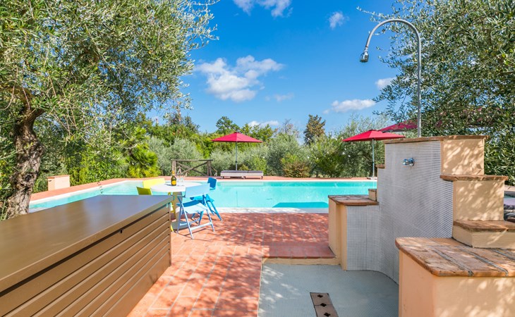 Montaione: Schönes, komfortables Haus "Vecchio Forno", renoviert im Jahre 2023, umgeben von Feldern und Weinbergen. 9.5 km vom Zentrum von Montaione, sonnige Lage, im Grünen. Zur Alleinbenutzung: grosser, schöner Garten 1 ha (eingezäunt) Pflanzen und Bäumen, Schwimmbad (5 x 12 m, 130 - 160 cm tief, saisonale Verfügbarkeit: 01.Apr. - 31.Okt.). Aussendusche, Sitzplatz, Terrasse, Gartenmöbel, Grill, Poolpflege durch den Besitzer/Gärtner. Im Hause: Aufenthaltsraum, Wireless LAN, Trampolin, Zentralheizung, Waschmaschine, Wäschetrockner. Wäschewechsel (zusätzlich extra). Handtuchwechsel (zusätzlich extra). Wohnungsreinigung möglich (extra). Haushaltshilfe möglich (extra). Koch möglich (extra). Parkplatz beim Haus. E-Ladestation. Einkaufsgeschäft 9 km, Lebensmittelgeschäft 9 km, Supermarkt 9 km, Restaurant 100 m, Bushaltestelle 9 km, Sandstrand "Vada" 70 km, Thermalbad "Gambassi Terme" 10 km. Golfplatz (9 Loch) 13 km, Tennis 9 km, Wanderwege ab Haus 100 m. Nahe gelegene Sehenswürdigkeiten: San Gimignano 22 km, Volterra 27 km, Pisa 56 km, Firenze 60 km, Siena 65 km, Montalcino 100 km. Bitte beachten: Fahrzeug empfohlen. Babyausstattung (inkl.). Jugendgruppen nur auf Anfrage. Das 1. Stockwerk ist geschlossen und nicht bewohnt.