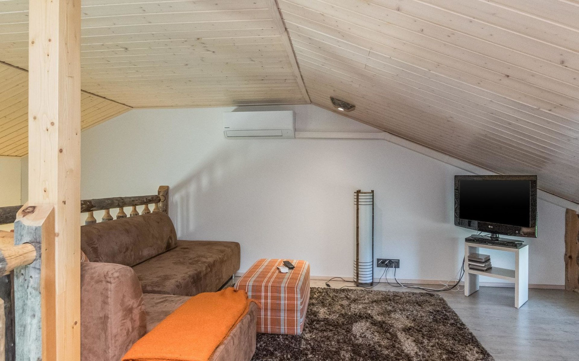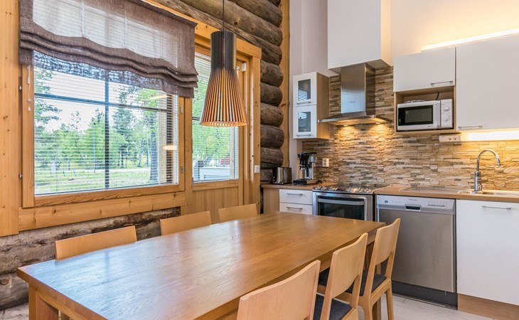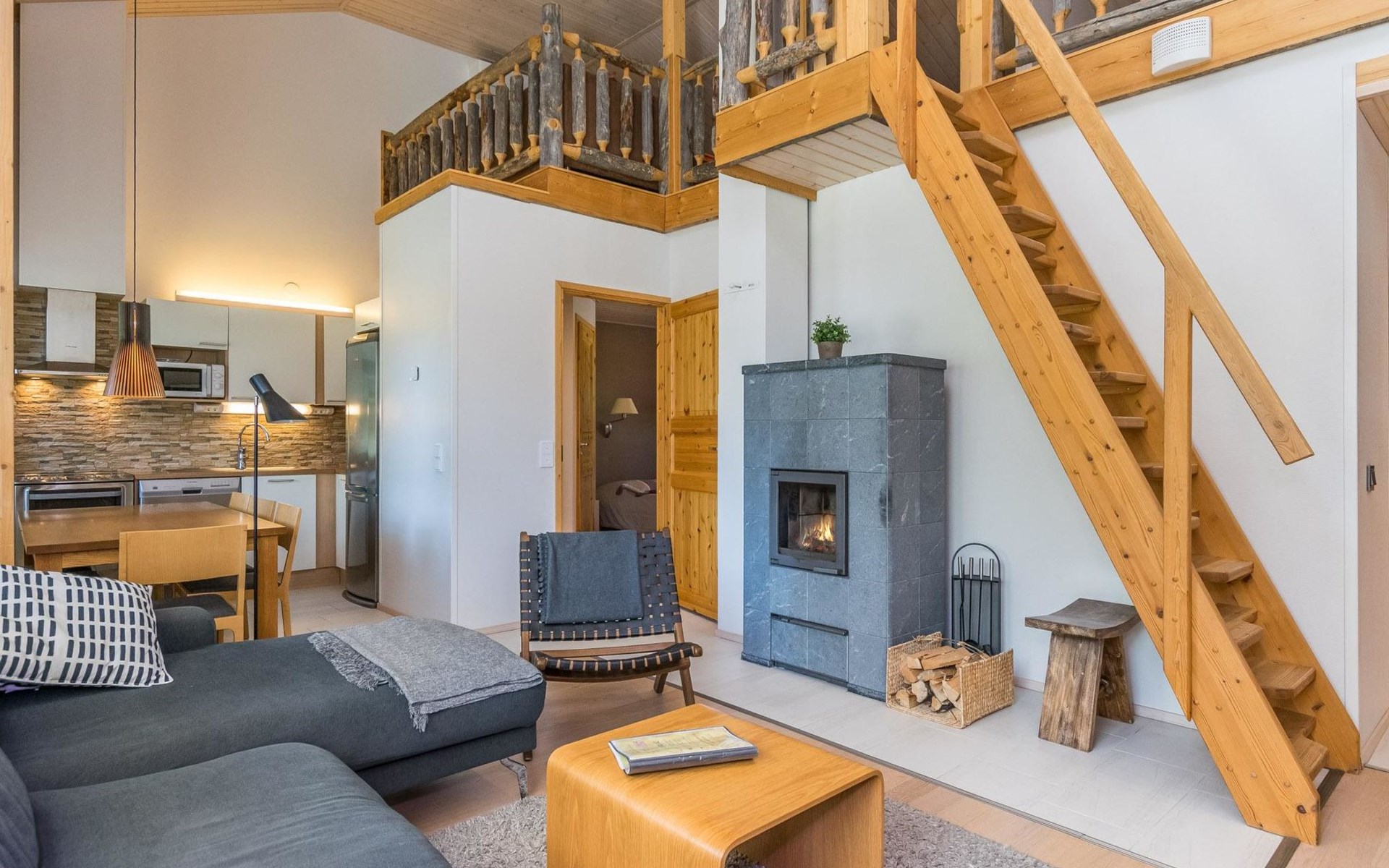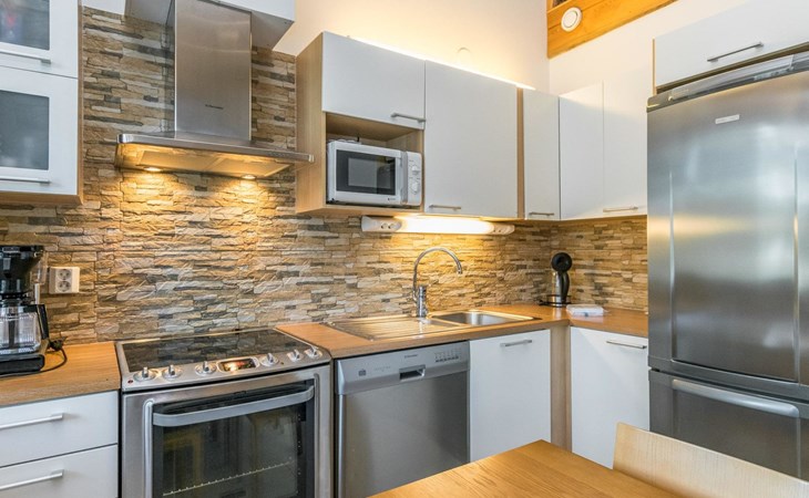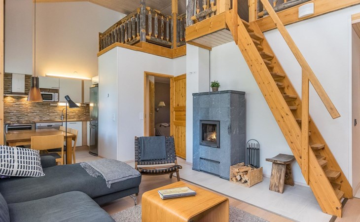 The cottage has a well-equipped kitchen/living room where you can prepare delicious meals, and in the living room you can relax watching TV or listening to the glow of the fireplace. There is also access to the terrace.