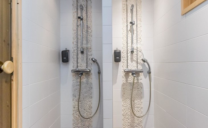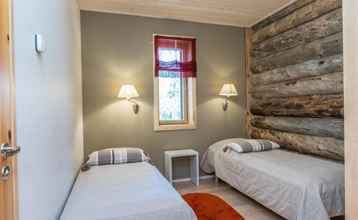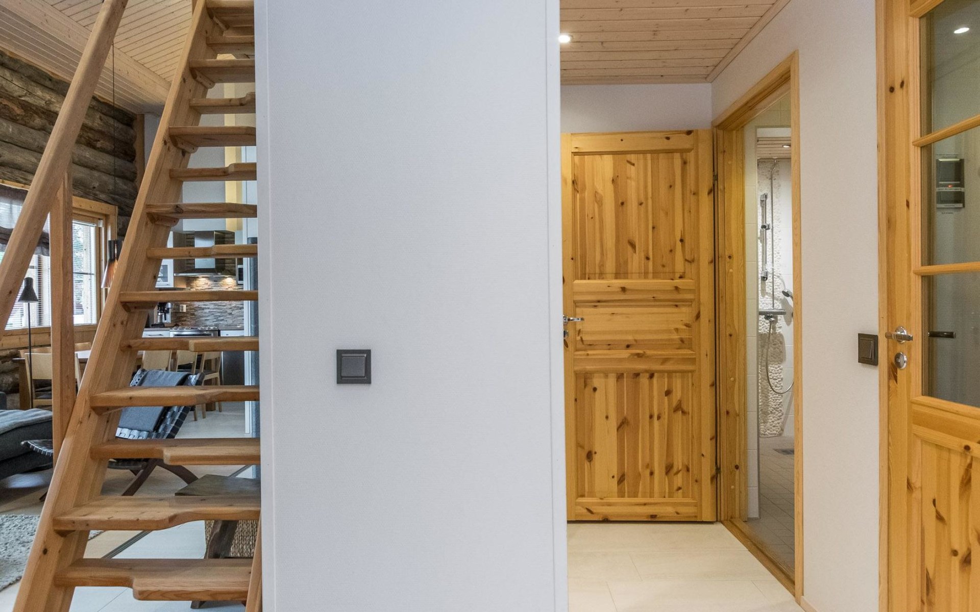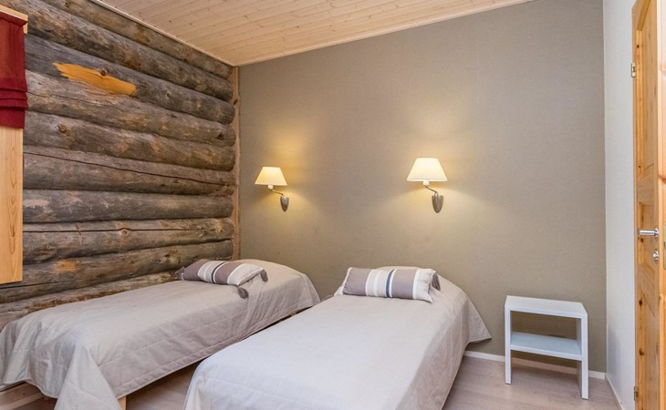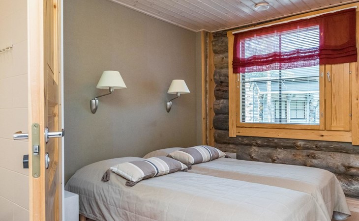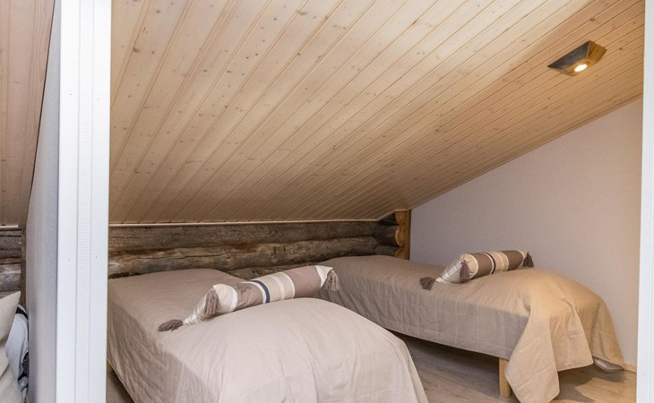 The bedrooms are located on the ground floor. Three bedrooms, two with two beds and one with twin bed (140 cm wide) all with private toilet. From the living room there is a staircase to the loft with a lounge and an alcove with two beds. The property also has air conditioning.