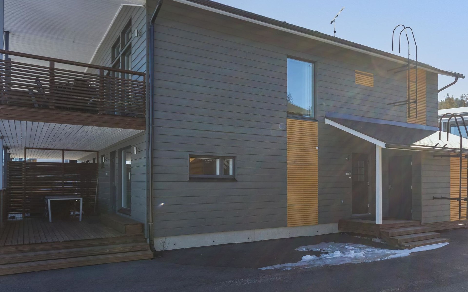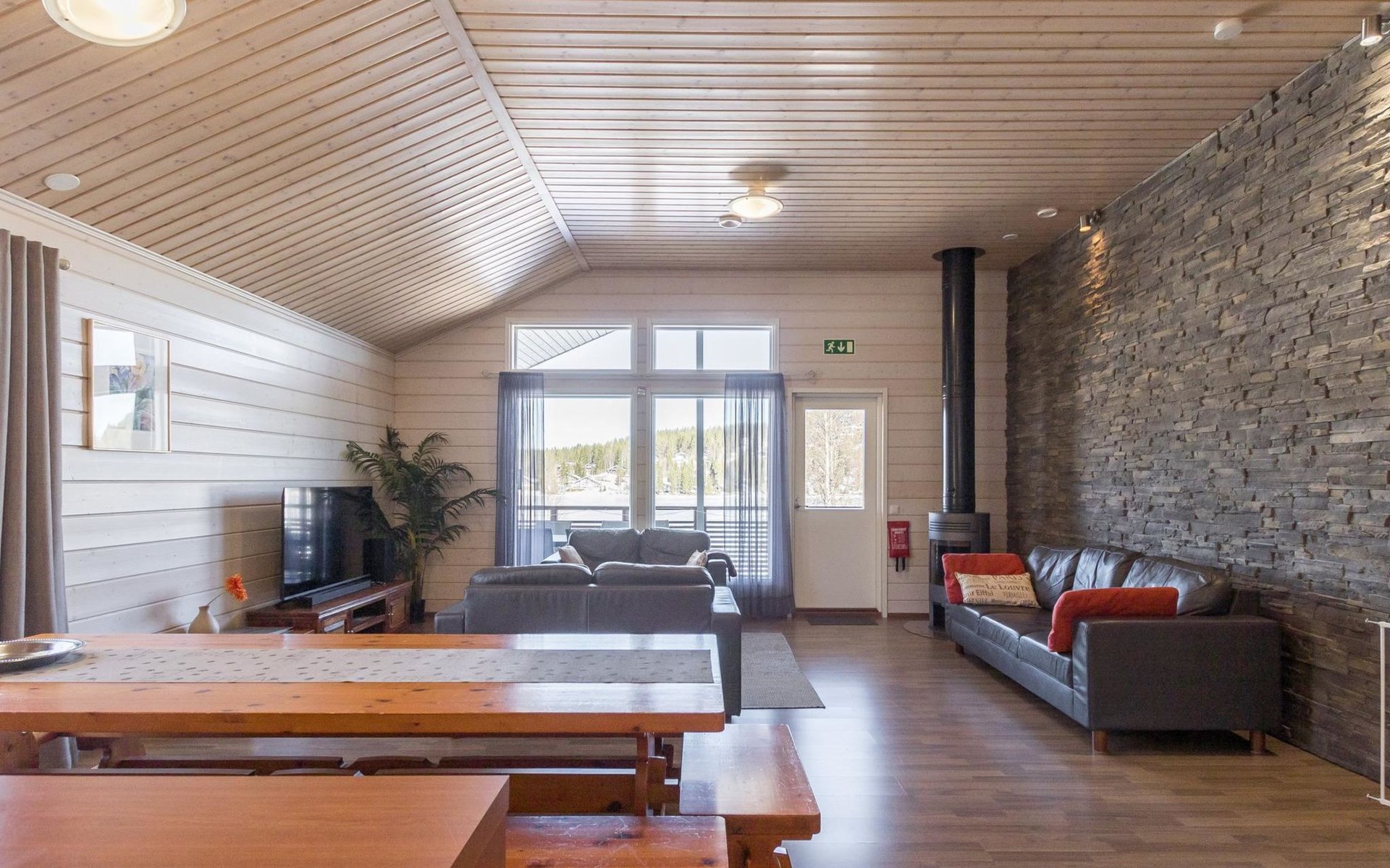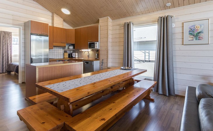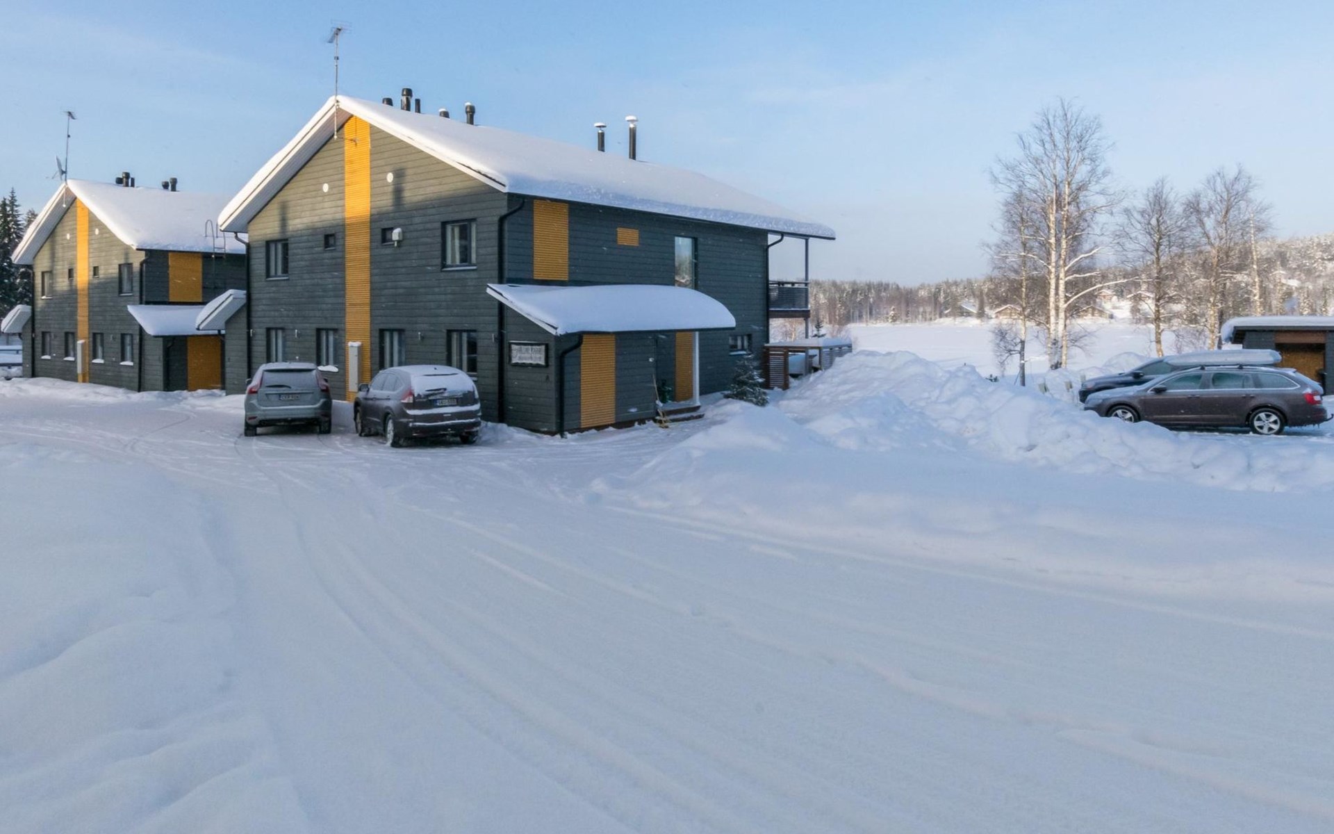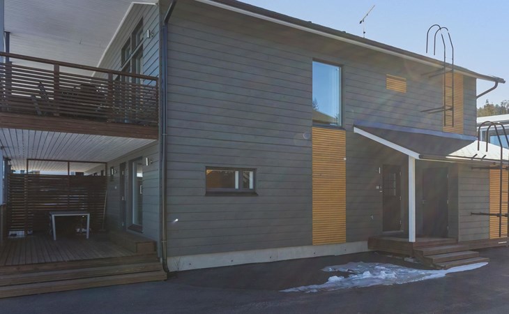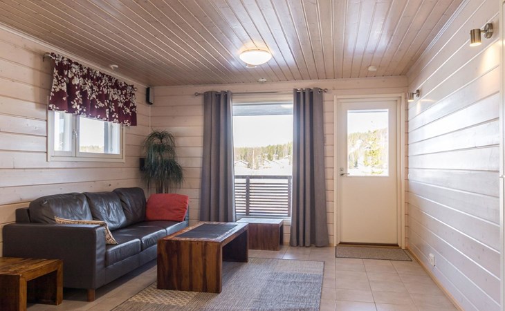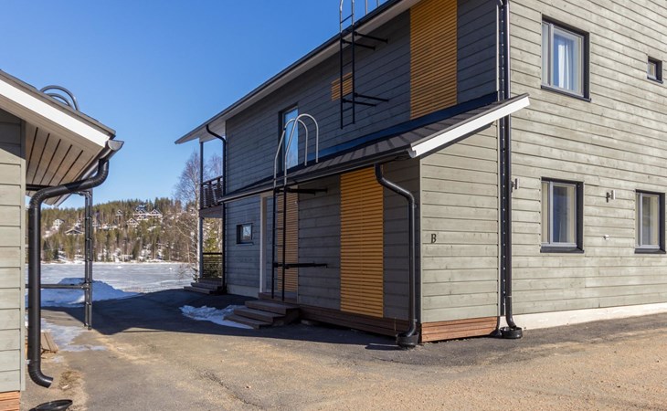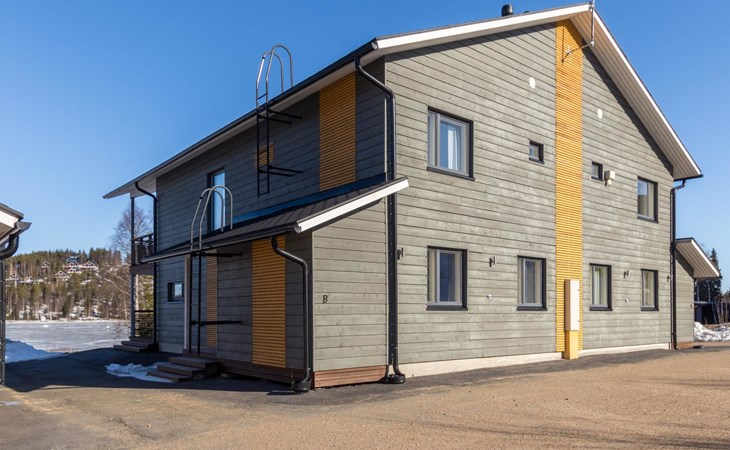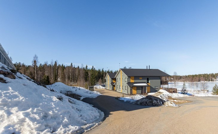 Doppelhaushälfte, im Tourismuszentrum Ukkohalla, Fläche 125 m2, für 10-14 Personen, Baujahr 2009. Räumlichkeiten auf 2 Etagen, im ersten Stock 2 Schlafzimmer, Wohnzimmer, Sauna, Duschbad/WC, Terrasse. Im zweiten Stock Küche, 1 Schlafzimmer, Duschbad/WC, Terrasse. Lagerung, Kamin. Blick auf den See Syväjärvi. 2 Schlafzimmern mit je 2 Betten, Doppelbett in einem Schlafzimmer, Schlafsofa und 2 Zusatzbetten im Wohnzimmer und in der Küche. Der Preis beinhaltet 1 Sack Brennholz, zusätzliches Holz vom Hausmeister (Euro 10/Sack). Ukkohalla: Tourismuszentrum am See Syväjärvi, Informationszentrum, Geschäft, Restaurant, Spa, Pistenzentrum, Schneemobilpisten, Skipisten, Programmservice, Strand (weitere Informationen unter www.ukkohalla.fi). Entfernung zu den Ukkohalla-Diensten 0,1 km. Flughafen Kajaani 86 km, Oulu 170 km, Helsinki 650 km, Bushaltestelle Hyrynsalmi 18 km, Bahnhof Kontiomäki 66 km. Haustiere nicht erlaubt, Blick auf den See Syväjärvi. Das Ferienhaus steht am Anreisetag ab 16.00 Uhr bis 12.00 Uhr am Abreisetag zur Verfügung. Die Endreinigung ist inbegriffen. ZUSÄTZLICHE GEBÜHR FÜR BETTWÄSCHE (€13/PERSON) WELCHE GEBUCHT WERDEN MÜSSEN.