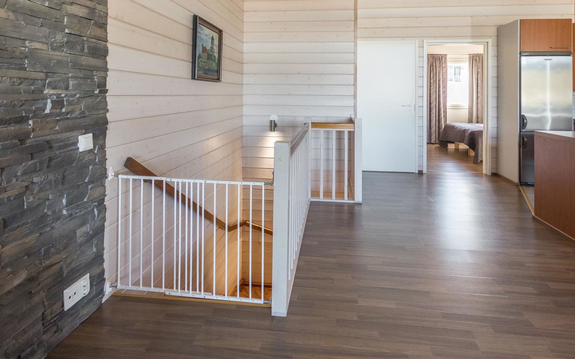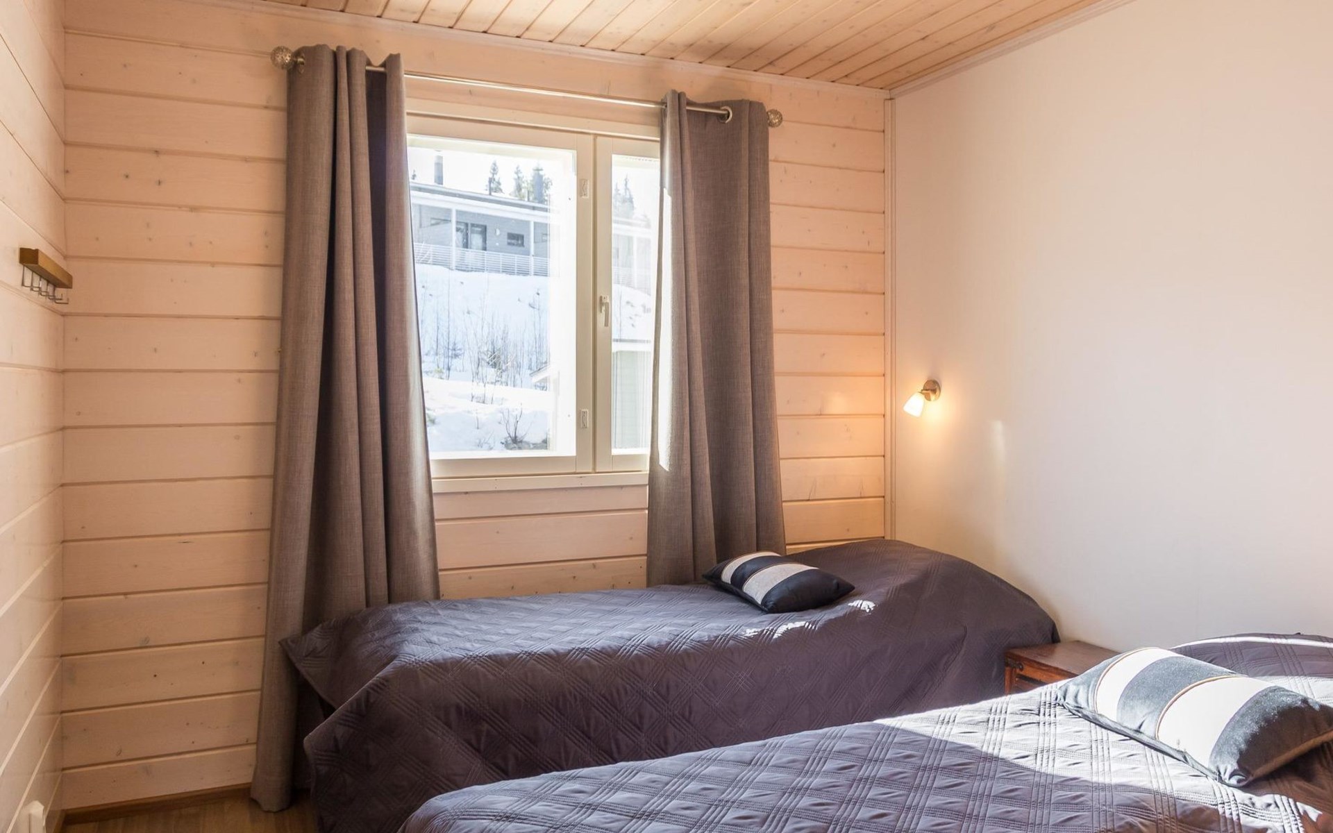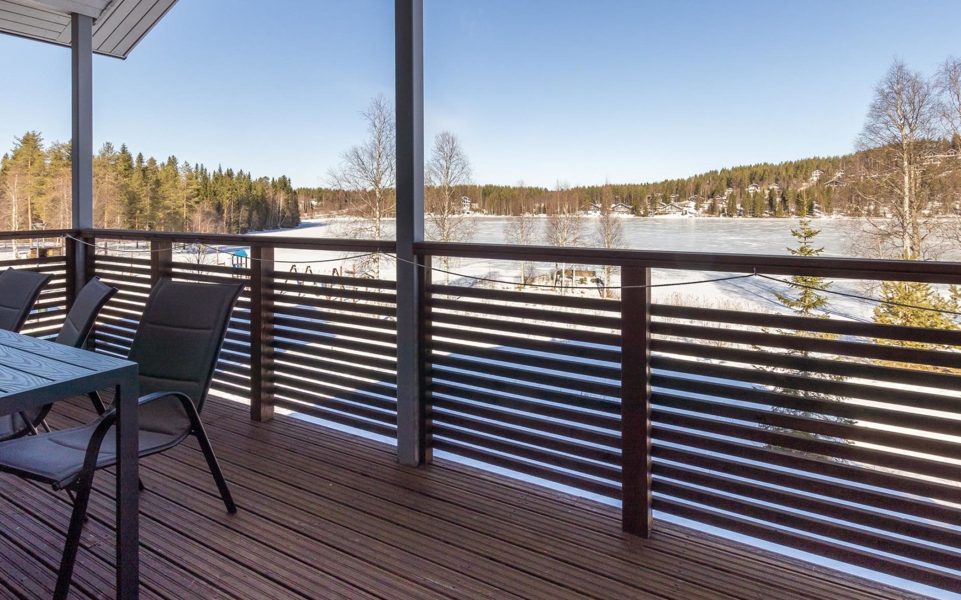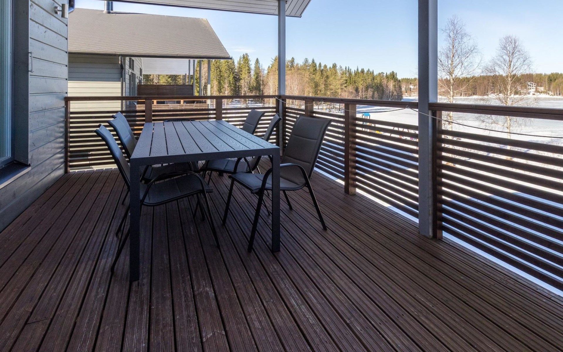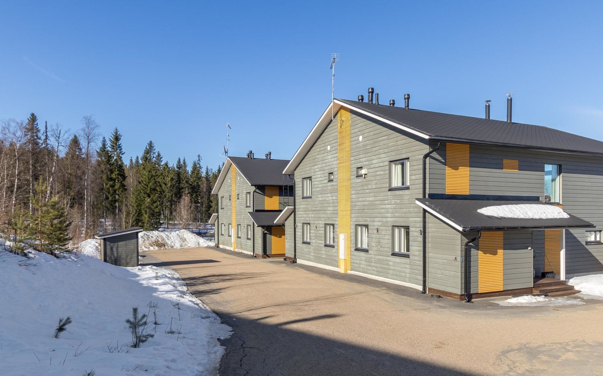 Doppelhaushälfte, im Tourismuszentrum Ukkohalla, Fläche 125 m2, für 10-14 Personen, Baujahr 2009. Räumlichkeiten auf 2 Etagen, im ersten Stock 2 Schlafzimmer, Wohnzimmer, Sauna, Duschbad/WC, Terrasse. Im zweiten Stock Küche, 1 Schlafzimmer, Duschbad/WC, Terrasse. Lagerung, Kamin. Blick auf den See Syväjärvi. 2 Schlafzimmern mit je 2 Betten, Doppelbett in einem Schlafzimmer, Schlafsofa und 2 Zusatzbetten im Wohnzimmer und in der Küche. Der Preis beinhaltet 1 Sack Brennholz, zusätzliches Holz vom Hausmeister (Euro 10/Sack). Ukkohalla: Tourismuszentrum am See Syväjärvi, Informationszentrum, Geschäft, Restaurant, Spa, Pistenzentrum, Schneemobilpisten, Skipisten, Programmservice, Strand (weitere Informationen unter www.ukkohalla.fi). Entfernung zu den Ukkohalla-Diensten 0,1 km. Flughafen Kajaani 86 km, Oulu 170 km, Helsinki 650 km, Bushaltestelle Hyrynsalmi 18 km, Bahnhof Kontiomäki 66 km. Haustiere nicht erlaubt, Blick auf den See Syväjärvi. Das Ferienhaus steht am Anreisetag ab 16.00 Uhr bis 12.00 Uhr am Abreisetag zur Verfügung. Die Endreinigung ist inbegriffen. ZUSÄTZLICHE GEBÜHR FÜR BETTWÄSCHE (€13/PERSON) WELCHE GEBUCHT WERDEN MÜSSEN.