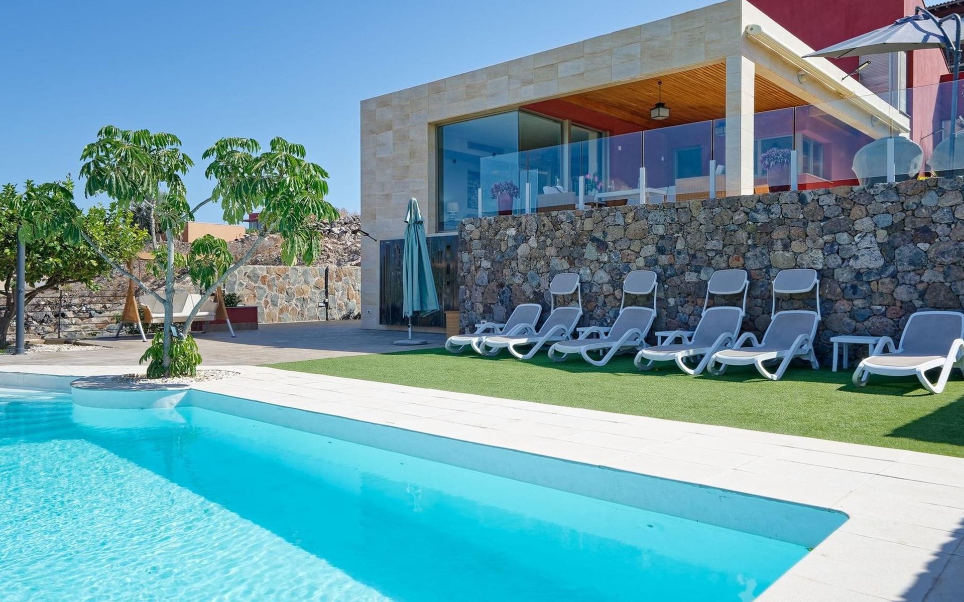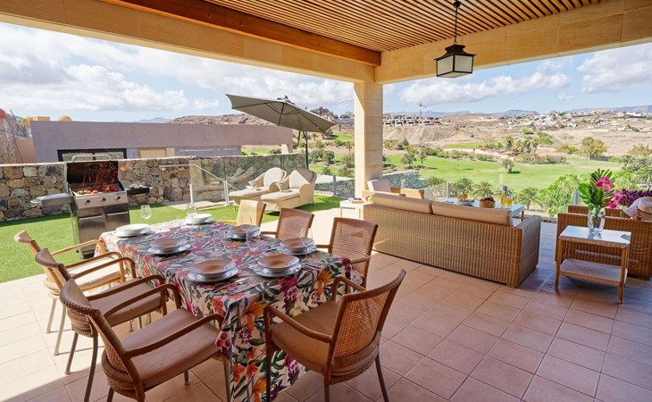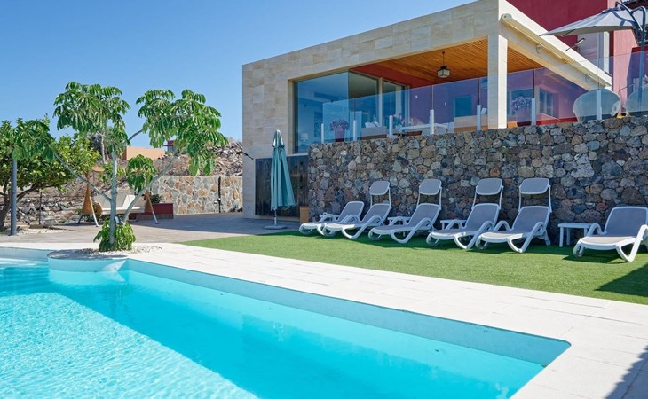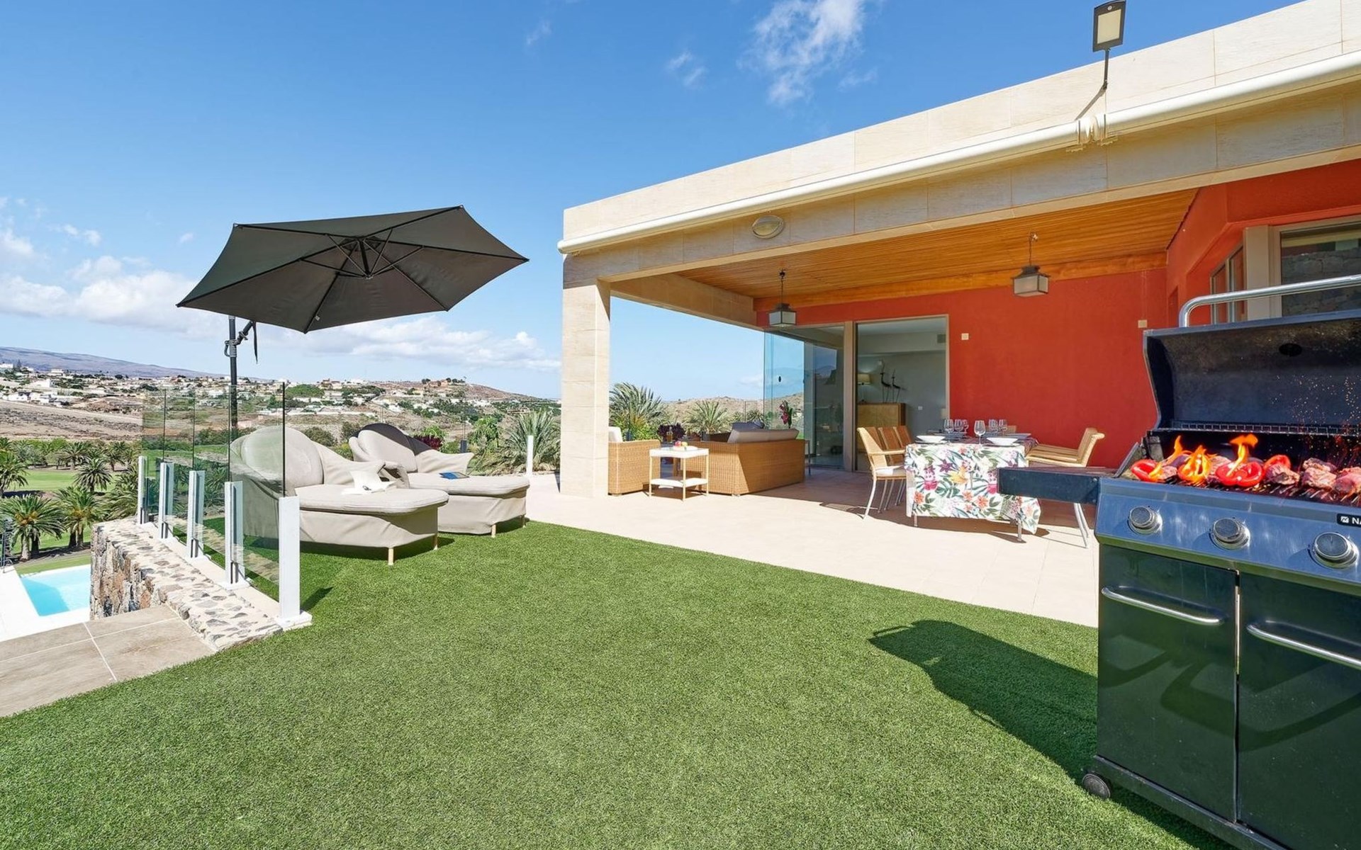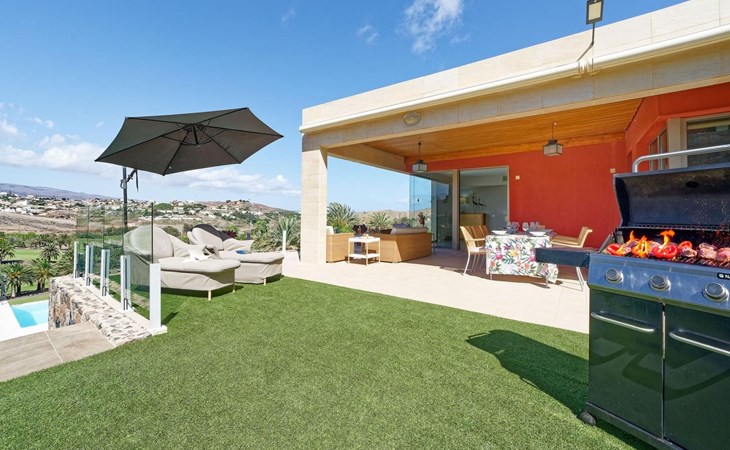 Moderne, luxuriöse Villa "Piedra Amarilla 10P", Baujahr 2007, renoviert im Jahre 2013. Im Ortszentrum von Salobre, am Ortsrand Maspalomas, ruhige, sonnige Lage in einem Wohnquartier. Zur Mitbenutzung: gepflegter Garten. Zur Alleinbenutzung: Garten, Schwimmbad eckig (8 x 3 m, 1 - 40 cm tief, saisonale Verfügbarkeit: 01.Jan. - 31.Dez.). Aussendusche, Sitzplatz. Im Hause: Wireless LAN, Klimaanlage. Parkplatz (für 3 Autos). Einkaufsgeschäft, Lebensmittelgeschäft, Supermarkt 100 m, Restaurant 600 m, Bushaltestelle "Las Crucitas" 19 km, Sandstrand "5000". Golfplatz (18 Loch) 150 m. Bitte beachten: Fahrzeug empfohlen. Geeignet für Familien, geeignet für Senioren Babyausstattung auf Anfrage. Der Besitzer akzeptiert keine Jugendgruppen.
