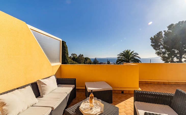 Residenz "Cadet Rousse", auf 3 Stockwerken. Am Ortsrand, 850 m vom Zentrum von Le Lavandou, ruhige, sonnige Lage am Hang, 1 km vom Meer, 1 km vom Strand. Zur Mitbenutzung: gepflegter terrassierter Garten. Treppenweg bis zum Haus. Einkaufsgeschäft 400 m, Lebensmittelgeschäft 850 m, Supermarkt 1 km, Restaurant, Bar 850 m, Bäckerei 800 m, Internet-Café 1 km, Bushaltestelle "Lavandou Gare routière" 500 m, Sandstrand "Lavandou" 1 km. Sporthafen 1.2 km, Segelschule 1.1 km, Tennis 1.5 km, Minigolf 1.5 km. Bitte beachten: Fahrzeug empfohlen. Die Schlüsselübergabe findet bei der Agentur Interhome in Le Lavandou statt.