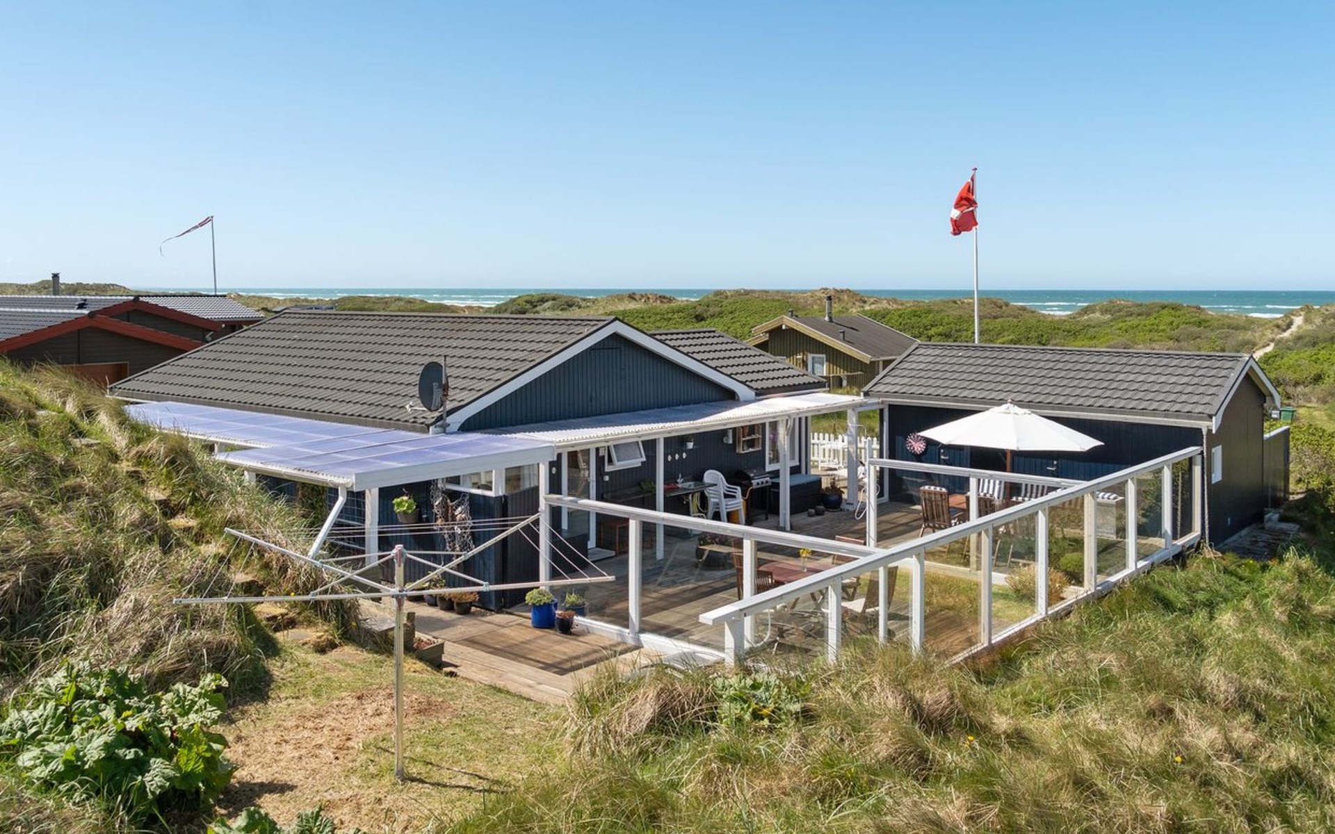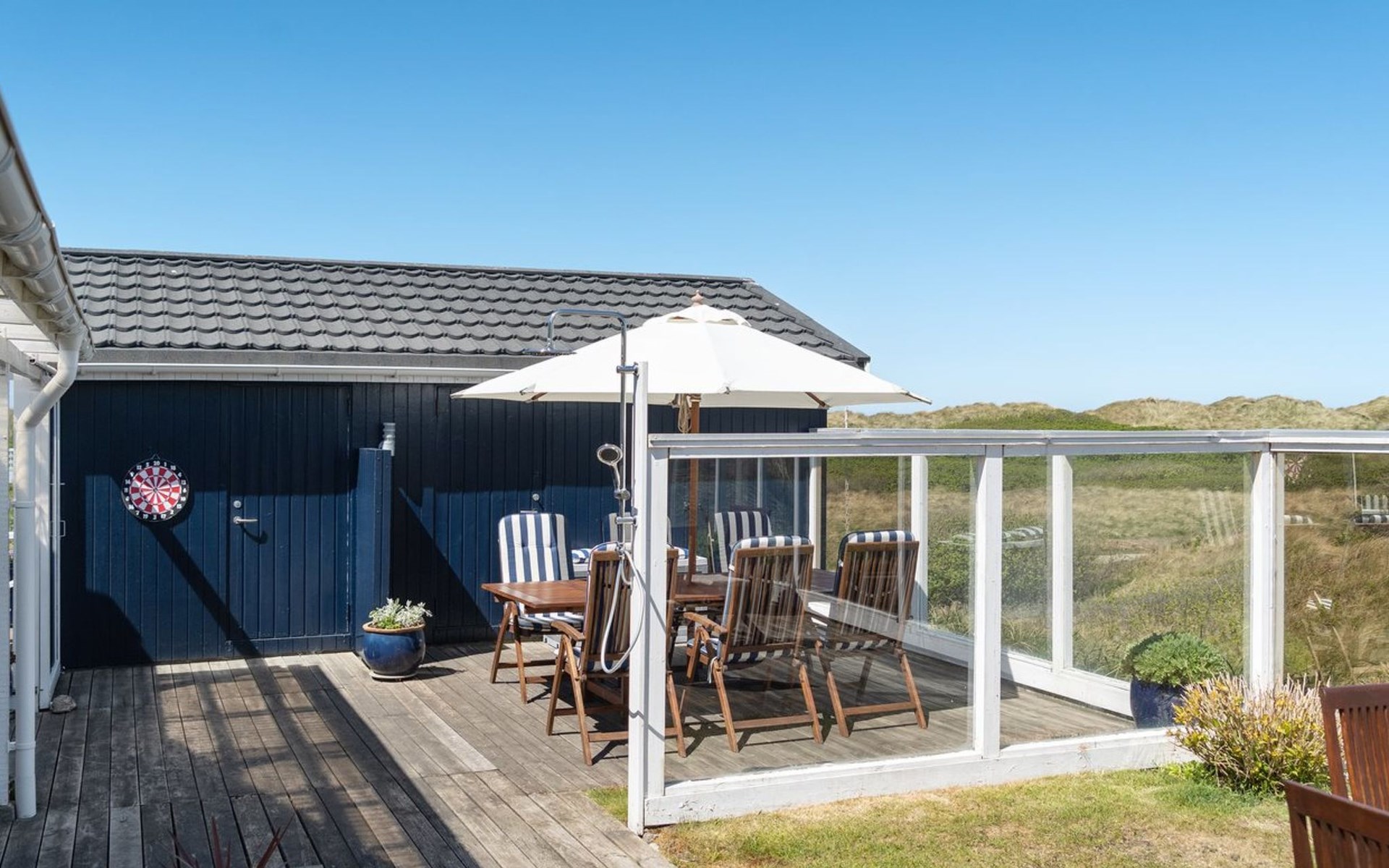 Einfamilienhaus, Baujahr 1946. 100 m vom Meer. Zur Alleinbenutzung: Grundstück 800 m2. Aussendusche, Terrasse (100 m2), Grill. Im Hause: Waschmaschine, Wäschetrockner. Parkplatz beim Haus. Lebensmittelgeschäft 900 m. Der Besitzer akzeptiert keine Jugendgruppen.