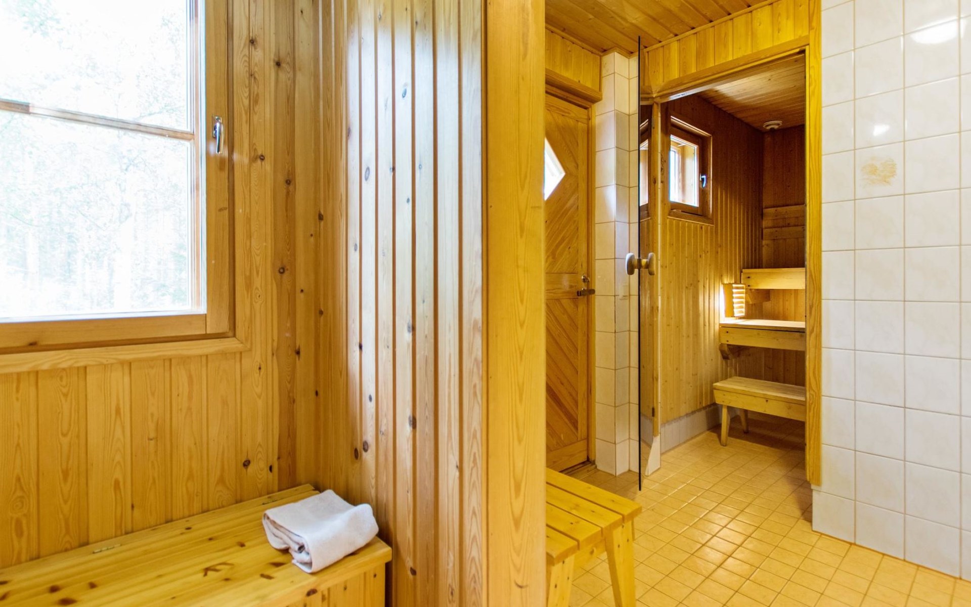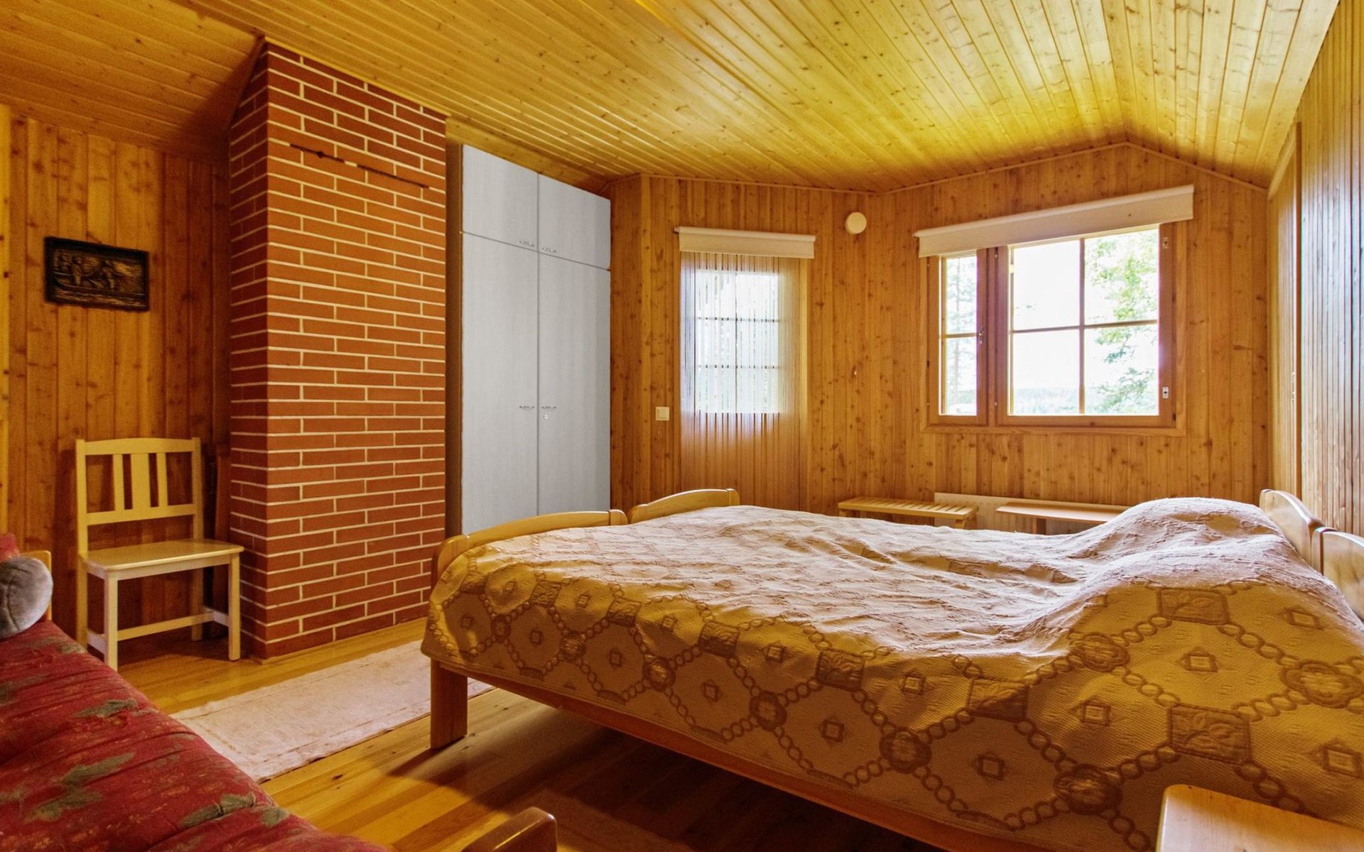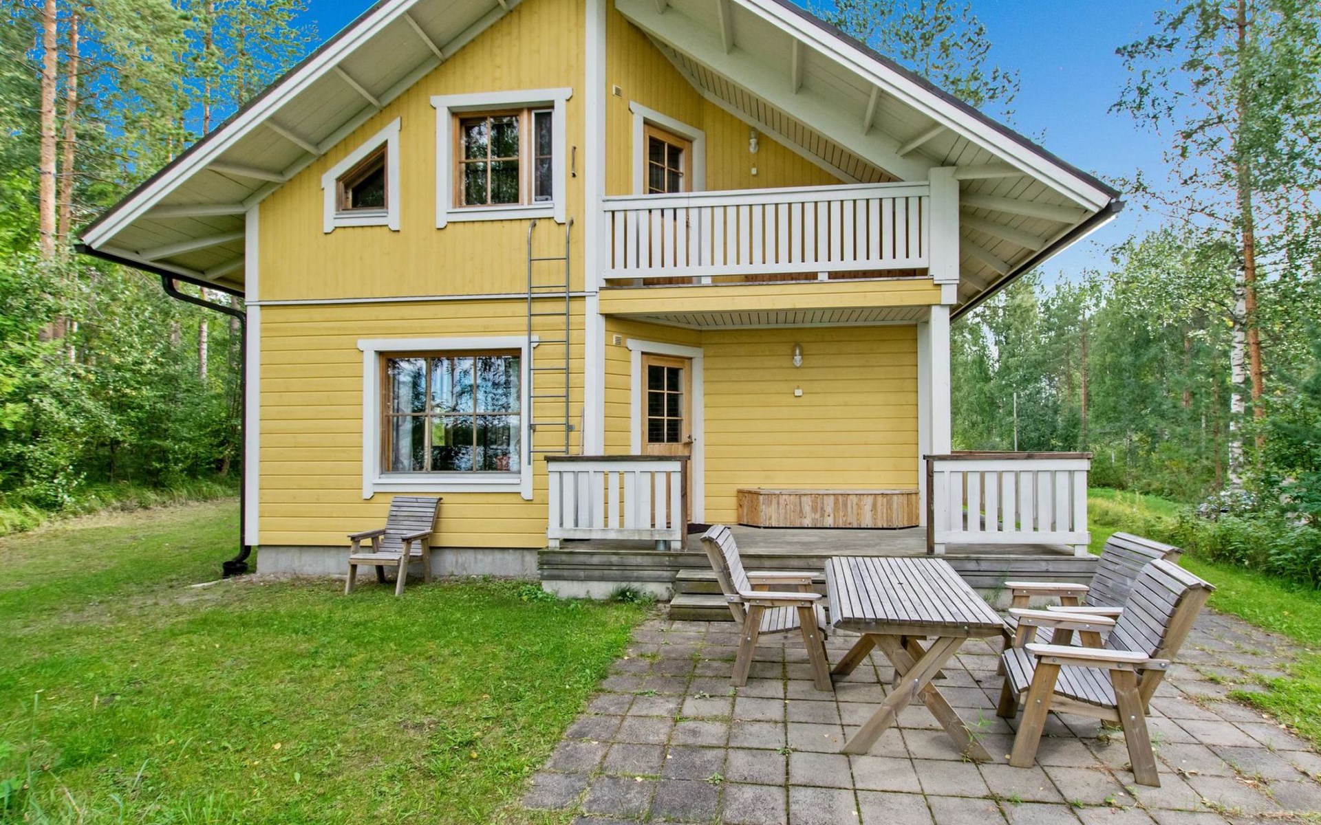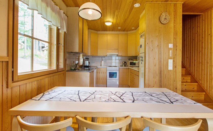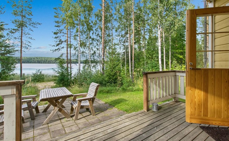 82 km nordwestlich von Jyväskylä-Stadt. Iso-Löytänäjärvi-See 30 m (Länge 5 km, Breite 1 km), Sandboden, eigenes Ruderboot. Blockferienhaus, Baujahr 2001, Wohnküche, 2 Zustellbetten (Schlafsofa), Schlafzimmer: Doppelbett, Waschraum, Ankleideraum, Sauna, Terrasse. Im Obergeschoss, Schlafzimmer 1: 2 Betten, Schlafzimmer 2: Etagenbett, Balkon. Der Eigentümer vermietet, gegen Aufpreis von EURO 150/eine Verwendung, Sauna am See und vorgewärmten Sprudelbad, Entfernung ca. 200 m vom Ferienhaus. Seesauna und Sprudelbad am See können gemietet werden, wenn die Kunden des anderes Ferienhauses diese noch nicht gemietet haben. Das Ferienhaus befindet sich am leichten Hang, Lagerraum, Feuerstelle in der Nähe des Sees. Grillhütte zur Mitbenutzung, 3 km. Zentralstaubsauger. Für die drei Mietferienhäuser des Eigentümers können insgesamt 2 "SUP-boards" gemietet werden, EURO 10/Stück/Tag. Skizentrum Paavonrinteet 19 km, Kurhotel Summassaari 22 km, Golfplatz Peuranka Golf 65 km, Nationalpark Pyhä-Häkki 40 km, Naturschutzgebiet 8 km, Puuhapuisto Veijari-Park und Fischerdorf 10 km, Automobilmuseum Wanhat Wehkeet 25 km. Verpflegungsdienst verfügbar.