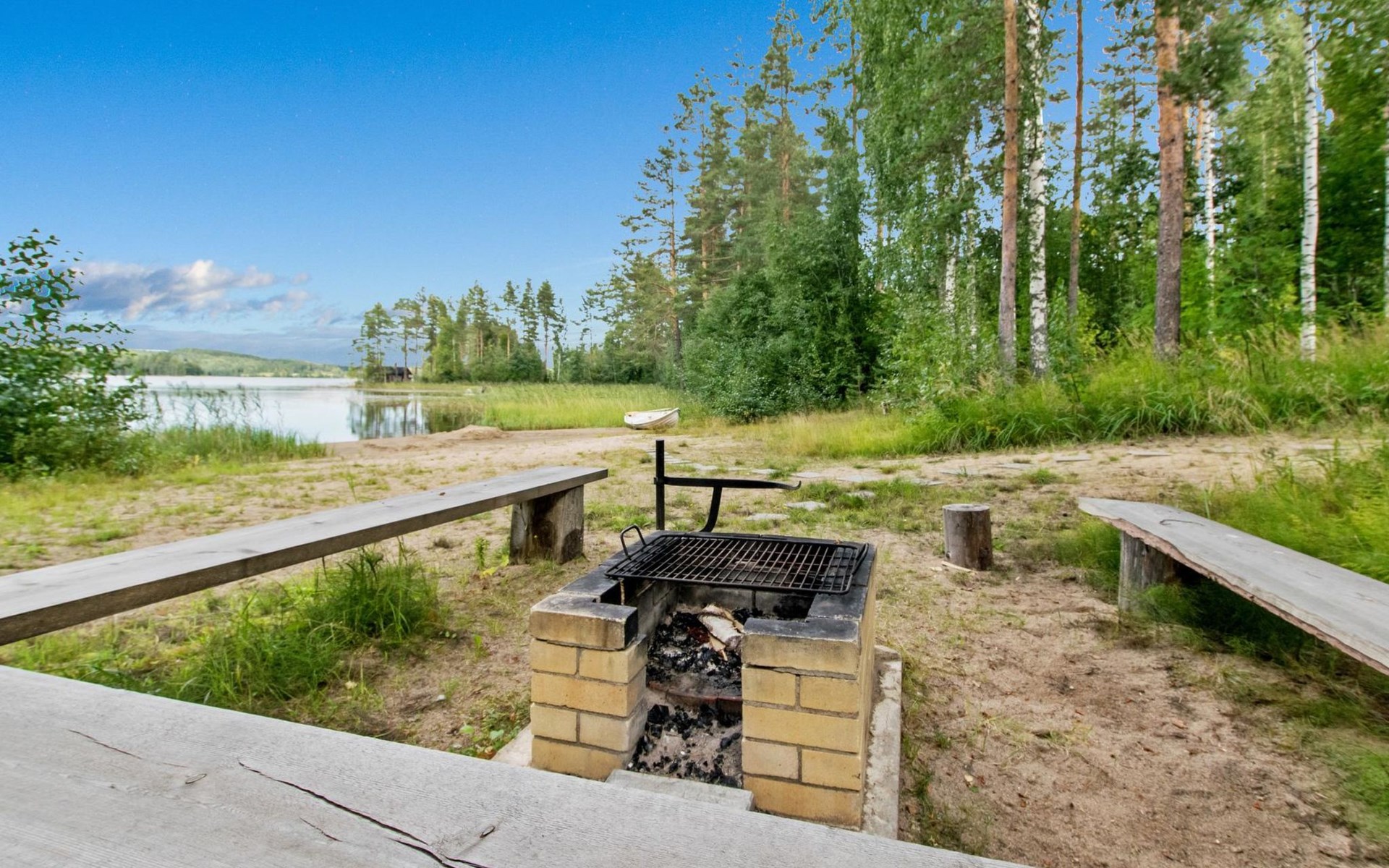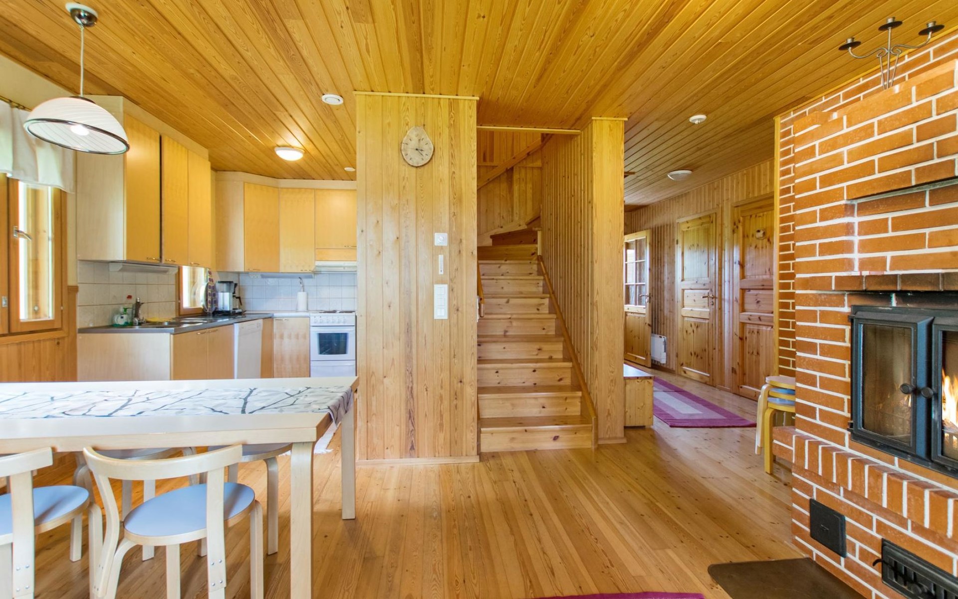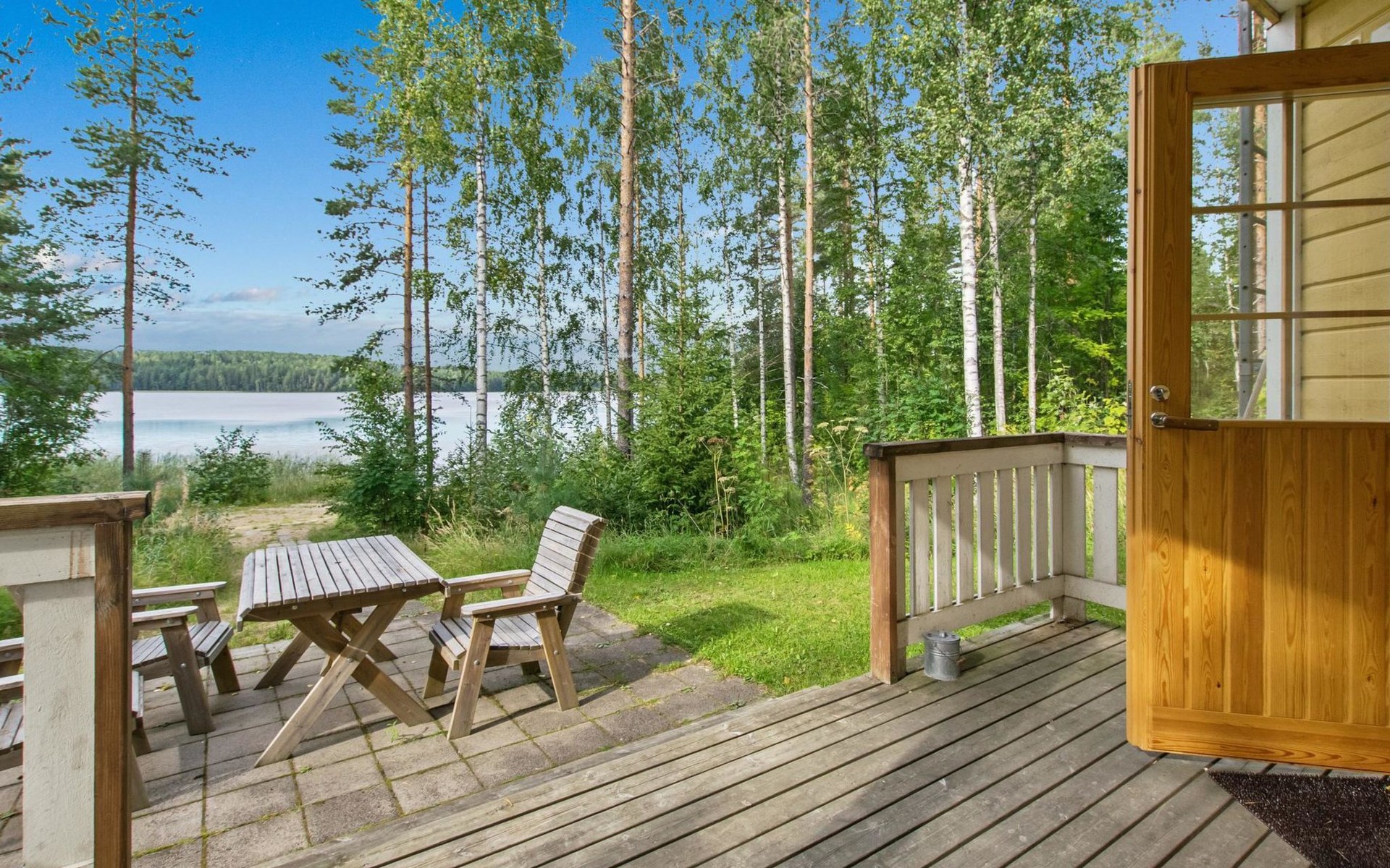 82 km nordwestlich von Jyväskylä-Stadt. Iso-Löytänäjärvi-See 30 m (Länge 5 km, Breite 1 km), Sandboden, eigenes Ruderboot. Blockferienhaus, Baujahr 2001, Wohnküche, 2 Zustellbetten (Schlafsofa), Schlafzimmer: Doppelbett, Waschraum, Ankleideraum, Sauna, Terrasse. Im Obergeschoss, Schlafzimmer 1: 2 Betten, Schlafzimmer 2: Etagenbett, Balkon. Der Eigentümer vermietet, gegen Aufpreis von EURO 150/eine Verwendung, Sauna am See und vorgewärmten Sprudelbad, Entfernung ca. 200 m vom Ferienhaus. Seesauna und Sprudelbad am See können gemietet werden, wenn die Kunden des anderes Ferienhauses diese noch nicht gemietet haben. Das Ferienhaus befindet sich am leichten Hang, Lagerraum, Feuerstelle in der Nähe des Sees. Grillhütte zur Mitbenutzung, 3 km. Zentralstaubsauger. Für die drei Mietferienhäuser des Eigentümers können insgesamt 2 "SUP-boards" gemietet werden, EURO 10/Stück/Tag. Skizentrum Paavonrinteet 19 km, Kurhotel Summassaari 22 km, Golfplatz Peuranka Golf 65 km, Nationalpark Pyhä-Häkki 40 km, Naturschutzgebiet 8 km, Puuhapuisto Veijari-Park und Fischerdorf 10 km, Automobilmuseum Wanhat Wehkeet 25 km. Verpflegungsdienst verfügbar.