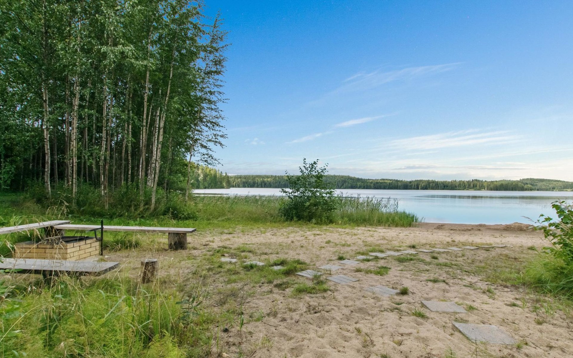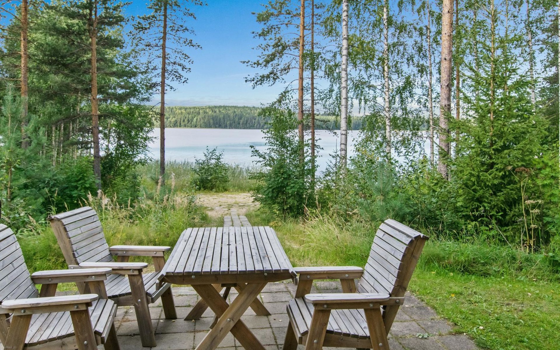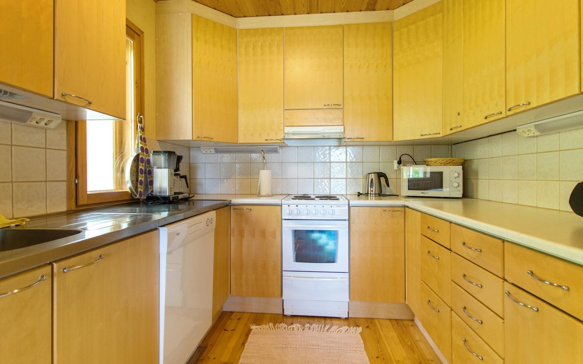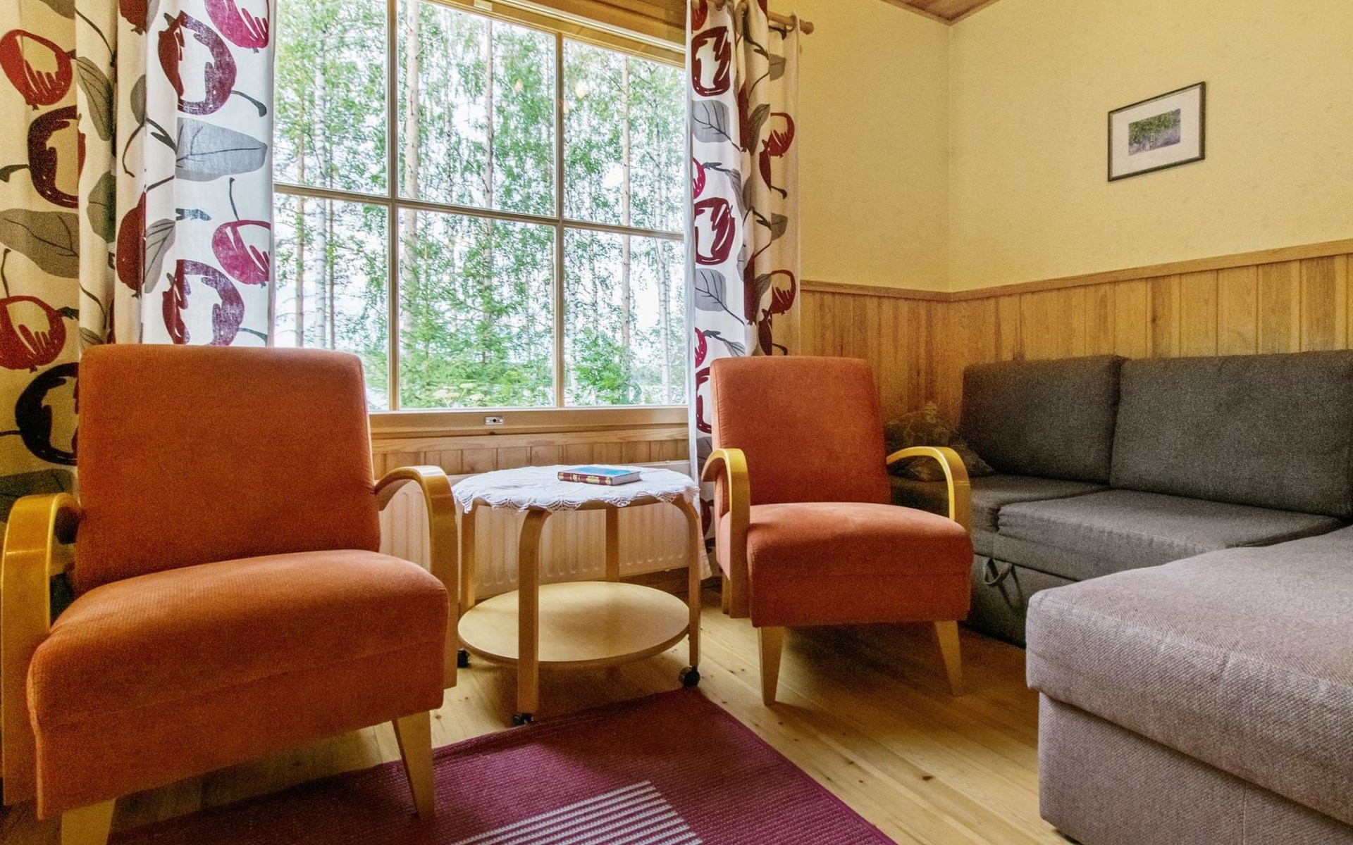 82 km nordwestlich von Jyväskylä-Stadt. Iso-Löytänäjärvi-See 30 m (Länge 5 km, Breite 1 km), Sandboden, eigenes Ruderboot. Blockferienhaus, Baujahr 2001, Wohnküche, 2 Zustellbetten (Schlafsofa), Schlafzimmer: Doppelbett, Waschraum, Ankleideraum, Sauna, Terrasse. Im Obergeschoss, Schlafzimmer 1: 2 Betten, Schlafzimmer 2: Etagenbett, Balkon. Der Eigentümer vermietet, gegen Aufpreis von EURO 150/eine Verwendung, Sauna am See und vorgewärmten Sprudelbad, Entfernung ca. 200 m vom Ferienhaus. Seesauna und Sprudelbad am See können gemietet werden, wenn die Kunden des anderes Ferienhauses diese noch nicht gemietet haben. Das Ferienhaus befindet sich am leichten Hang, Lagerraum, Feuerstelle in der Nähe des Sees. Grillhütte zur Mitbenutzung, 3 km. Zentralstaubsauger. Für die drei Mietferienhäuser des Eigentümers können insgesamt 2 "SUP-boards" gemietet werden, EURO 10/Stück/Tag. Skizentrum Paavonrinteet 19 km, Kurhotel Summassaari 22 km, Golfplatz Peuranka Golf 65 km, Nationalpark Pyhä-Häkki 40 km, Naturschutzgebiet 8 km, Puuhapuisto Veijari-Park und Fischerdorf 10 km, Automobilmuseum Wanhat Wehkeet 25 km. Verpflegungsdienst verfügbar.