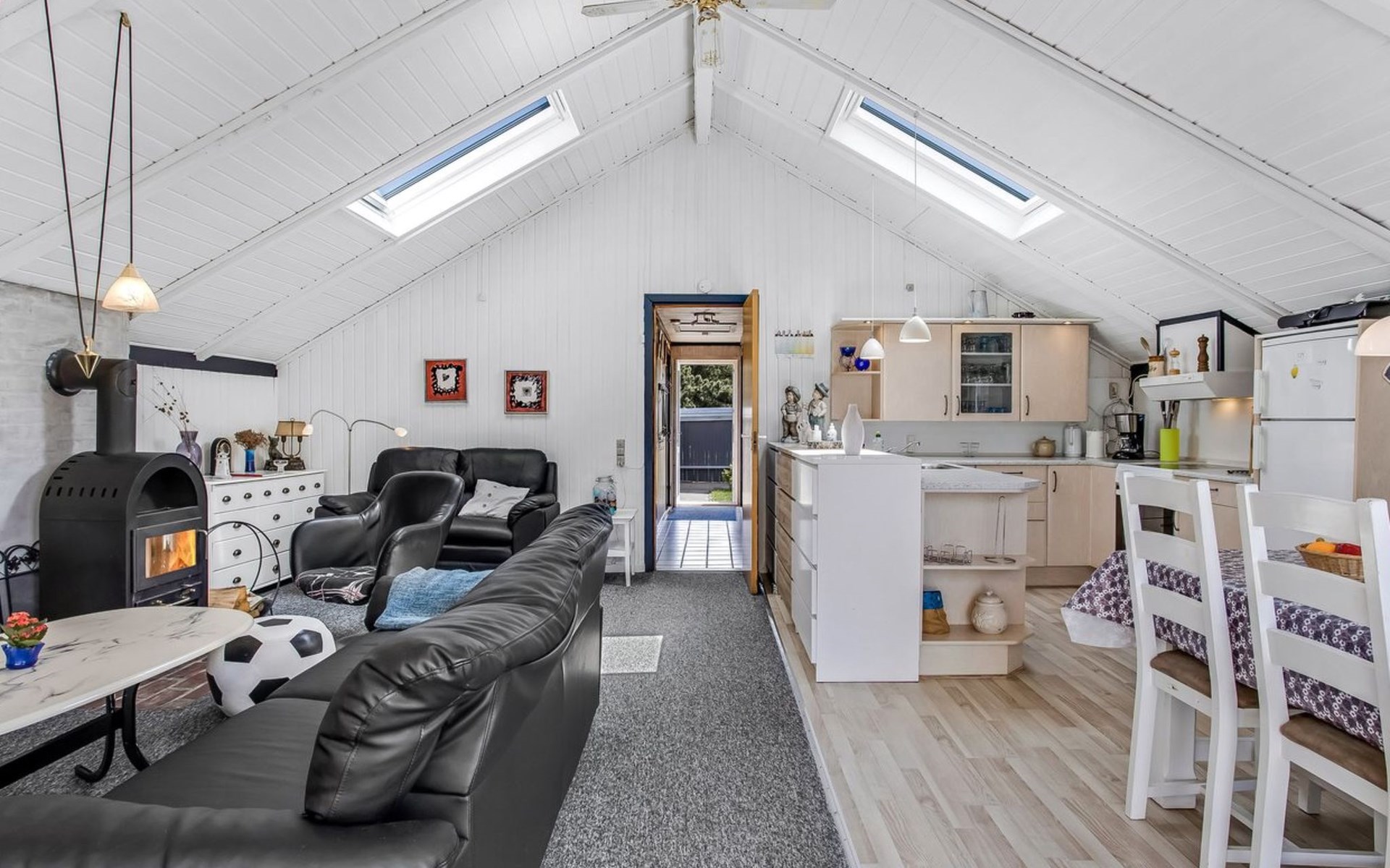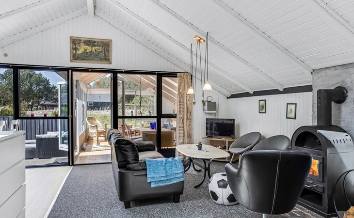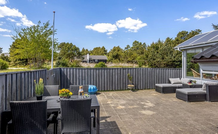 Einfamilienhaus, Baujahr 1974. 800 m vom Meer. Zur Alleinbenutzung: naturbelassenes Grundstück 1'500 m2. Terrasse (75 m2), Kinderspielplatz (Schaukel). Im Hause: Sauna, Waschmaschine, Wäschetrockner. Parkplatz beim Haus. Lebensmittelgeschäft 500 m. Der Besitzer akzeptiert keine Jugendgruppen.