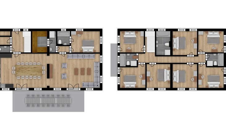 Dieses große Ferienhaus ist die perfekte Gruppenunterkunft für bis zu 16 Personen. Das freistehende Chalet hat 8 Schlafzimmer und 4 Badezimmer. Das Ferienhaus hat eine Fläche von ca. 260 m2.