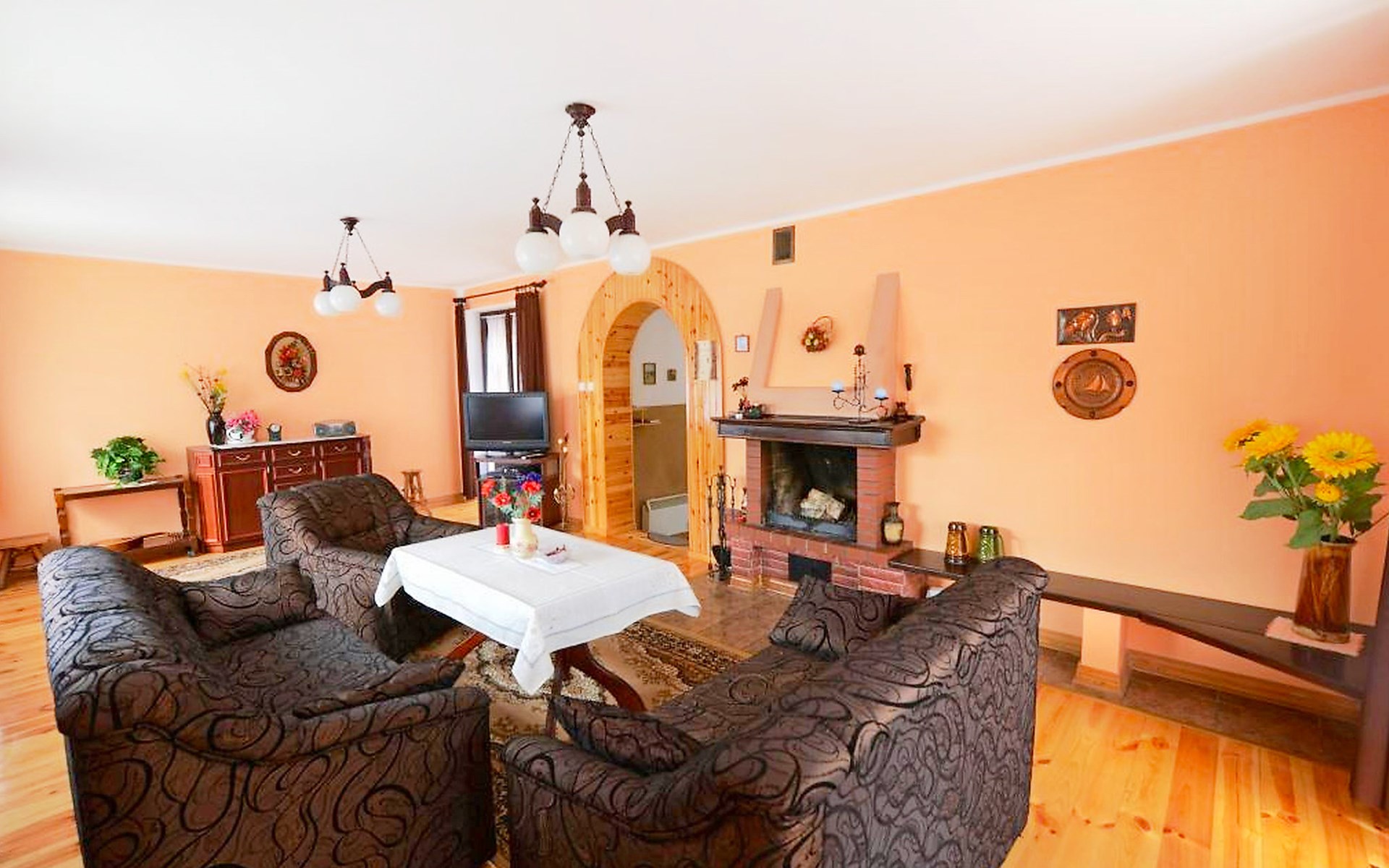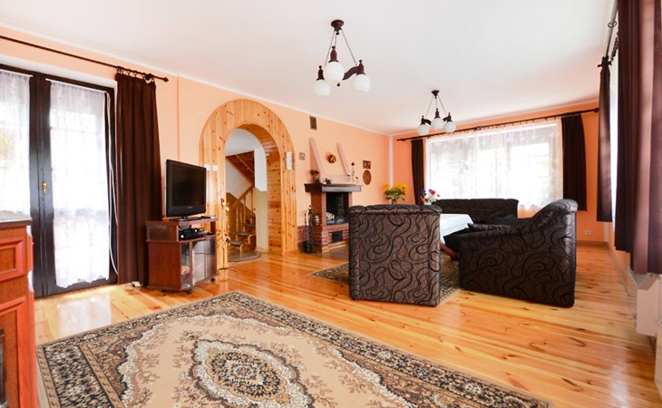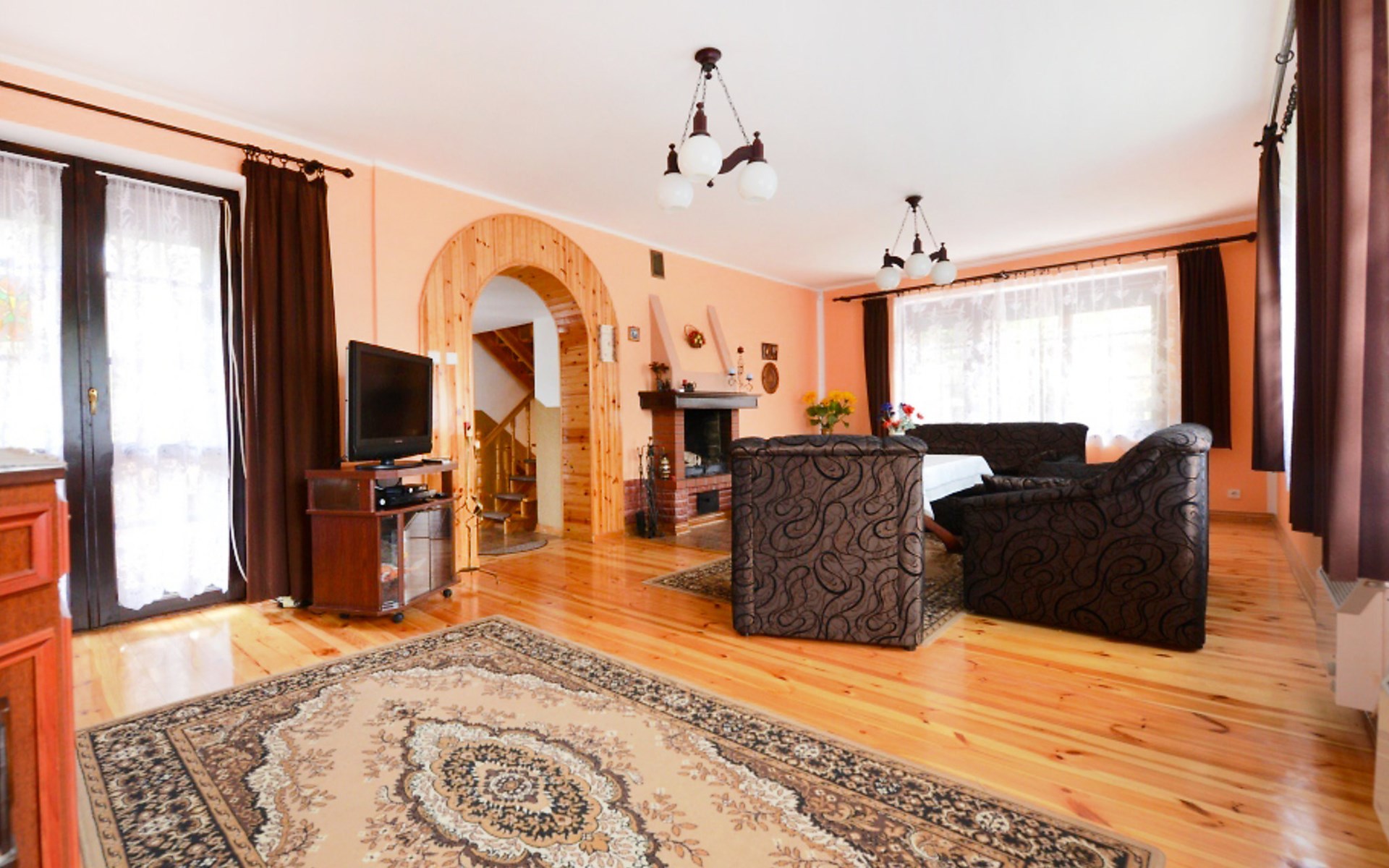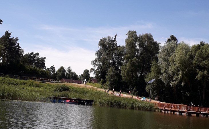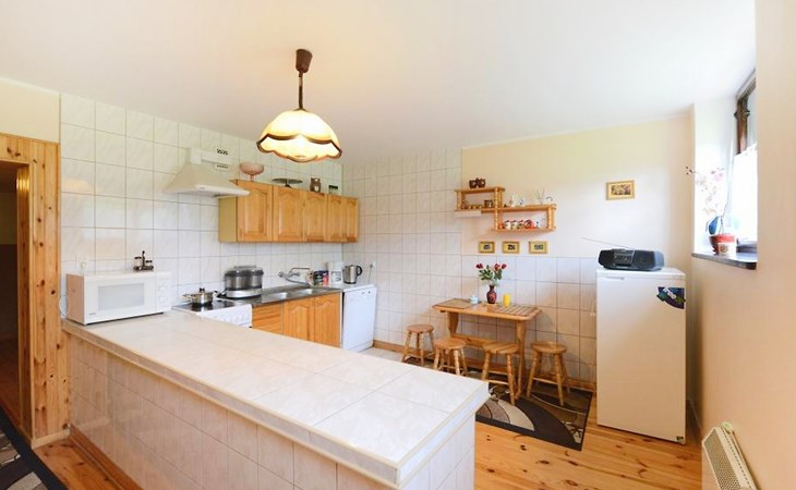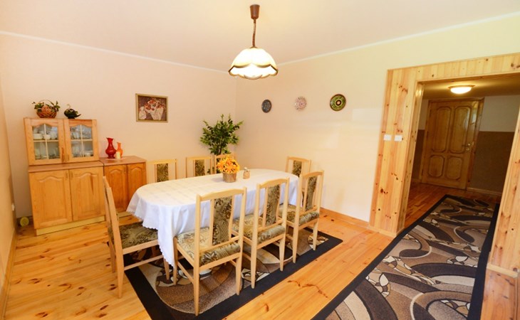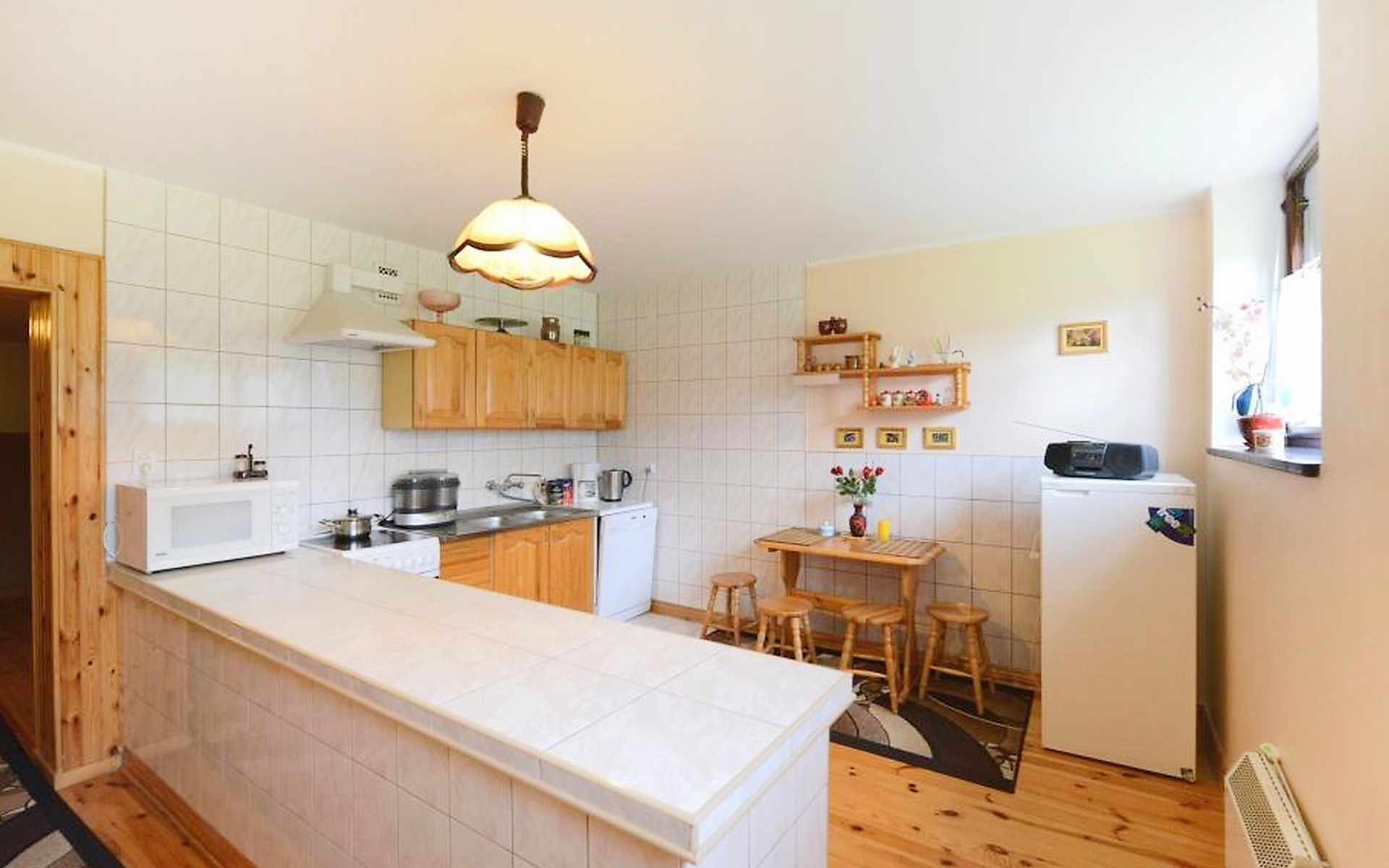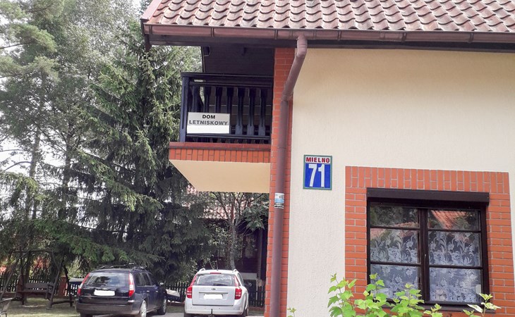 Mielno 13 km von Grunwaldu: Einfamilienhaus "Dom pod Sosnami". 100 m vom Waldrand, 50 m vom See. Zur Alleinbenutzung: Grundstück 800 m2 (eingezäunt). Terrasse, Gartenmöbel, Grill, Feuerstelle (Schaukel). Im Hause: Waschmaschine. Zur Verfügung: Kanu. Zufahrt bis zum Haus. Parkplatz beim Haus. Einkaufsgeschäft 5 km, Supermarkt 14 km, Bar, Café 50 m, Bushaltestelle 11 km. Radweg 200 m. Boule-Spiel. Sand- und Grasstrand 50 m. WICHTIG: Kaution 700 PLN.