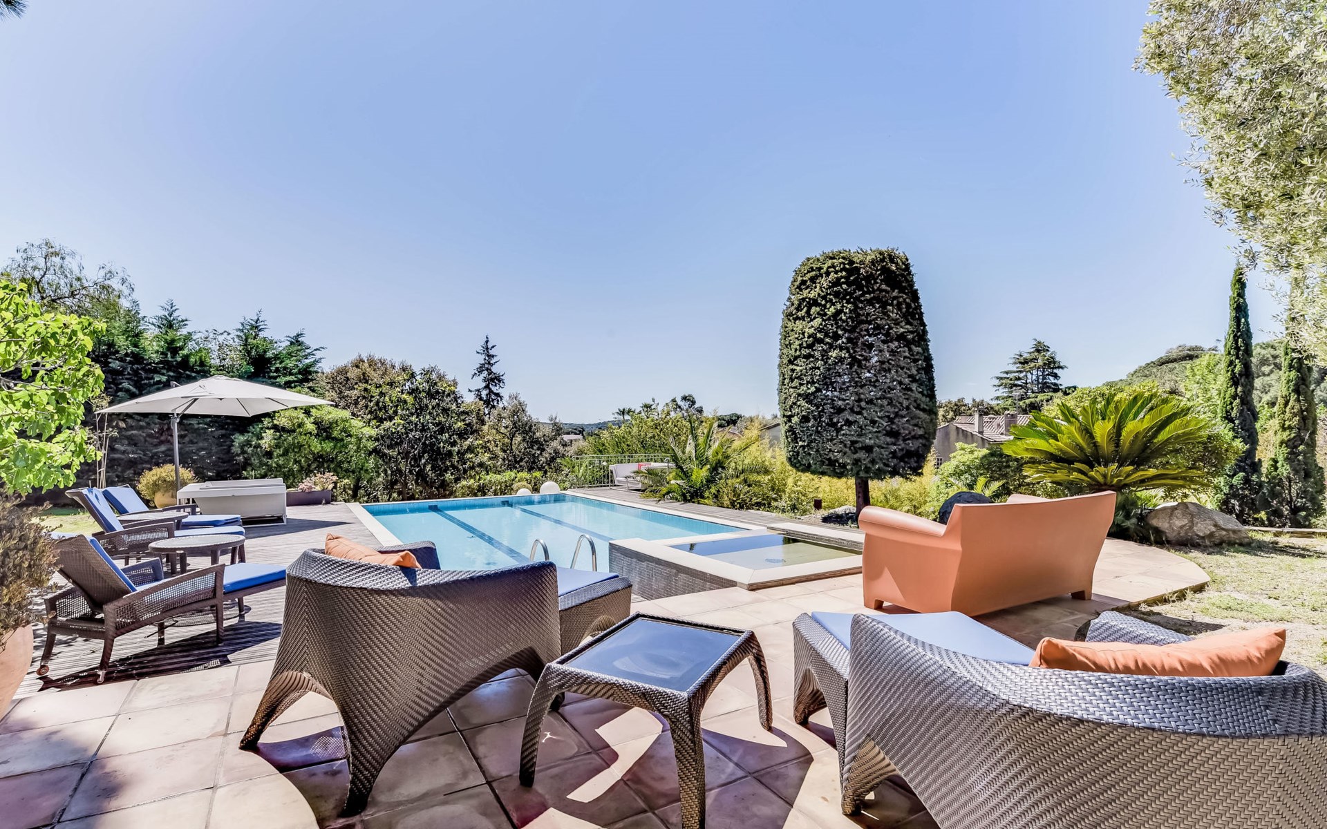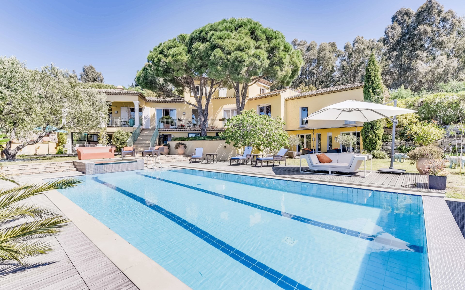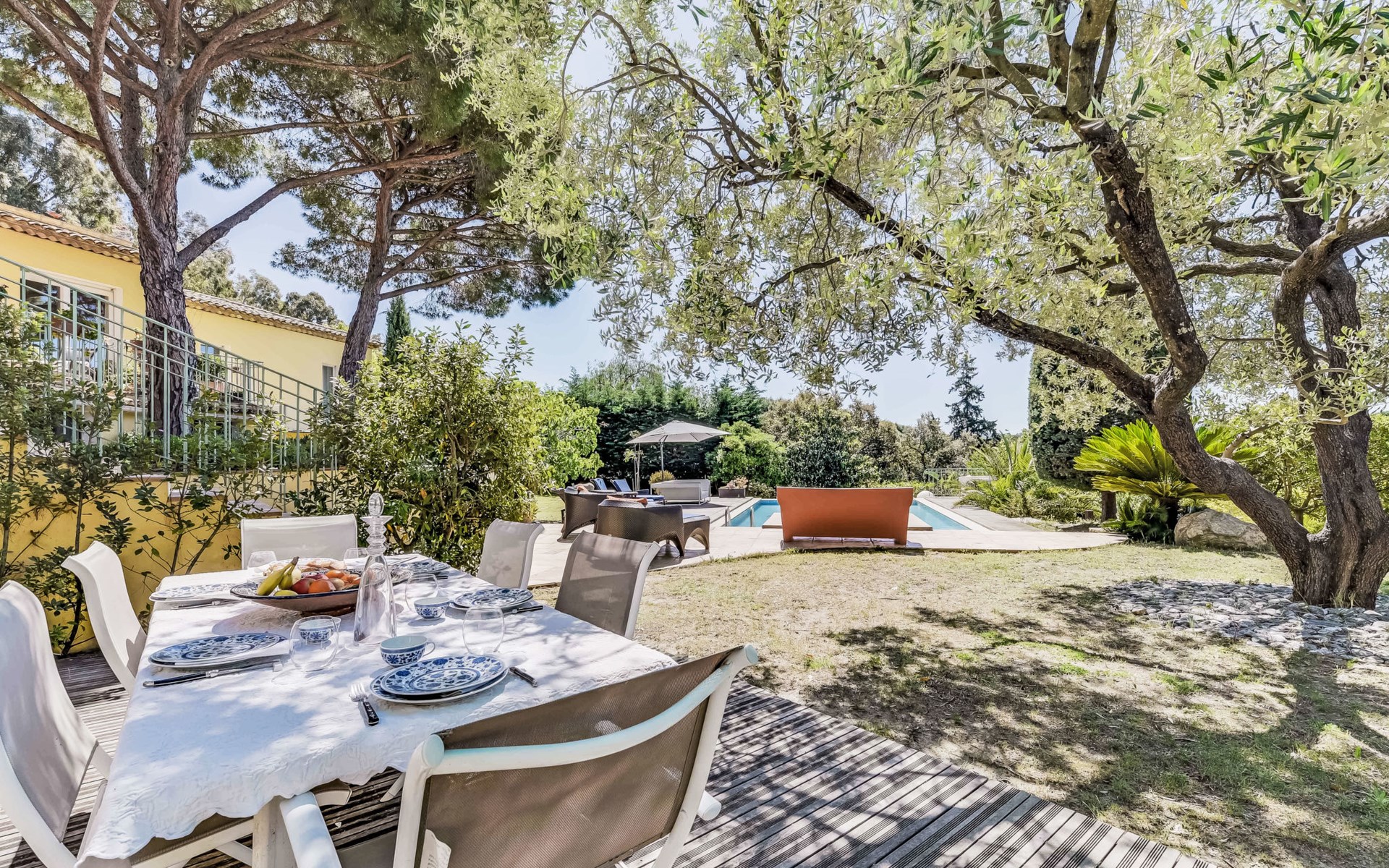 Ramatuelle 6 km von Saint-Tropez: Schönes Zweifamilienhaus "Villa La Romane", auf 2 Stockwerken. Ausserhalb des Ortes, 6 km vom Zentrum von Saint-Tropez, in einem Wohnquartier, 800 m vom Meer. Zur Alleinbenutzung: gepflegter Garten 1'000 m2, Schwimmbad (11 x 6 m, 180 cm tief, saisonale Verfügbarkeit: 01.Mai. - 30.Sep.). Einkaufsgeschäft 6 km, Lebensmittelgeschäft 6 km, Supermarkt 14 km, Restaurant 800 m, Sandstrand "Plages de Pampelonne" 800 m. Sporthafen 6 km, Golfplatz (18 Loch) 18 km, Segelschule 6 km, Tennis 4.5 km. Nahe gelegene Sehenswürdigkeiten: Plage Club 55 1 km, Plage Nikki beach 3 km, Port Grimaud 15 km, Nice 127 km, Monaco 148 km. Bekannte Seen in der Umgebung sind gut erreichbar: Lac de Sainte Croix 95 km. Wandergebiete: Massif de l'Esterel 50 km. Bitte beachten: Fahrzeug empfohlen. Die Schlüsselübergabe findet bei der Agentur Interhome in Gassin statt, 7 km. Besitzer wohnt in separatem Hausteil. Tiere in der Umgebung.