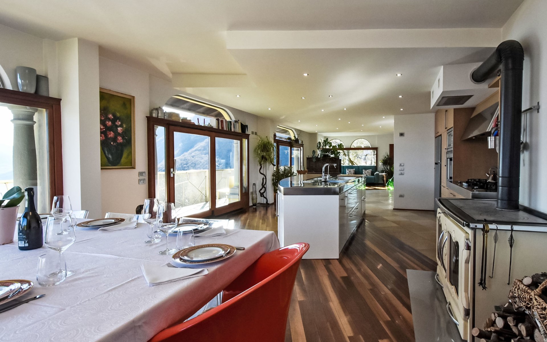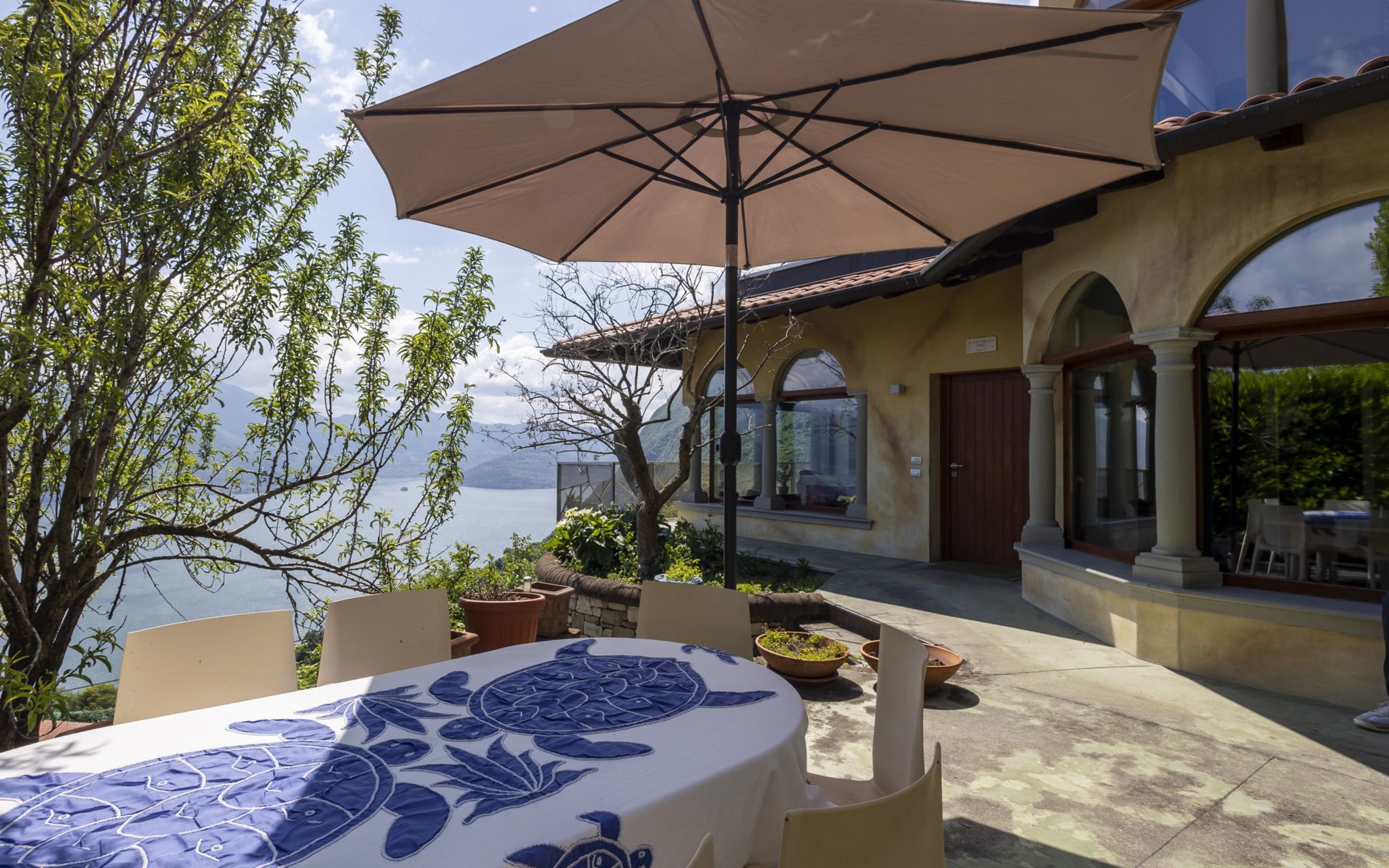 Schönes, freistehendes, komfortables Zweifamilienhaus "Xino Terrace View", 600 m.ü.M., auf 2 Stockwerken, umgeben von Bäumen. Im Weiler Xino, 2 km vom Zentrum von Fonteno, 6 km vom Zentrum von Riva di Solto, ruhige, sonnige Lage am Hang, im Villenviertel, 6 km vom See, Richtung Osten. Zur Alleinbenutzung: terrassierter Garten (eingezäunt) mit Bäumen, Liegewiese. Im Hause: Einstellraum für Fahrräder. Parkplatz (für 2 Autos) beim Haus, öffentliche Parkplätze auf der Strasse. Supermarkt 2 km, Restaurant, Bar 500 m, Bushaltestelle 1 km, Fähre "Riva di Solto" 6 km, Thermalbad "Boario Terme" 28 km. Nahe gelegene Sehenswürdigkeiten: Lovere 11 km, Sarnico 25 km, Franciacorta (DOCG wine region) 30 km, Iseo 35 km, Bergamo 41 km, Milano 90 km. Bitte beachten: Fahrzeug empfohlen.