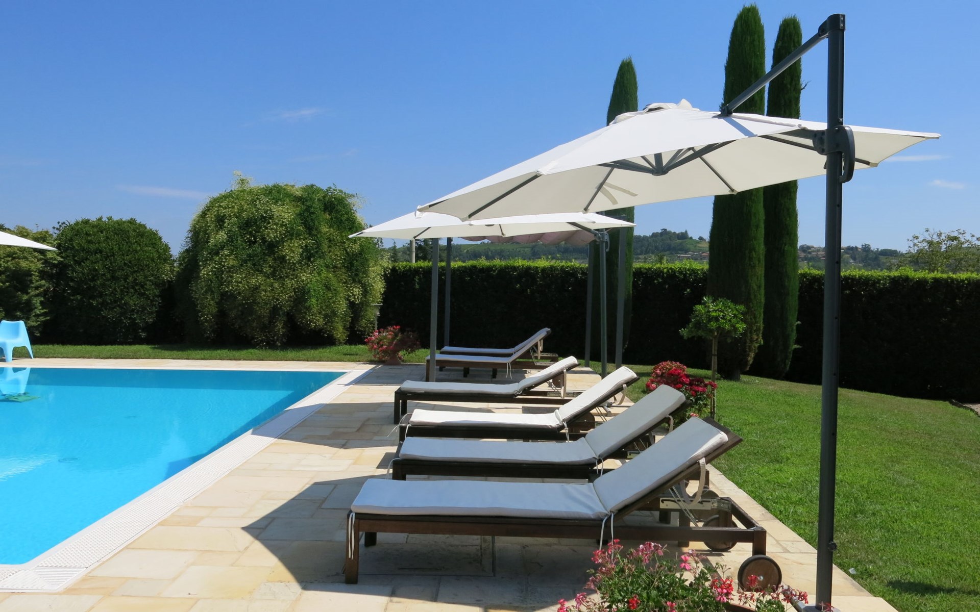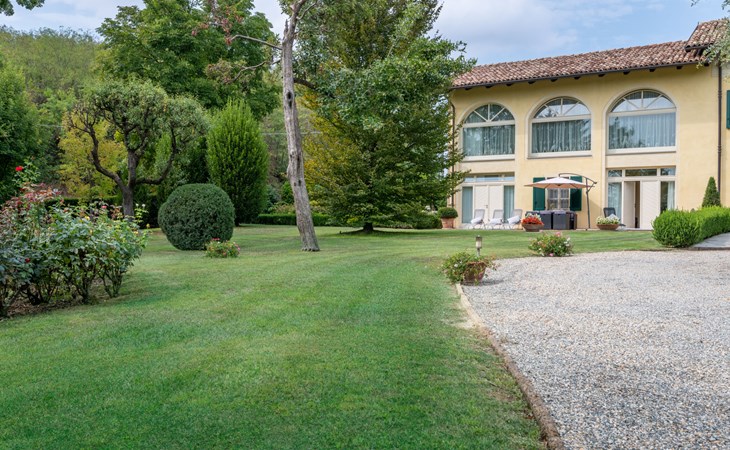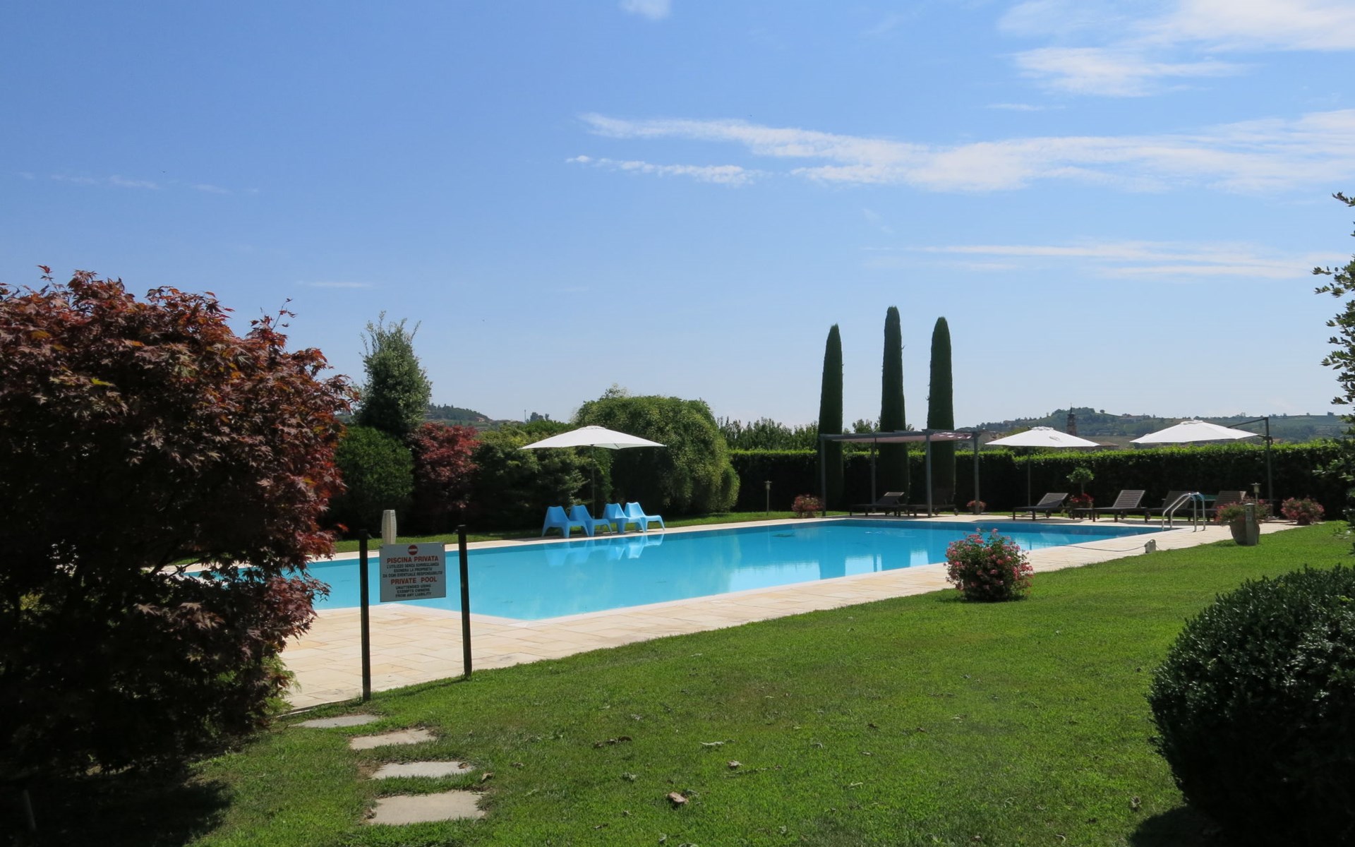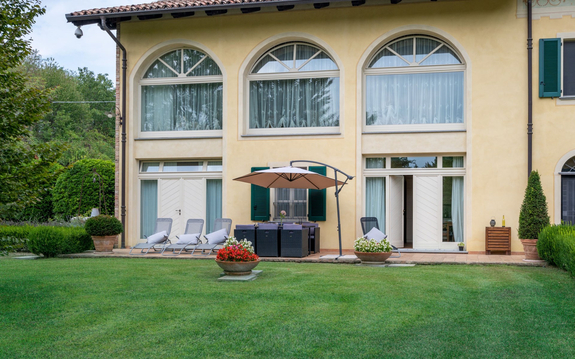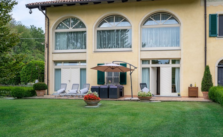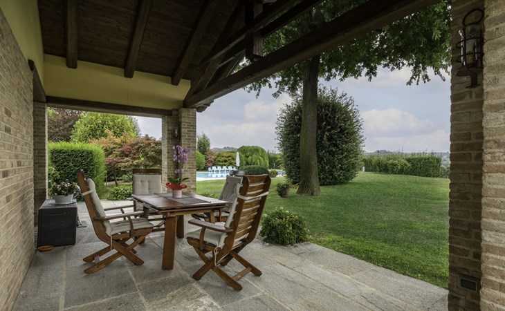 Sehr komfortables Landhaus "Villa Carlotta", auf 3 Stockwerken, einseitig angebaut. 1.4 km vom Zentrum von Costigliole d'Asti, am Ortsrand, 15 km vom Zentrum von Asti, 20 km vom Zentrum von Alba, alleinstehende, sonnige, erhöhte Lage. Zur Mitbenutzung: Grundstück 7'000 m2 (eingezäunt), gepflegter Garten mit Rasen und Bäumen. Zur Alleinbenutzung: Schwimmbad (18 x 9 m, 110 - 220 cm tief, saisonale Verfügbarkeit: 05.Apr. - 15.Okt.) mit Salzelektrolyse-Reinigungssystem. Aussendusche, Poolpflege durch den Besitzer/Gärtner. Im Hause: Fitnessraum. Parkplatz beim Haus auf dem Grundstück. Supermarkt 700 m, Bushaltestelle 3.5 km, Bahnstation "Asti" 15 km. Besitzer wohnt in separatem Hausteil.
