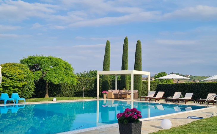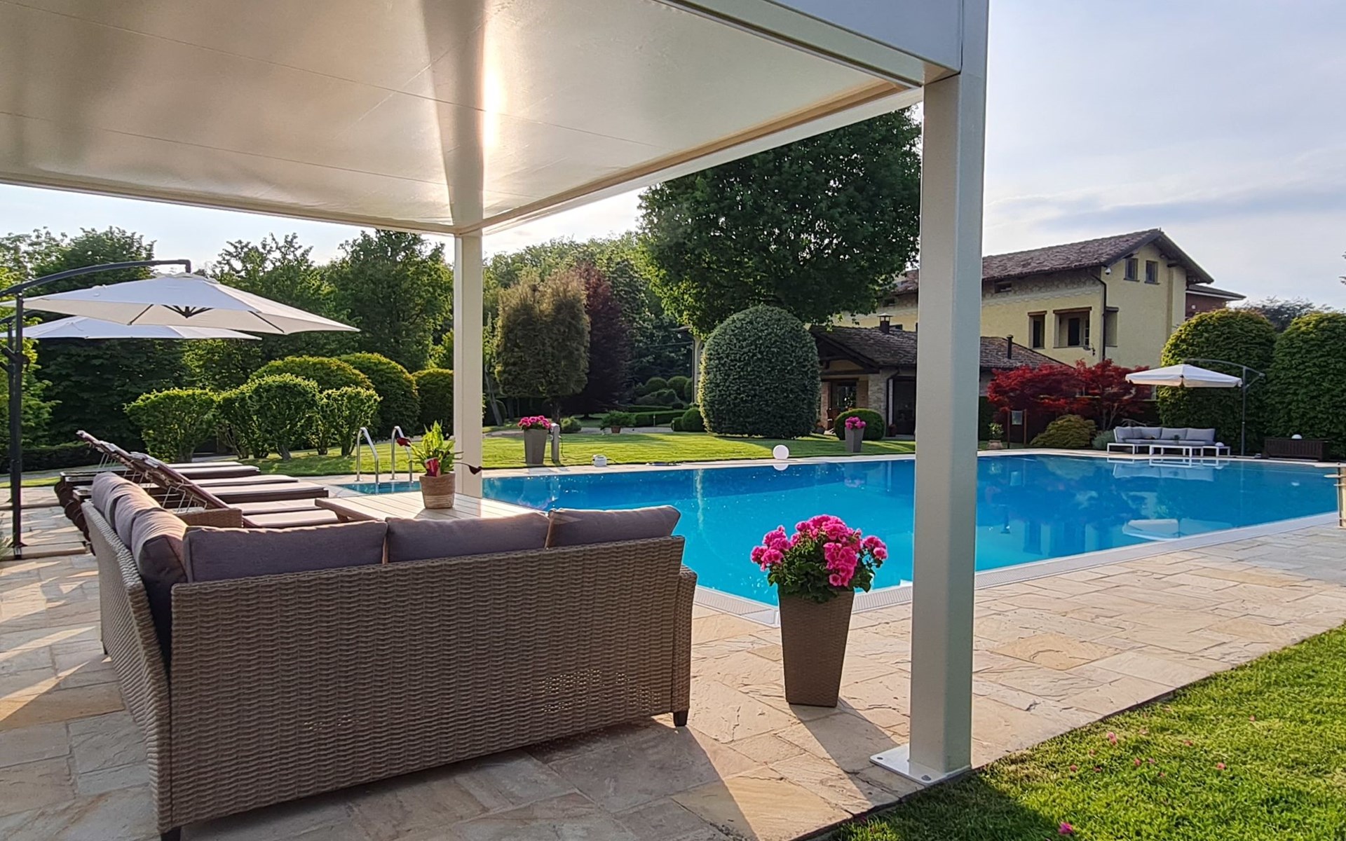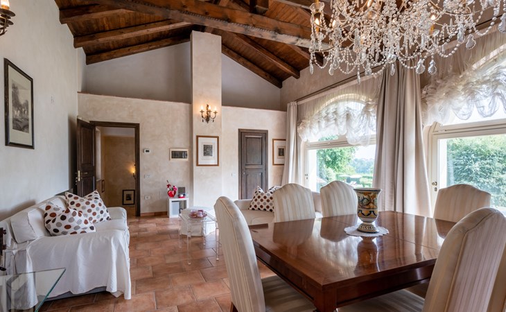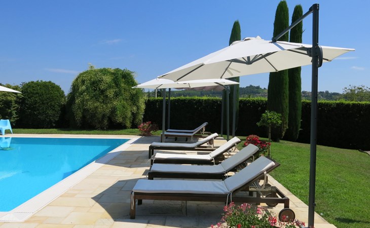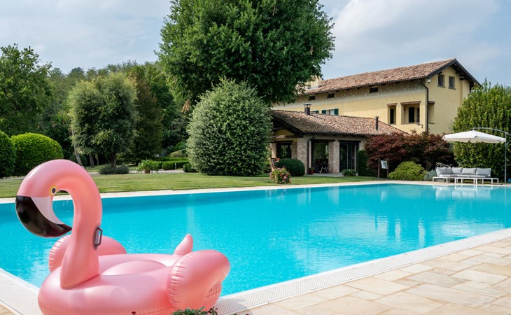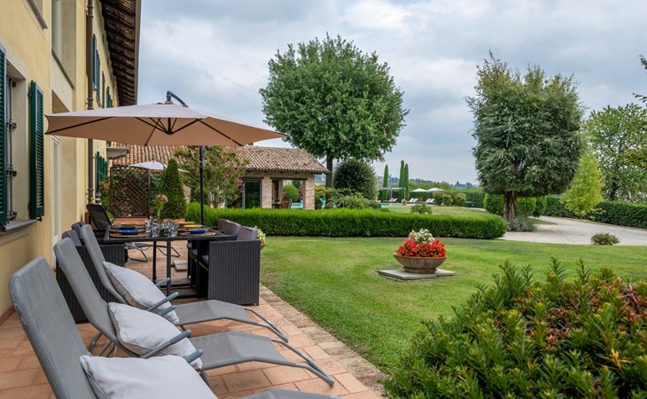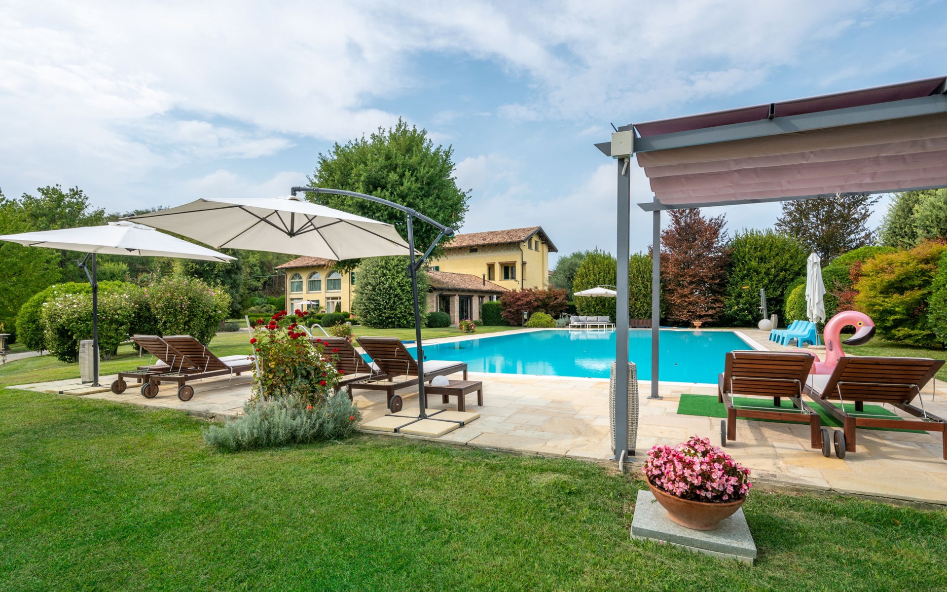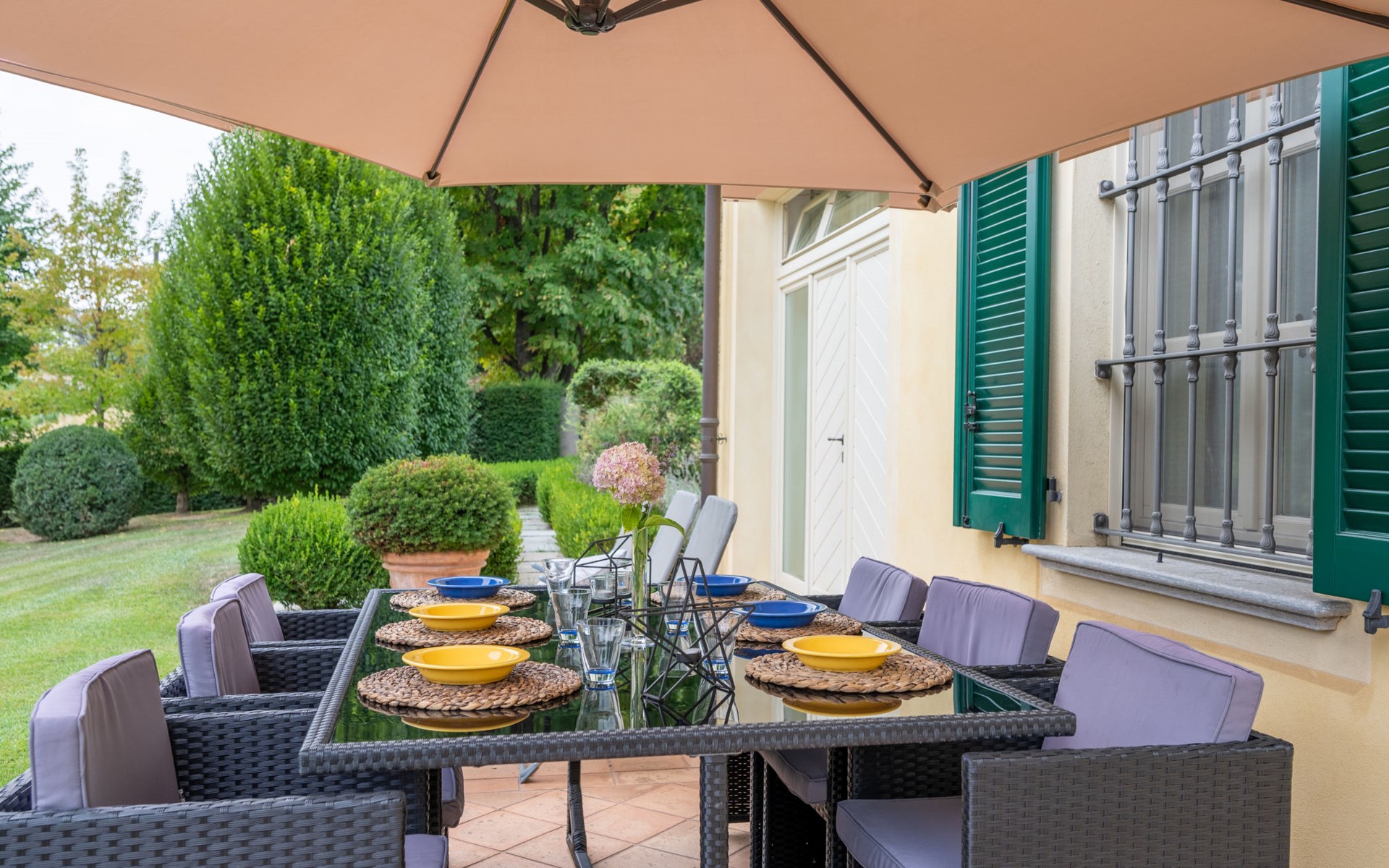 Sehr komfortables Landhaus "Villa Carlotta", auf 3 Stockwerken, einseitig angebaut. 1.4 km vom Zentrum von Costigliole d'Asti, am Ortsrand, 15 km vom Zentrum von Asti, 20 km vom Zentrum von Alba, alleinstehende, sonnige, erhöhte Lage. Zur Mitbenutzung: Grundstück 7'000 m2 (eingezäunt), gepflegter Garten mit Rasen und Bäumen. Zur Alleinbenutzung: Schwimmbad (18 x 9 m, 110 - 220 cm tief, saisonale Verfügbarkeit: 05.Apr. - 15.Okt.) mit Salzelektrolyse-Reinigungssystem. Aussendusche, Poolpflege durch den Besitzer/Gärtner. Im Hause: Fitnessraum. Parkplatz beim Haus auf dem Grundstück. Supermarkt 700 m, Bushaltestelle 3.5 km, Bahnstation "Asti" 15 km. Besitzer wohnt in separatem Hausteil.