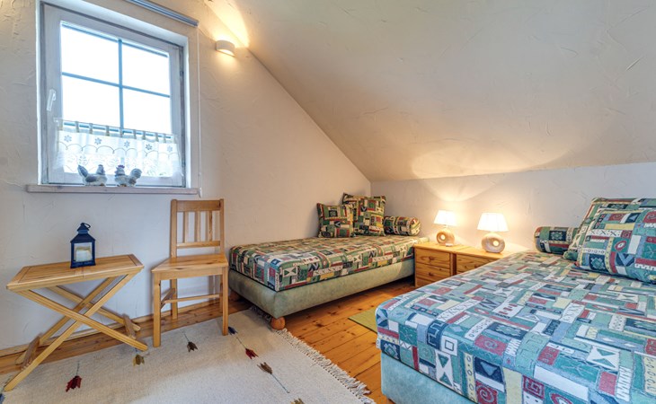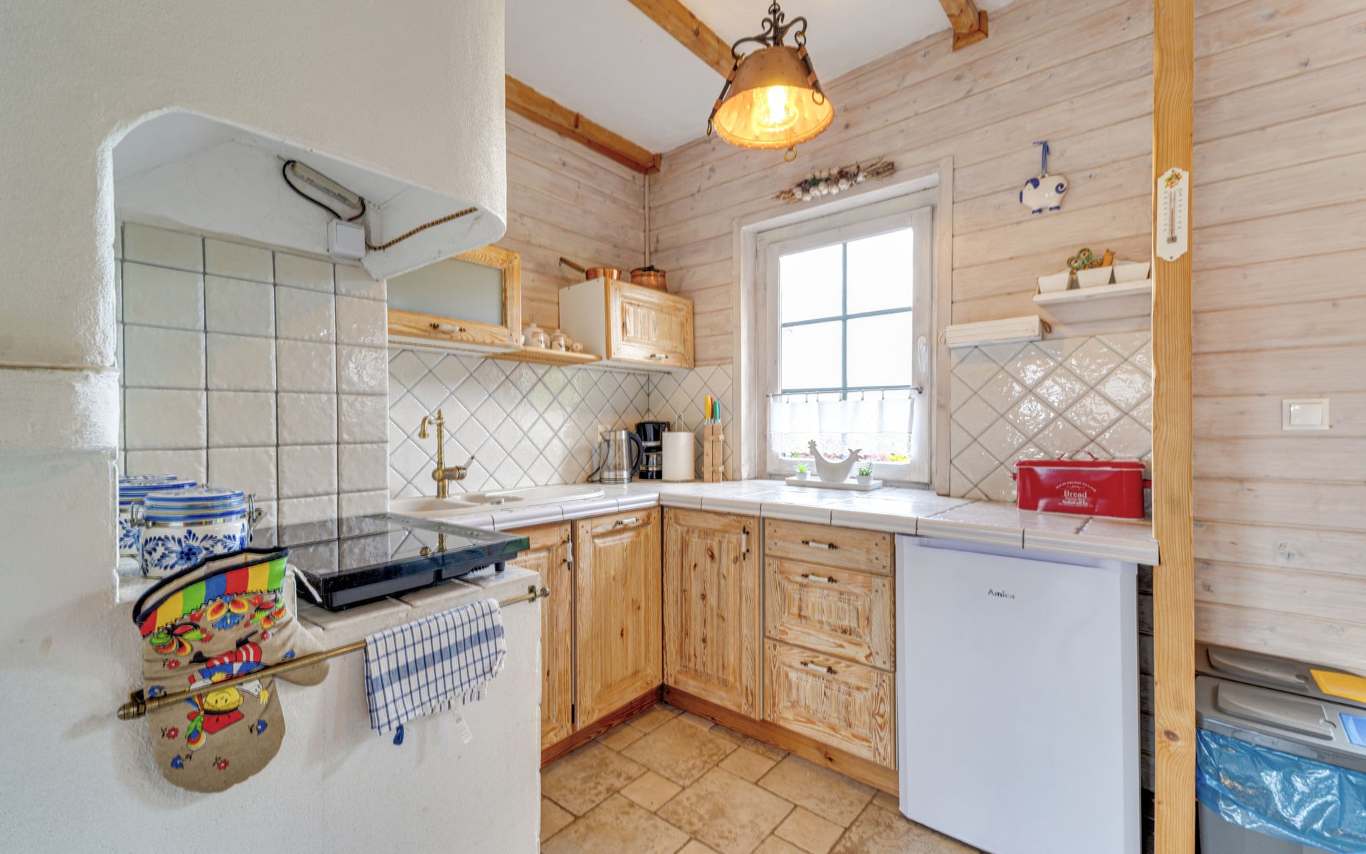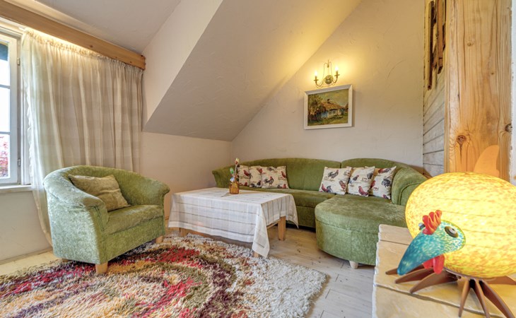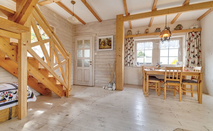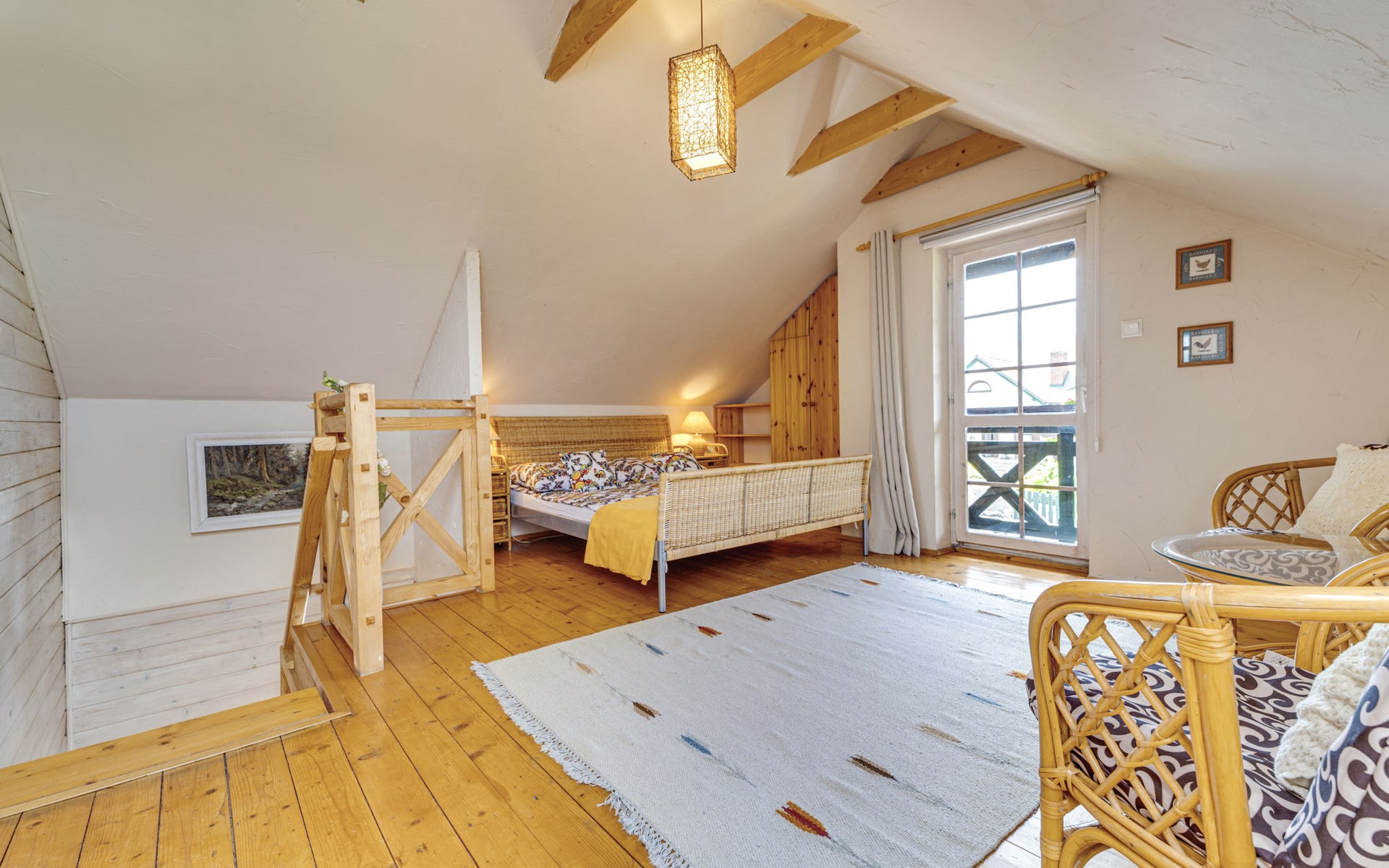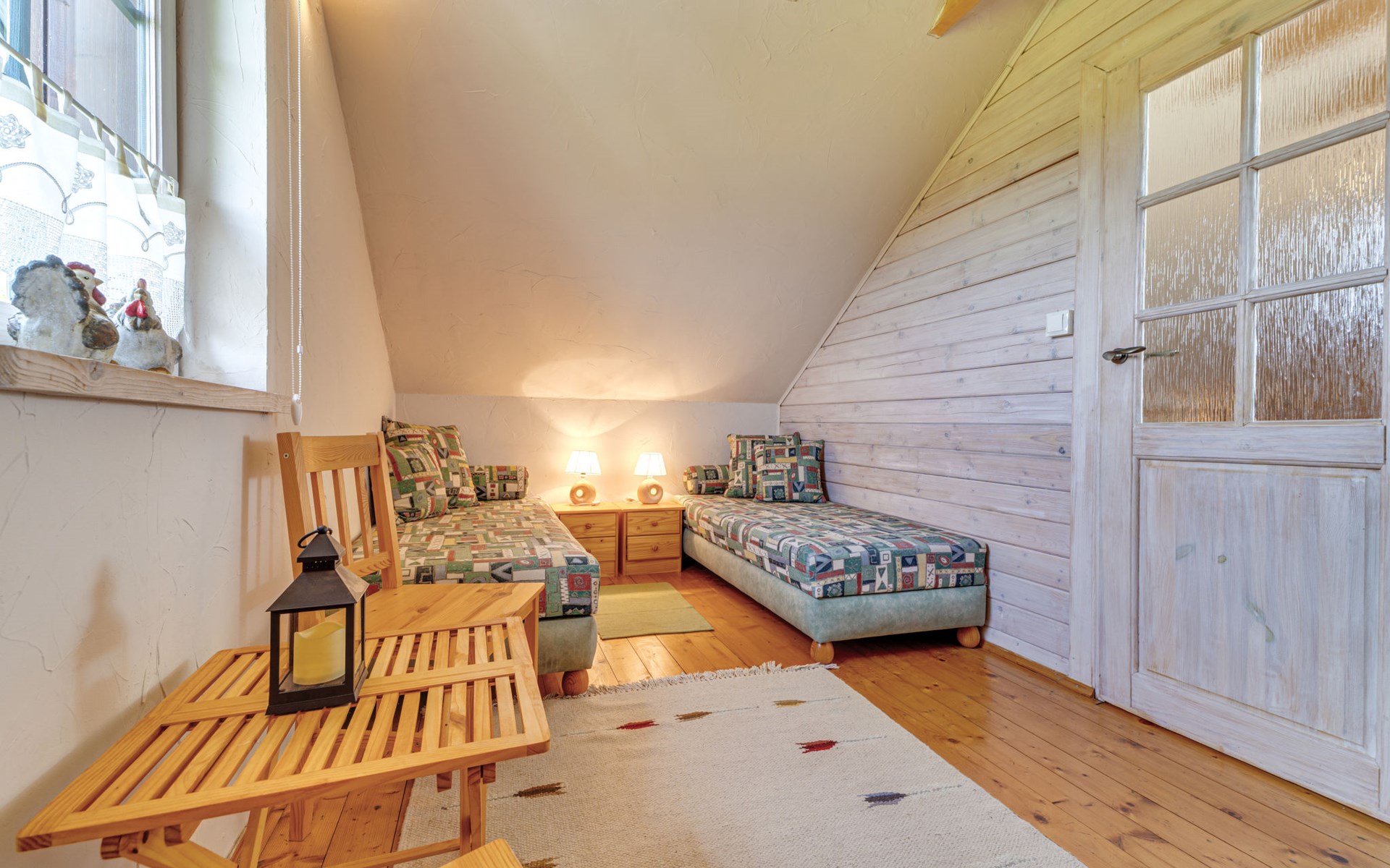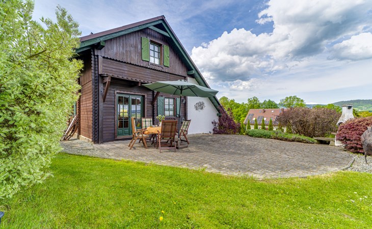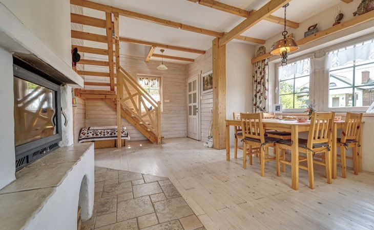 Einfamilienhaus "Kogucik". Am Ortsrand, ruhige, sonnige, erhöhte Lage, 4 km vom See, 1 km vom Fluss, an einer Strasse, im Grünen. Zur Alleinbenutzung: Grundstück 1'100 m2 (eingezäunt). Zufahrt bis zum Haus. Parkplatz beim Haus. Lebensmittelgeschäft 1 km, Supermarkt 5 km, Restaurant 2 km, Bushaltestelle 1 km, Hallenbad 4 km. Tennis 2 km. Bekannte Seen in der Umgebung sind gut erreichbar: Żywieckie 4 km. Bitte beachten: geeignet für Familien.
