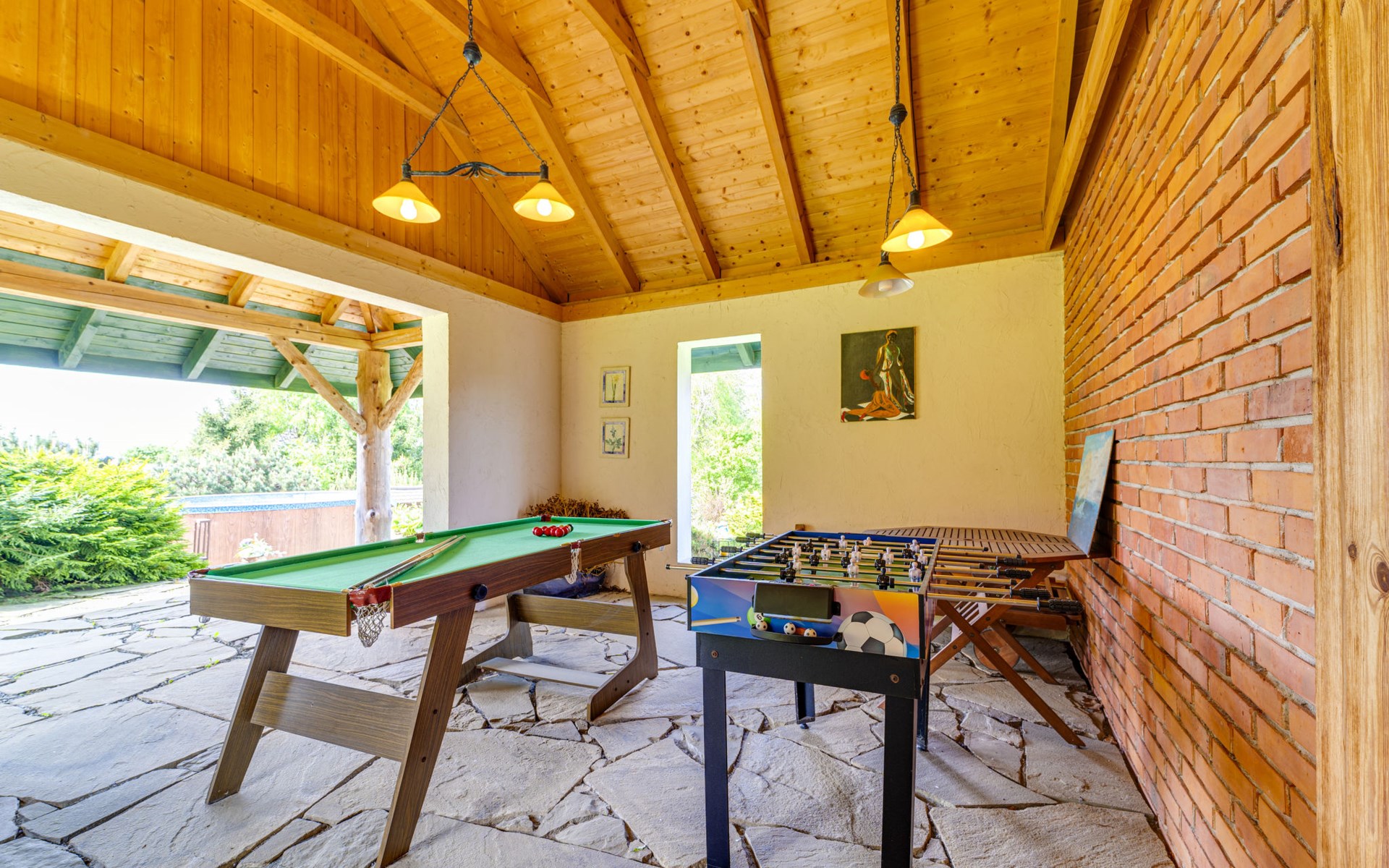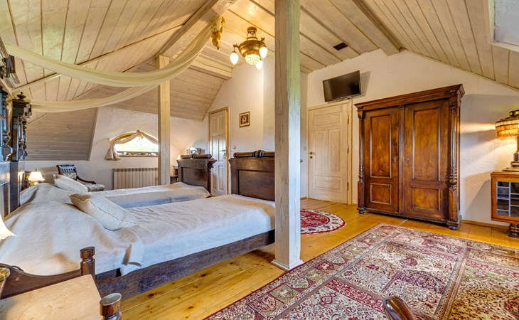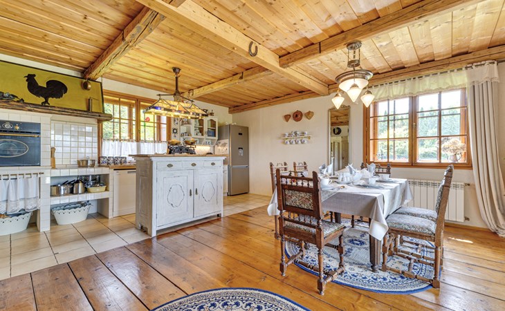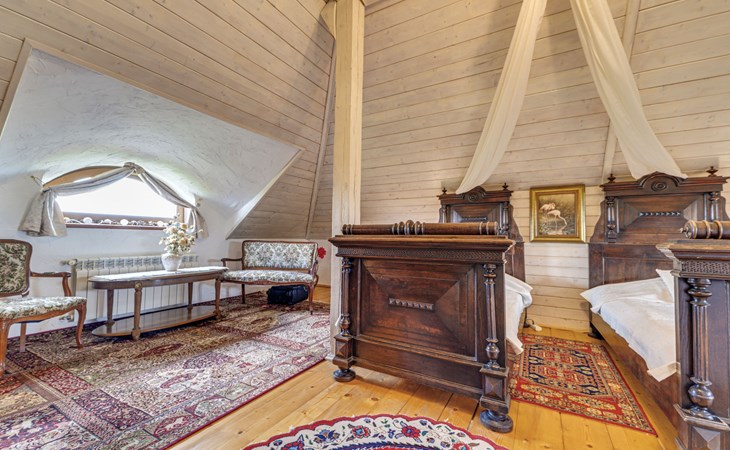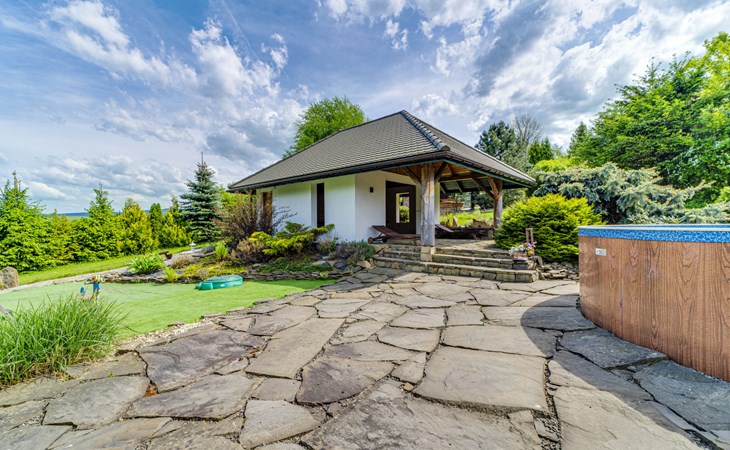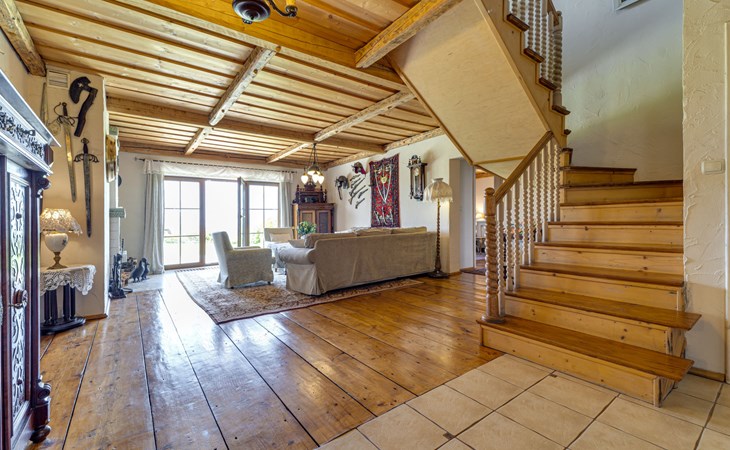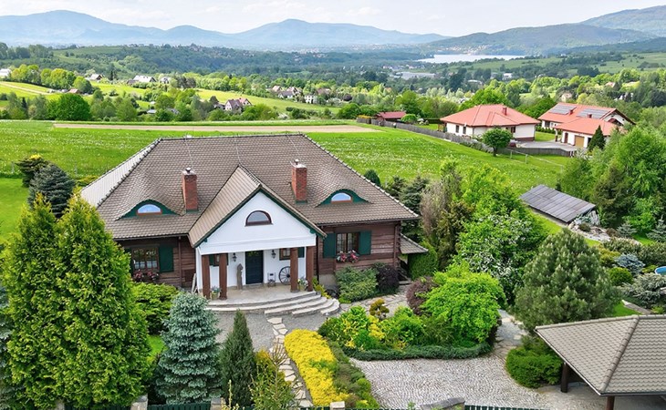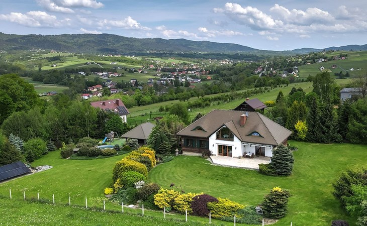 Herrenhaus mit eingebauten Holzelementen eines 105-jährigen Hauses auf einem 40 a grossen Grundstück gelegen. In Beskid Maly mit einem wunderschönen Ausblick auf die Bergen und den Zywiec-See. Rustikaler Landsitz "Dworek". Am Ortsrand, ruhige, sonnige Lage, 4 km vom See, 5 km vom Skigebiet, 1 km vom Fluss, an einer Strasse. Zur Alleinbenutzung: Grundstück 5'000 m2 (eingezäunt), Rasen, Naturgarten, Liegewiese, Schwimmbad rund, beheizt (110 cm tief, saisonale Verfügbarkeit: 01.Jun. - 30.Sep.). Gartenmöbel, Grill, Feuerstelle, Kinderspielplatz (Schaukel, Sandkasten). Im Hause: Sauna, Waschmaschine. Zufahrt bis zum Haus. Parkplatz beim Haus. Carport. Lebensmittelgeschäft 1 km, Einkaufszentrum 5 km, Restaurant 2 km, Bushaltestelle 1 km, Freibad 2 km. Tennis 2 km, Skisportanlagen 10 km, Skipisten 5 km. Bekannte Seen in der Umgebung sind gut erreichbar: Żywieckie 4 km. Bitte beachten: Fahrzeug empfohlen. Geeignet für Familien. In dem antiken Haus gibt es eine Sauna, Sprudelbad, Kabine mit Hydromasage. Die malerische Gegend lädt zum aktiven Urlaub ein, sowohl im Sommer als auch im Winter. Es besteht die Möglichkeit Wintersportgeräte und Fahrräder zu leihen. Es gibt auch die Möglichkeit ein grosses Grundstück als Sportplatz zu benutzen, dort kann abends gegrillt oder ein Lagerfeuer gemacht werden. Schwimmbad zur Mitbenutzung mit dem Haus Nr PL3430.101.1, nach dem Erlaubnis der Gaeste.
