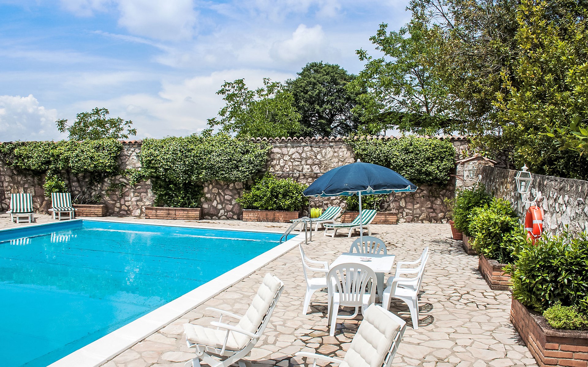 Rustikale, komfortable Villa "Olivo secolare", umgeben von Bäumen, Wiesen und Feldern. Im Ortsteil Castel Rinaldi, 3 km vom Zentrum von Massa Martana, ruhige, sonnige, erhöhte Lage am Hang. Zur Alleinbenutzung: Park 2 ha (eingezäunt), Garten mit Pflanzen und Bäumen, Schwimmbad (7 x 14 m, 100 - 250 cm tief, saisonale Verfügbarkeit: 01.Jun. - 30.Sep.) mit Salzelektrolyse-Reinigungssystem. Grillhaus. Im Hause: Internetzugang. Wäschewechsel 1 mal wöchentlich (zusätzlich extra). Handtuchwechsel 1 mal wöchentlich (zusätzlich extra). Einkaufsgeschäft 3 km, Lebensmittelgeschäft 3 km, Supermarkt 3 km, Restaurant 3 km, Bar 3 km, Bäckerei 3 km, Bushaltestelle "to Rome" 5 km, Bahnstation "Massa Martana Scalo" 5 km. Bekannte Seen in der Umgebung sind gut erreichbar: Corbara 30 km.