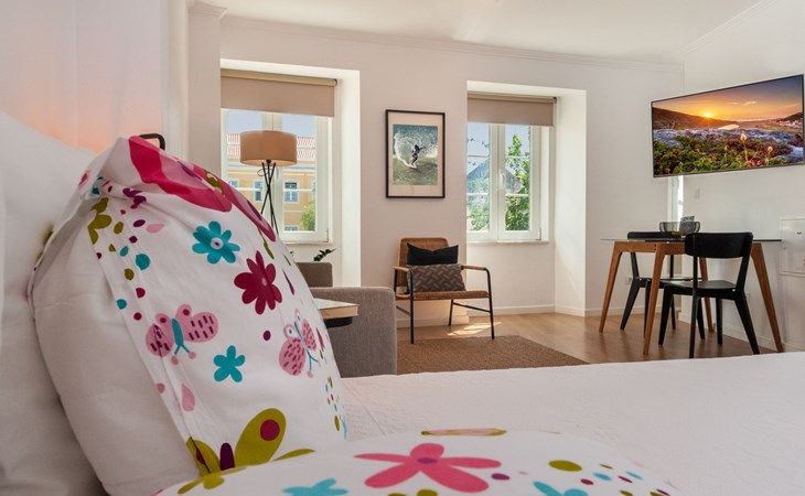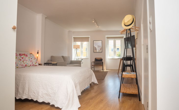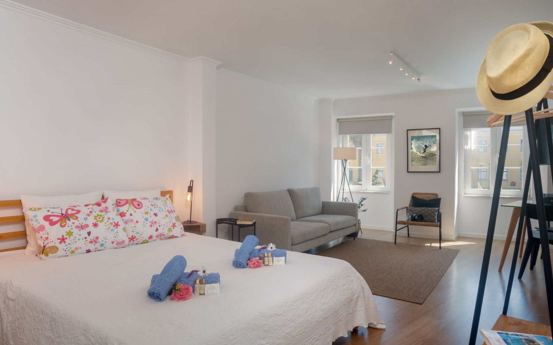 Belém: Gemütliches Appartementhaus "Studio Alma Belém". Im Ort, sonnige Lage, 6 km vom Meer, 6 km vom Strand, 1 km vom Fluss. Öffentliches Parkhaus, öffentliche Parkplätze auf der Strasse. Einkaufsgeschäft 50 m, Lebensmittelgeschäft, Restaurant, Bar, Café, Bushaltestelle 100 m, Sandstrand "Praia da Giribita" 6 km. Luftseilbahn 17 km. Nahe gelegene Sehenswürdigkeiten: Mosteiro Jeronimos 1 km, Torre Belém 2 km, Palacio de Belem / Palacio presidencial 800 m, Lisbon City 6 km, Parque das Nações 15 km, Bairro Alto 5 km. Bitte beachten: kein Fahrstuhl vorhanden. Babyausstattung auf Anfrage (extra).
