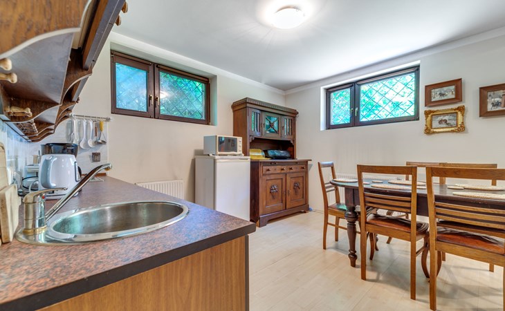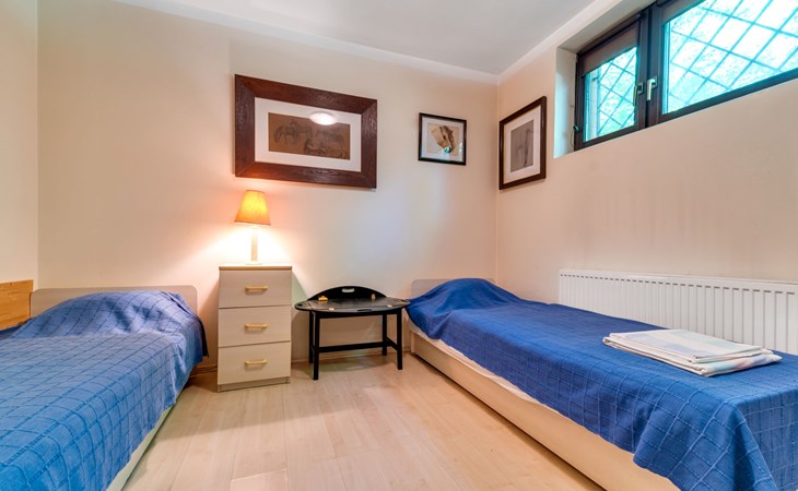 Zweifamilienhaus "Marcyporęba", umgeben von Bäumen. Am Ortsrand, 2 km vom Zentrum, ruhige Lage, direkt am Waldrand, im Grünen. Zur Mitbenutzung: Grundstück 3'600 m2, Garten 2'000 m2 Pflanzen und Bäumen. Gartenmöbel, Grill. Im Hause: Zentralheizung, Waschmaschine. Zufahrt bis zum Haus. Im Winter bitte Schneeketten mitbringen. Parkplatz (für 4 Autos) beim Haus auf dem Grundstück. Einkaufsgeschäft 5 km, Lebensmittelgeschäft 2 km, Restaurant 5 km, Bushaltestelle 2 km, Bahnstation "Brzeźnica" 5 km. Nahe gelegene Sehenswürdigkeiten: Kraków 37 km, Wieliczka 39 km, Wadowice 15 km, Kalwaria Zebrzydowska 12 km, Oświęcim 25 km. Bekannte Skigebiete sind gut erreichbar: Międzybrodzie Beskidzkie 40 km, Korbielów 60 km, Szczyrk 60 km. Bekannte Seen in der Umgebung sind gut erreichbar: Jezioro Żywieckie 50 km. Bitte beachten: Der Besitzer wohnt im selben Haus.
