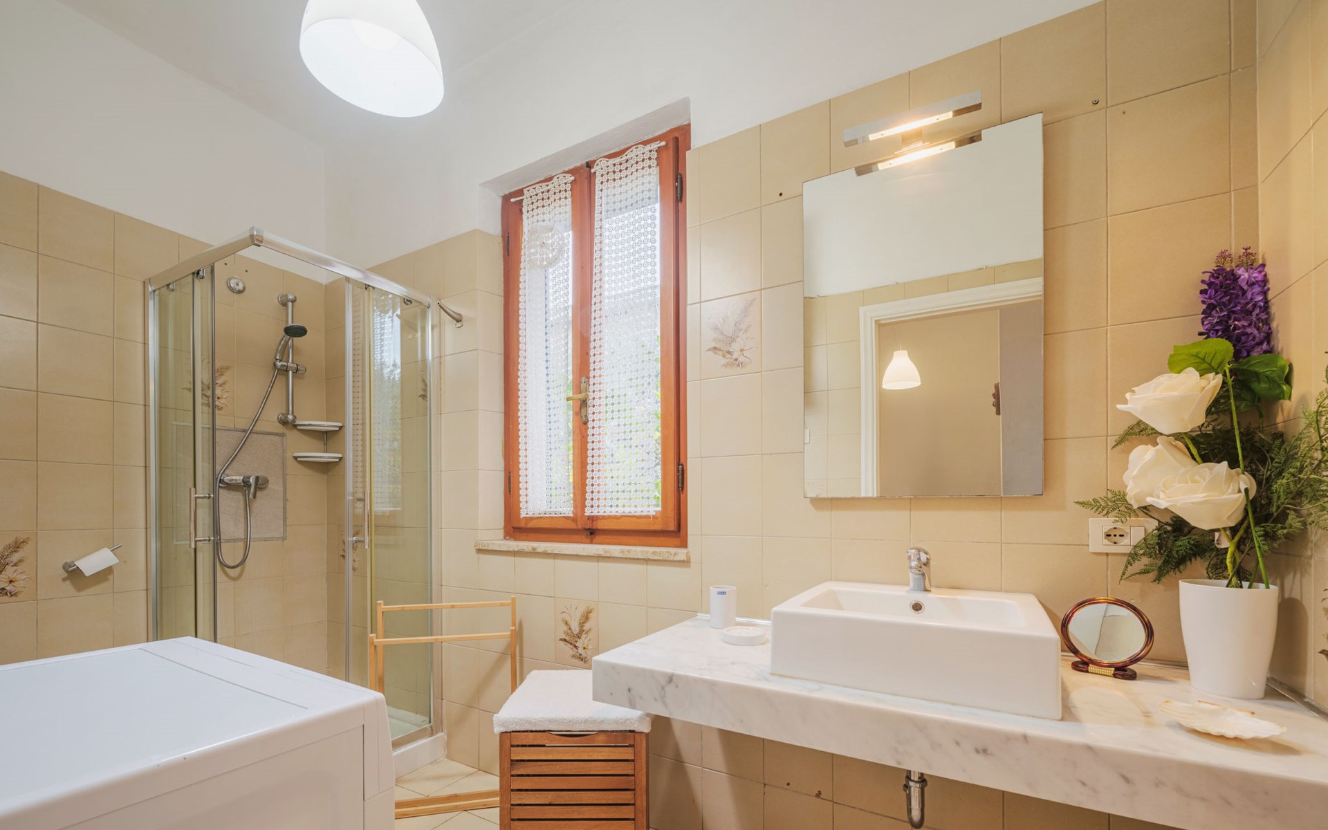Dreifamilienhaus "Ilaria". 1 km vom Zentrum von Marina di Massa, 3.7 km vom Zentrum von Massa, 7 km vom Zentrum von Forte dei Marmi, in einem Wohnquartier, 400 m vom Meer, 400 m vom Strand. Zur Mitbenutzung: Grundstück 1'000 m2 (eingezäunt), Garten mit Bäumen, Wiese. Im Hause: Zentralheizung, Heizung vor Ort zu zahlen (28.Mar. - 30.Okt.). Parkplatz auf dem Grundstück. Lebensmittelgeschäft 300 m, Bushaltestelle 250 m, Bahnstation "Massa" 3.8 km, Sandstrand 400 m. Nahe gelegene Sehenswürdigkeiten: Pietrasanta 14 km, Viareggio 33 km, Carrara Fantiscritti (cave di marmo) 16 km, Lucca 50 km, Pisa 50 km, Riomaggiore (5 Terre) 52 km. Bekannte Seen in der Umgebung sind gut erreichbar: Lago di Massaciuccoli 44 km, Torre del Lago 37 km. Bitte beachten: Fahrzeug empfohlen. Der Besitzer wohnt im selben Haus.