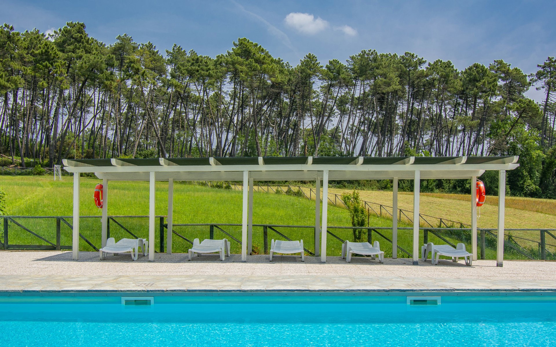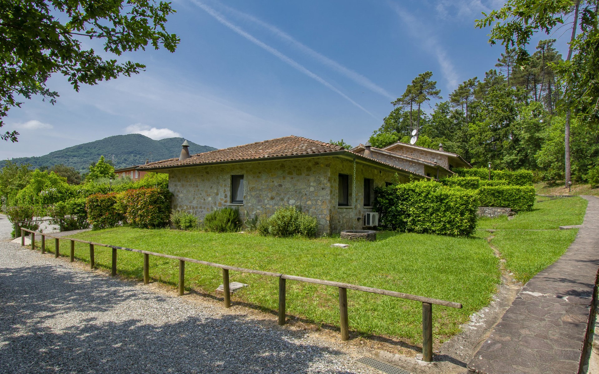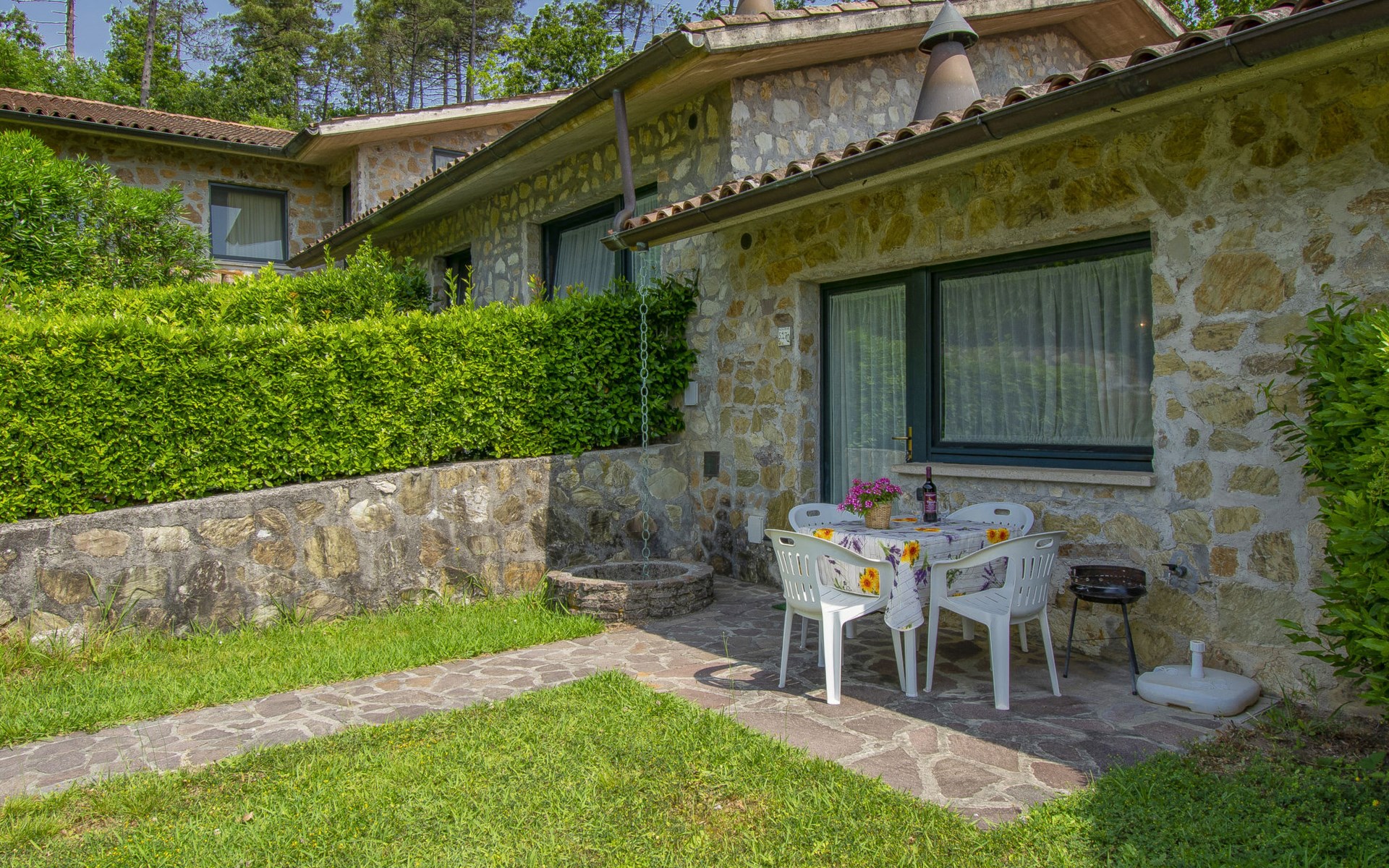 Farneta 8 km von Lucca: Kinderfreundliche, gemütliche Residenz "I Pini", umgeben von Bäumen und Wiesen. 23 Wohnungen in der Residenz. 1.5 km vom Zentrum von Farneta, am Ortsrand, 8 km vom Zentrum von Lucca, 22 km vom Zentrum von Pisa, 26 km vom Meer, im Grünen. Zur Mitbenutzung: Grundstück 20'000 m2, terrassierter Garten mit Pflanzen und Bäumen, Wiese, Schwimmbad eingezäunt (14 x 6 m, saisonale Verfügbarkeit: 15.Mai. - 30.Sep.). Aussendusche, Tischtennis, Laube, Kinderspielplatz. Zur Alleinbenutzung: Garten (nicht eingezäunt). In der Anlage: Empfang, Tischtennis, Tischfussball, Alarmanlage, Waschmaschine (zur Mitbenutzung, extra). Parkplatz auf dem Grundstück. Supermarkt 5 km, Bushaltestelle 350 m, Bahnstation "Lucca" 8.5 km, Sandstrand "Lido di Camaiore" 26 km. Golfplatz (18 Loch) 25 km. Nahe gelegene Sehenswürdigkeiten: Forte dei Marmi 42 km, Firenze 100 km. Bitte beachten: In dieser Anlage zusätzlich mietbar: 22 Häuser.
