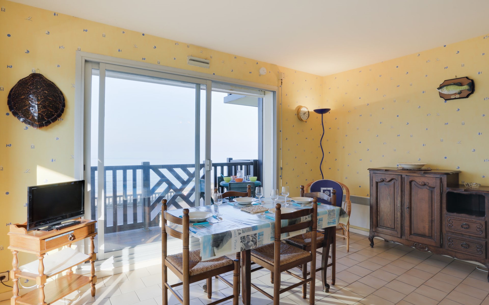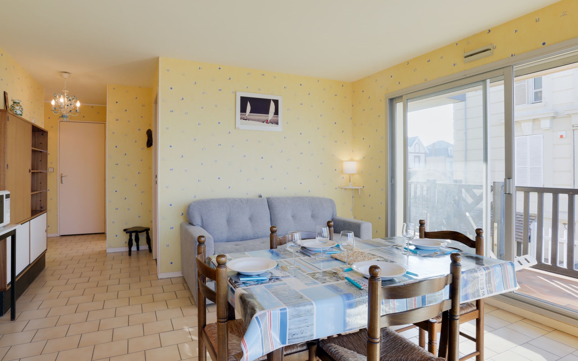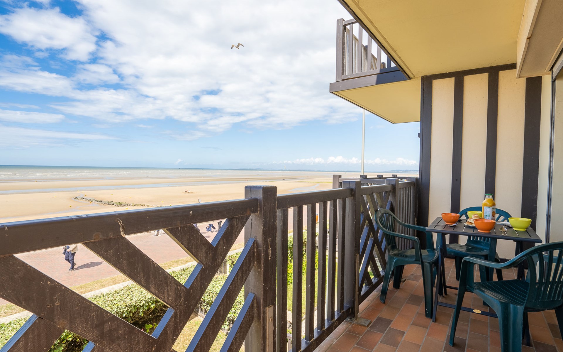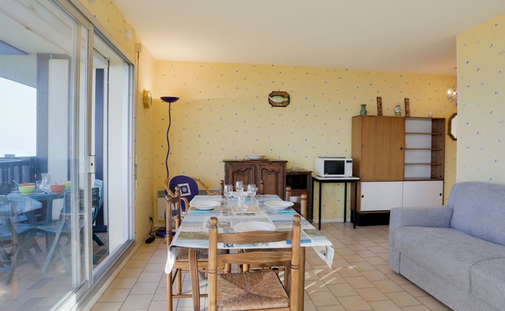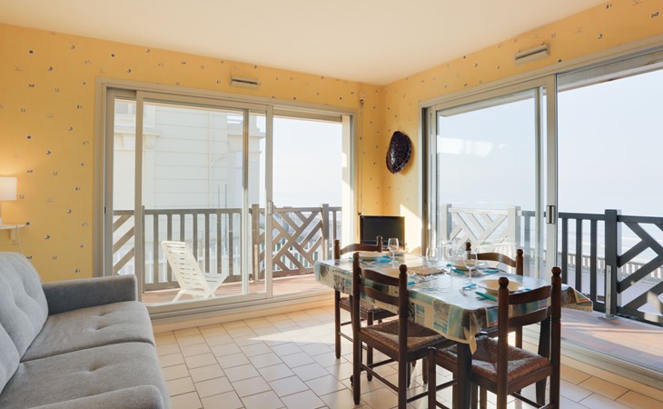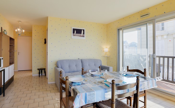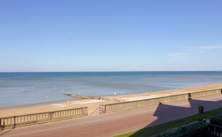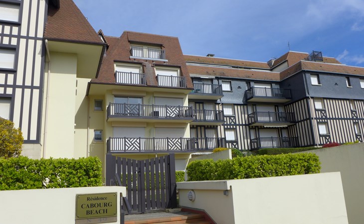 Residenz "Cabourg Beach", auf 4 Stockwerken. Im Ort, 600 m vom Zentrum von Cabourg, 300 m vom Zentrum von port de plaisance, 50 m vom Meer, vom Strand. In der Anlage: Fahrstuhl. Öffentliche Parkplätze auf der Strasse. Einkaufsgeschäft, Restaurant 600 m, Bushaltestelle "Hôtel de Ville" 1.4 km, Sandstrand 50 m, Thermalbad "Thalazur" 2.5 km. Golfplatz (9 Loch) 2 km. Zur Information: Die Residenz ist über einige Stufen erreichbar.