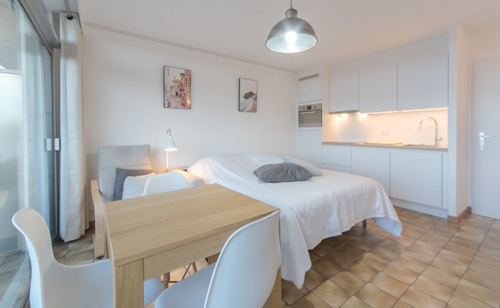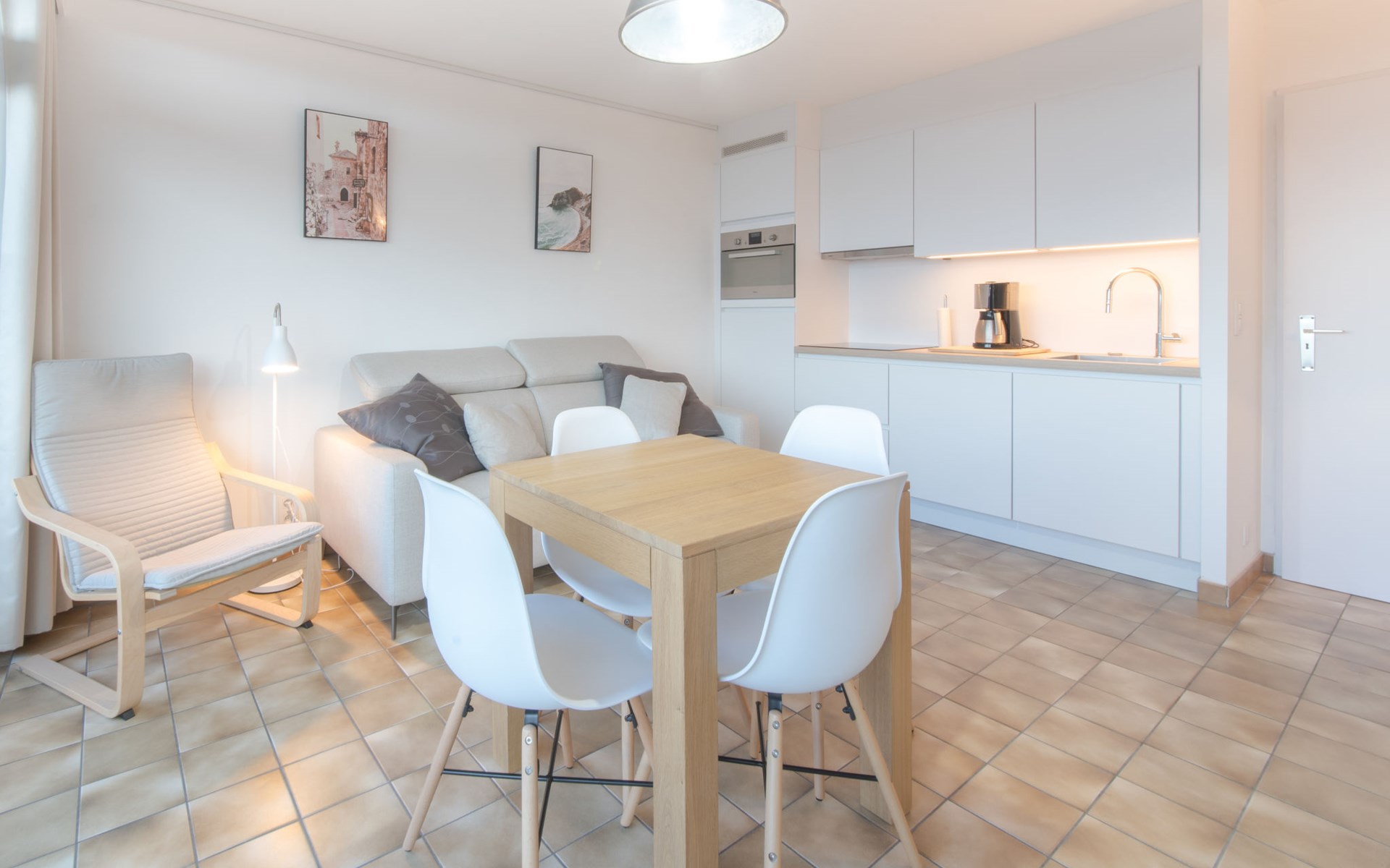 Einfaches Mehrfamilienhaus "Residentie Astrid", auf 9 Stockwerken. Im Ortszentrum von Bredene, 300 m vom Meer, 300 m vom Strand. Im Hause: Fahrstuhl, Einstellraum für Fahrräder. Öffentliche Parkplätze auf der Strasse extra. Einkaufsgeschäft 100 m, Supermarkt 400 m, Restaurant 100 m, Straßenbahn 200 m, Bahnstation "Oostende" 4 km, Sandstrand 300 m. Nahe gelegene Sehenswürdigkeiten: Markt (Dienstagmorgen) 50 m, Boudewijnpark 25 km, Plopsaland De Panne 47 km. Gruppen von jungen Leuten nicht erlaubt.