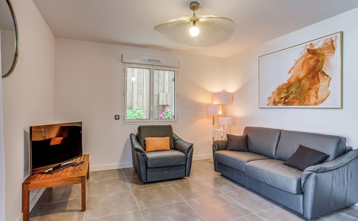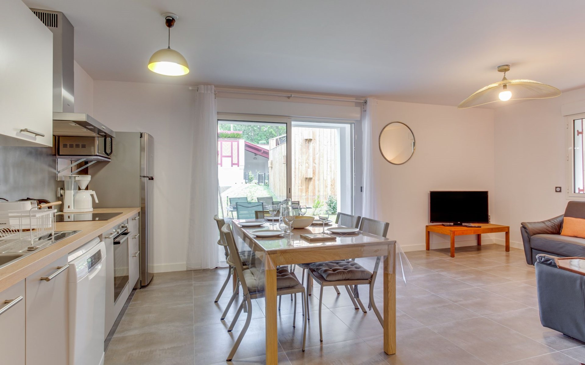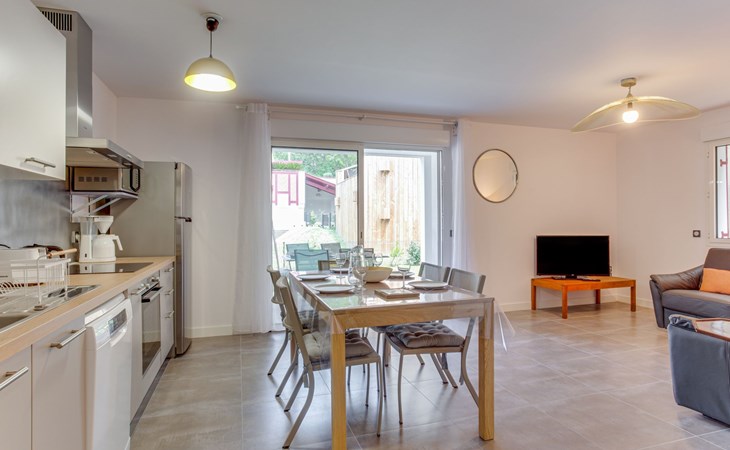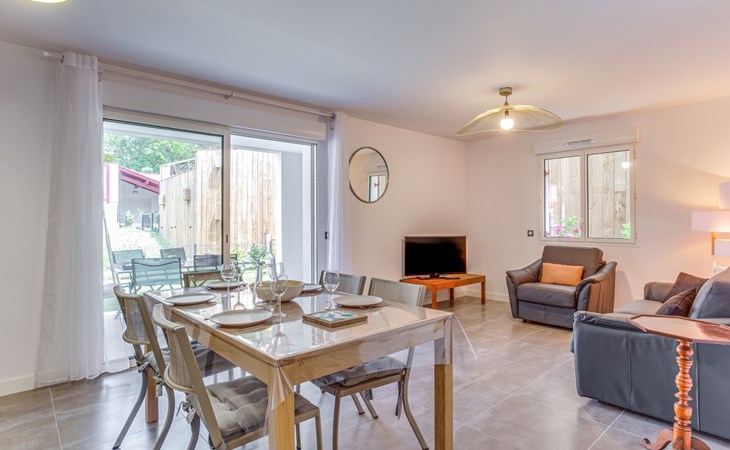 Residenz "Domaine Aïga", auf 2 Stockwerken, Baujahr 2020, umgeben von Bäumen. 2 km vom Zentrum von Hossegor, ruhige Lage in einem Wohnquartier, 1.5 km vom Meer, 50 m vom See, 1.5 km vom Strand. Einkaufsgeschäft 2 km, Lebensmittelgeschäft 2 km, Supermarkt 2 km, Restaurant 1 km, Sandstrand "Les Estagnots" 1.5 km. Golfplatz (18 Loch) 4 km. Bekannte Seen in der Umgebung sind gut erreichbar: lac d'Hossegor 50 m. Jugendgruppen nur auf Anfrage.