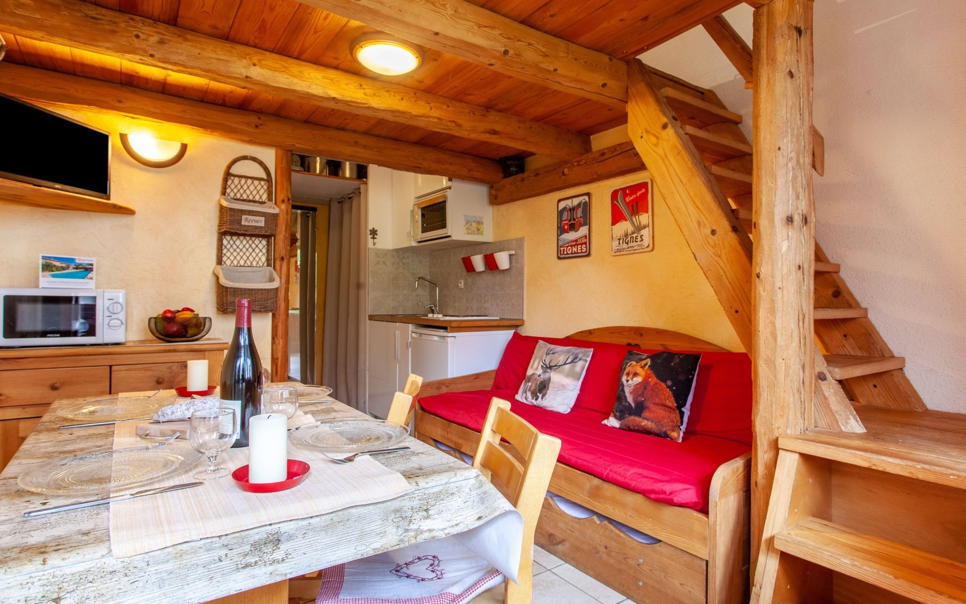 Tignes Val Claret: Residenz "Rond Point des Pistes (Val Claret)", auf 4 Stockwerken. 50 m vom Skigebiet. In der Anlage: Fahrstuhl, Skiraum, Zentralheizung. Einkaufsgeschäft 50 m, Lebensmittelgeschäft 100 m, Restaurant, Bushaltestelle 50 m, Hallenbad 2 km. Sportzentrum 800 m, Bergeisenbahn 50 m, Skisportanlagen, Skipisten 50 m, Skiverleih 20 m, Skibushaltestelle 50 m, Skischule. Nahe gelegene Sehenswürdigkeiten: LAGON CENTRE AQUATIQUE 2 km, TIGNES ESPACE CENTRE SPORTIF 2 km. Bekannte Skigebiete sind gut erreichbar: TIGNES VAL D'ISERE 50 m. Wandergebiete: PARC DE LA VANOISE 200 m. Bitte beachten: Gratis Skibus.