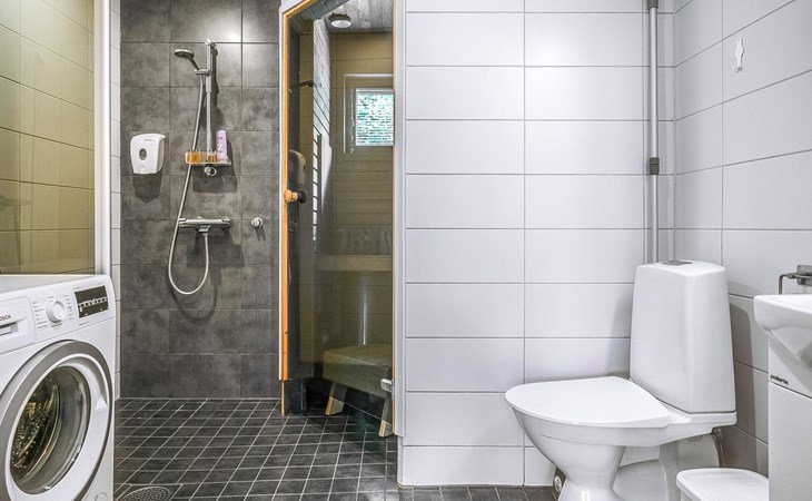 In addition, downstairs there is one bedroom with 2 beds. An electric sauna and a bathroom with a WC.