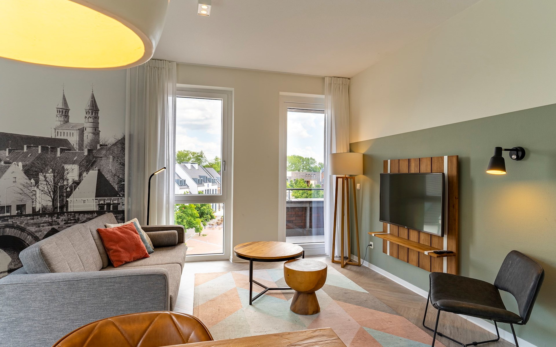Diese weiträumige Ferienwohnung für 4 Personen ist 80 m² groß. Die Wohnung befindet sich auf dem Wilhelmus, einem belebten Platz, an dem sich die umfangreichen Einrichtungen des Dormio Resort Maastricht befinden. Als Gast des Dormio Hotel De Prins van Oranje können Sie diese natürlich auch in Anspruch nehmen. Hier finden Sie unter anderem die Rezeption, ein Schwimmbad, gastronomische Einrichtungen und ein Spa-Wellness-Center. Auf dem Platz vor dem Hotel können Sie auch Fahrräder für eine entspannende Radtour durch die schöne Umgebung mieten.