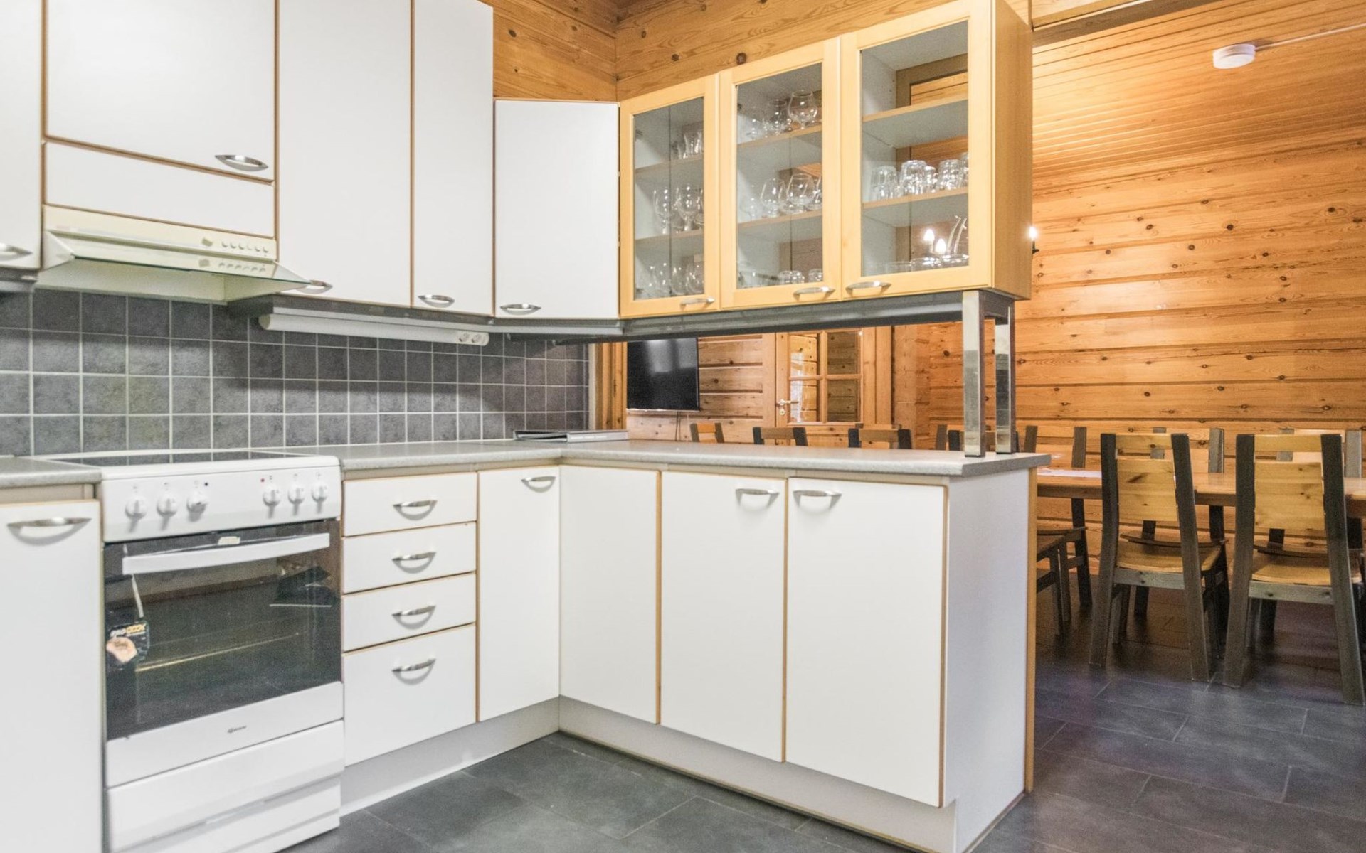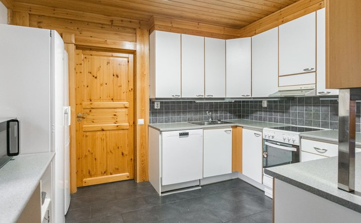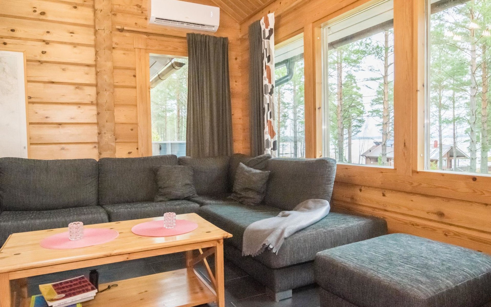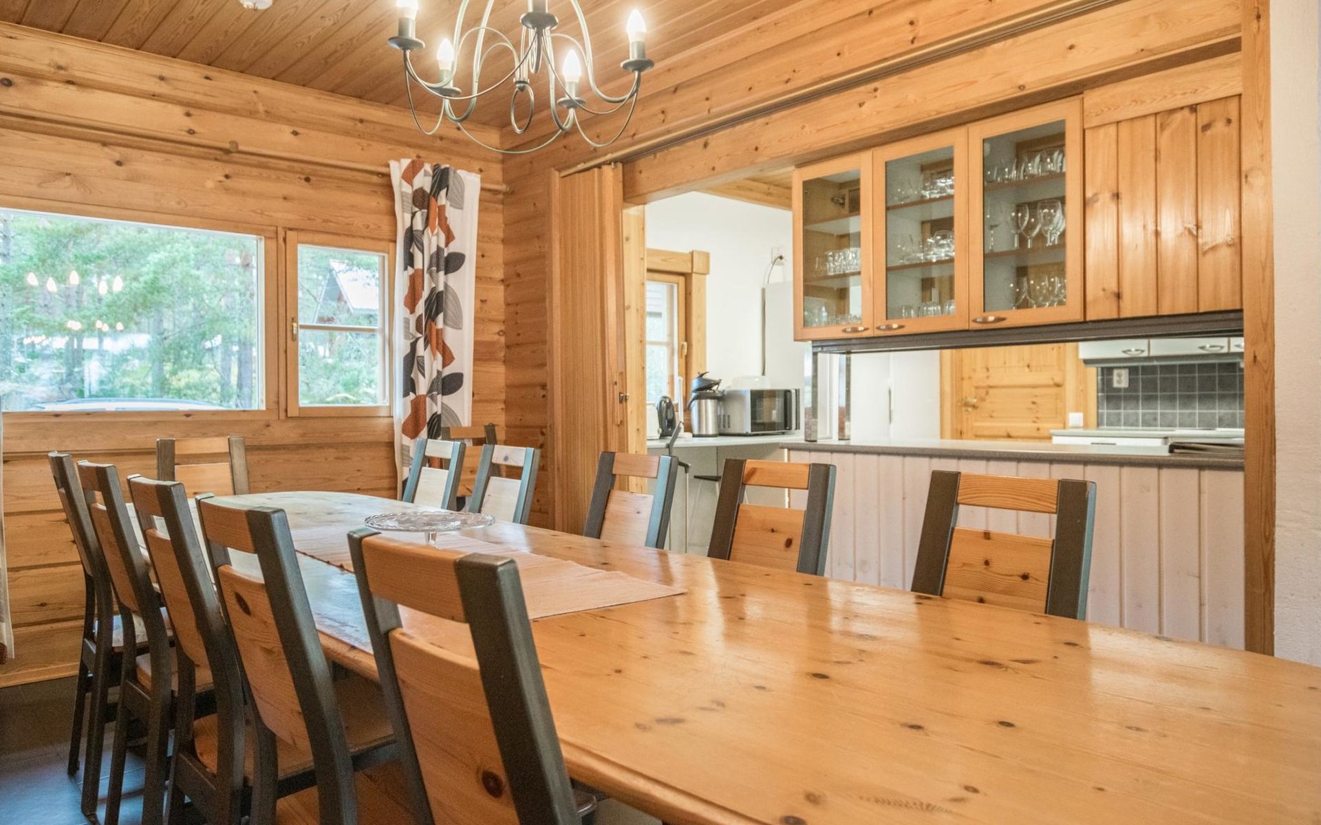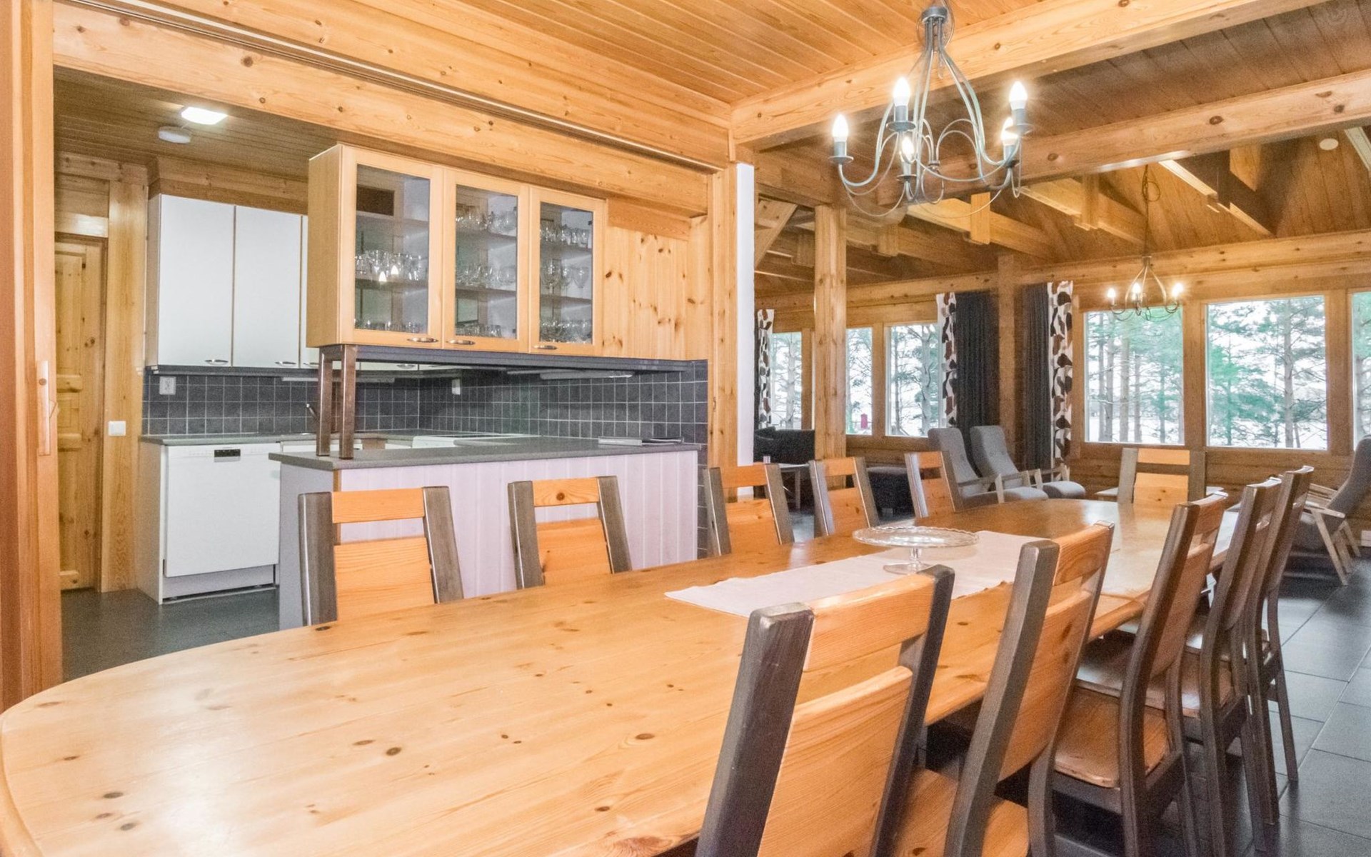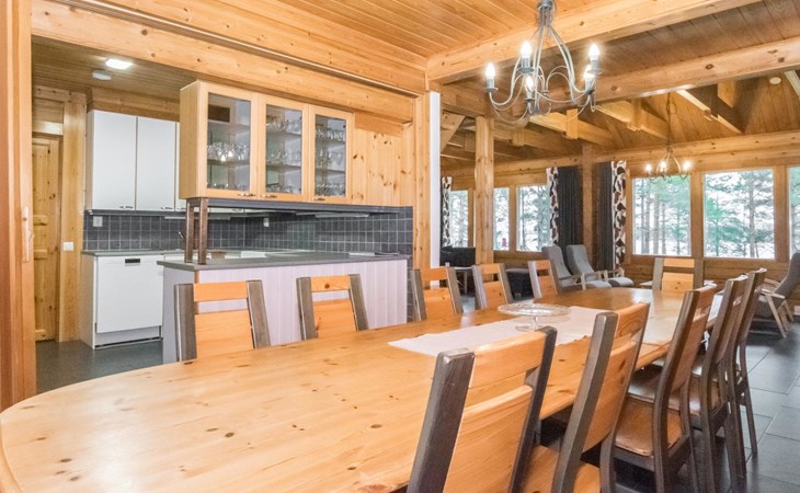 A cozy cabin (195 m²) by the sea. The cabin features a spacious living room, a large dining area accommodating 14 people, and a well-equipped kitchen. The fireplace room boasts a warm ambiance with a heat-retaining fireplace.