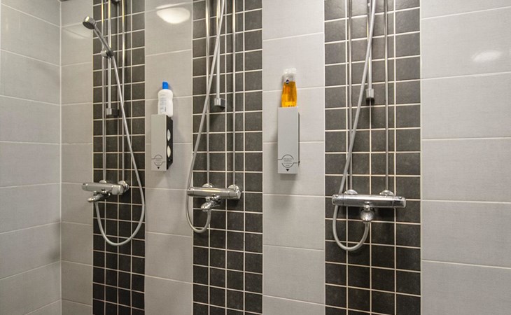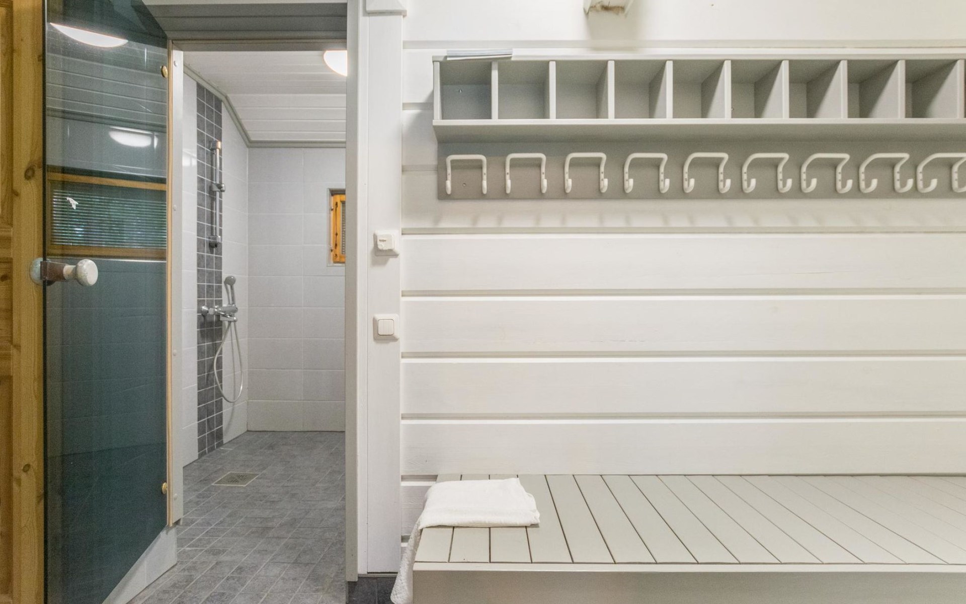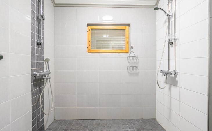 The bathroom includes 3 showers. A spacious sauna features an electric sauna stove.